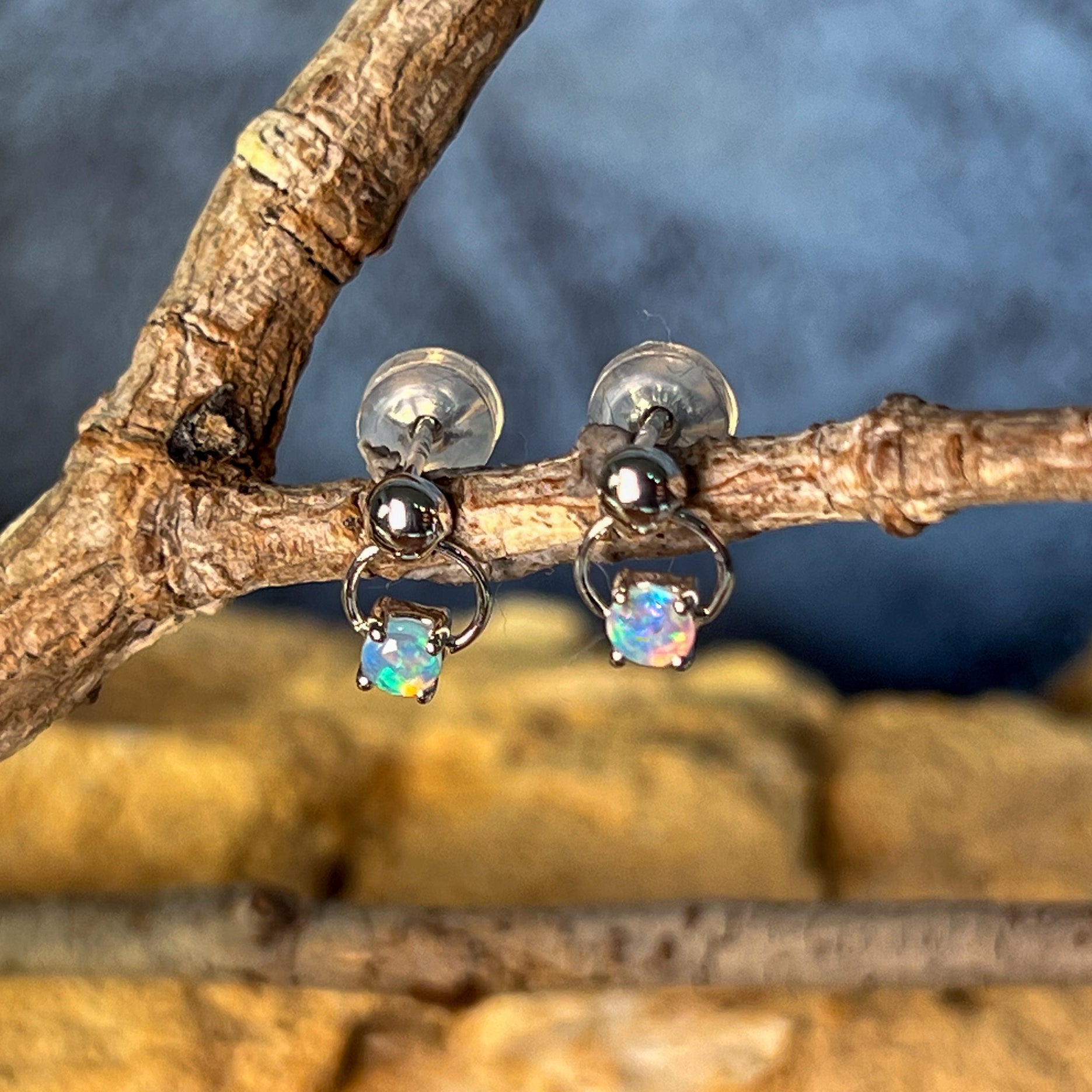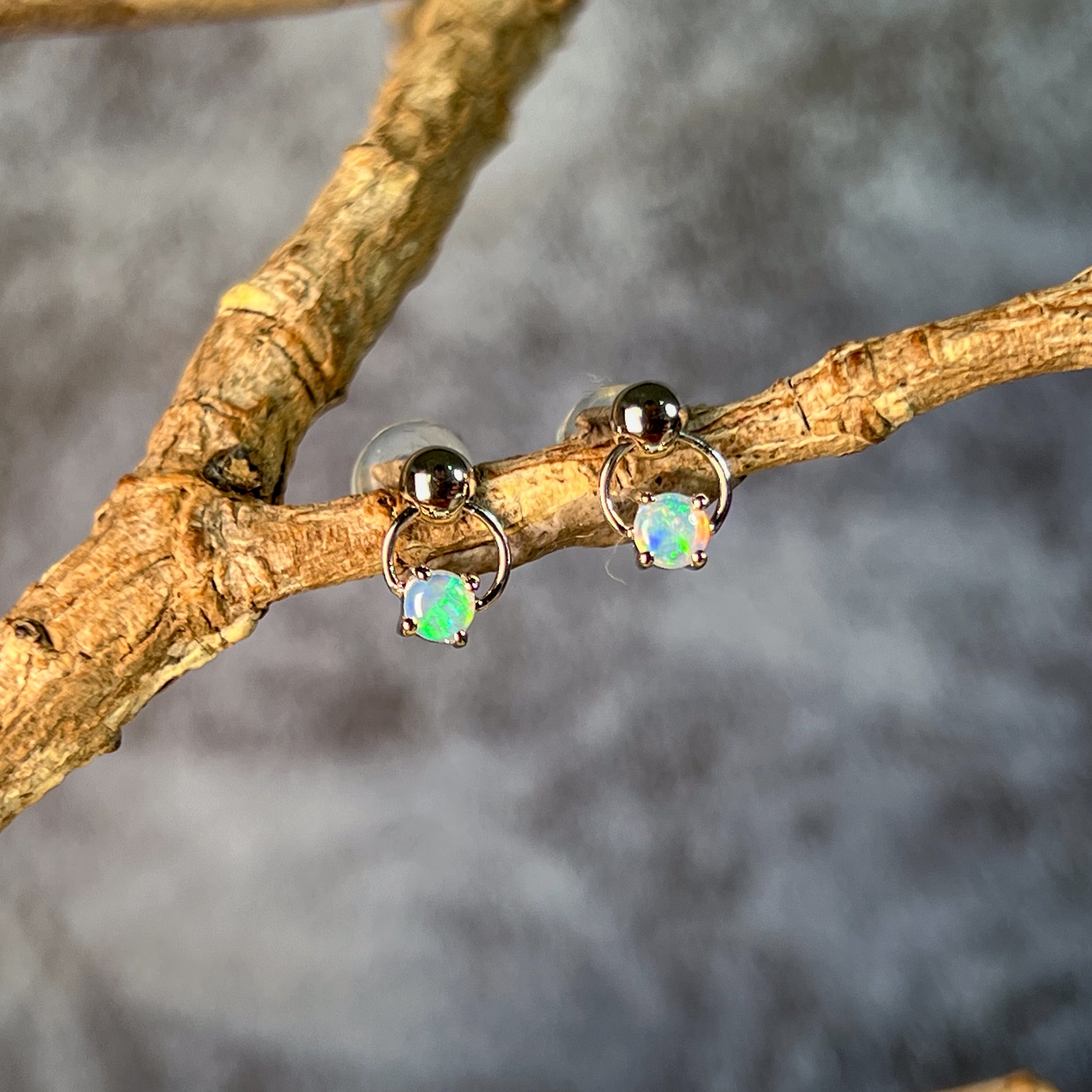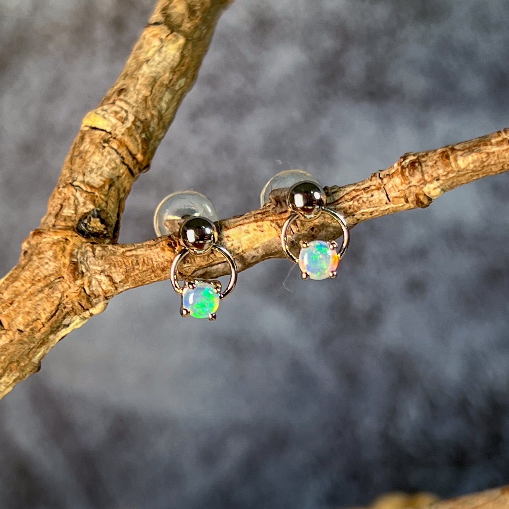 Add a touch of elegance to your outfit with our 14kt White Gold Crystal Opal studs. These dainty earrings are set with 0.15ct of shimmering opal, adding a subtle yet stunning sparkle. Elevate your jewellery collection with this timeless piece.