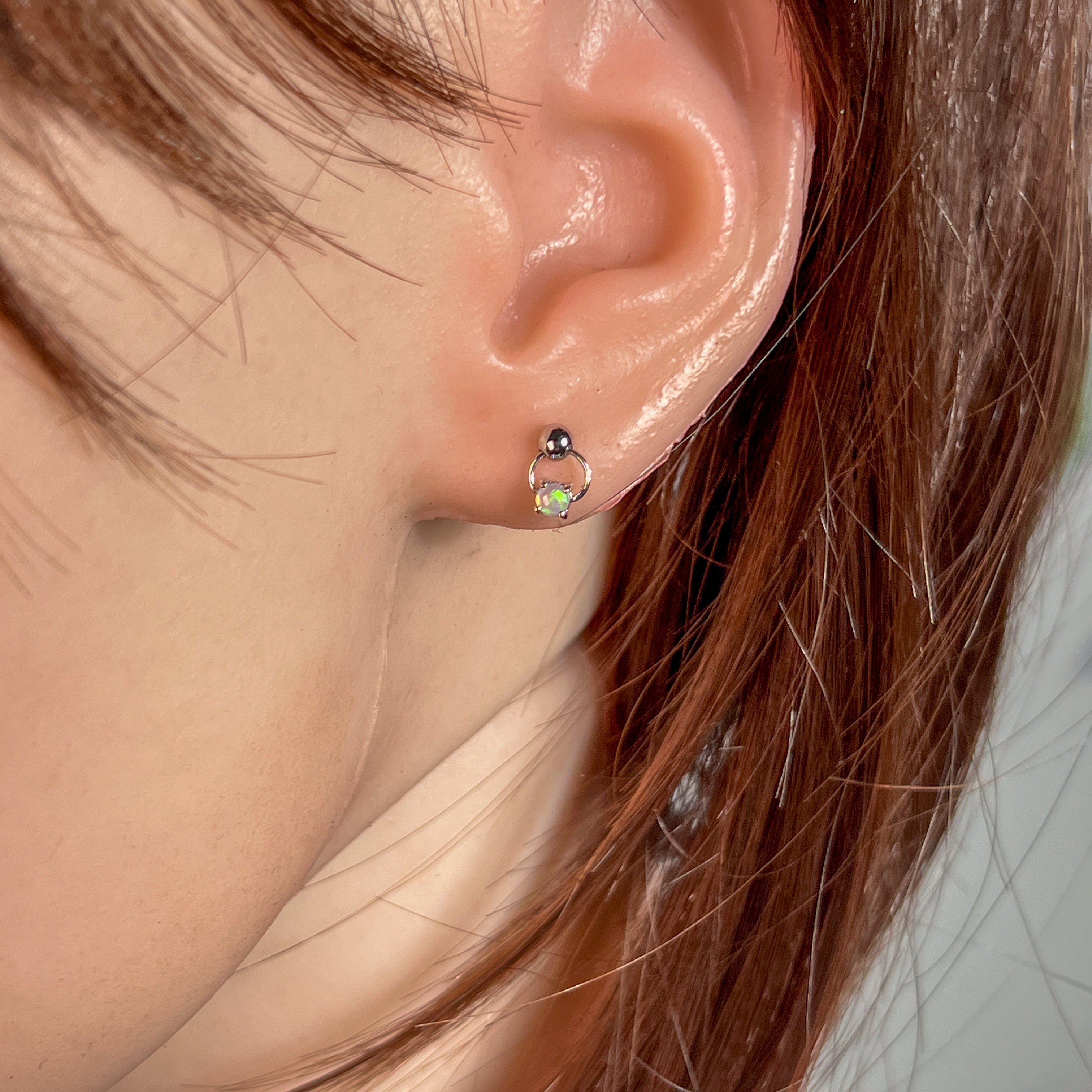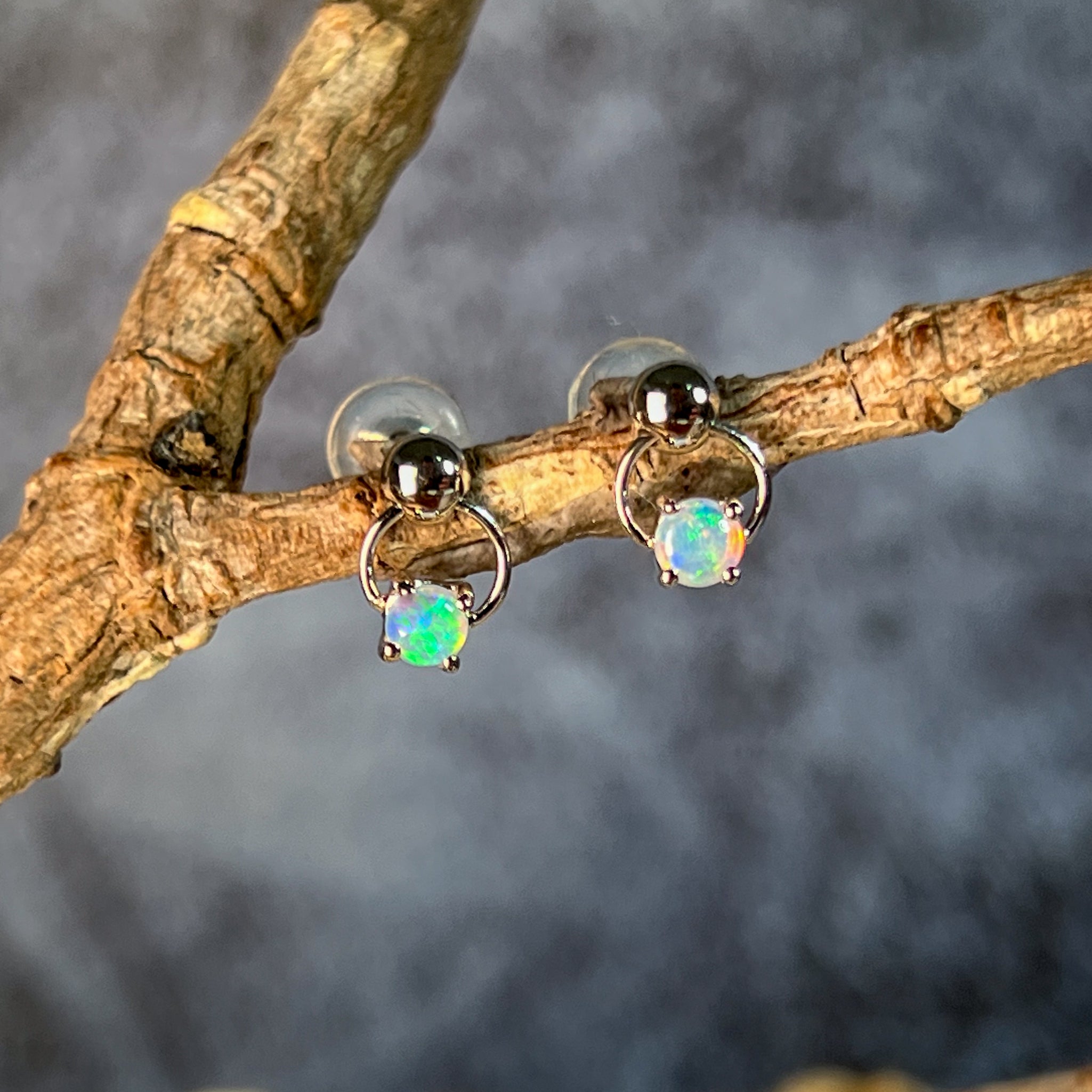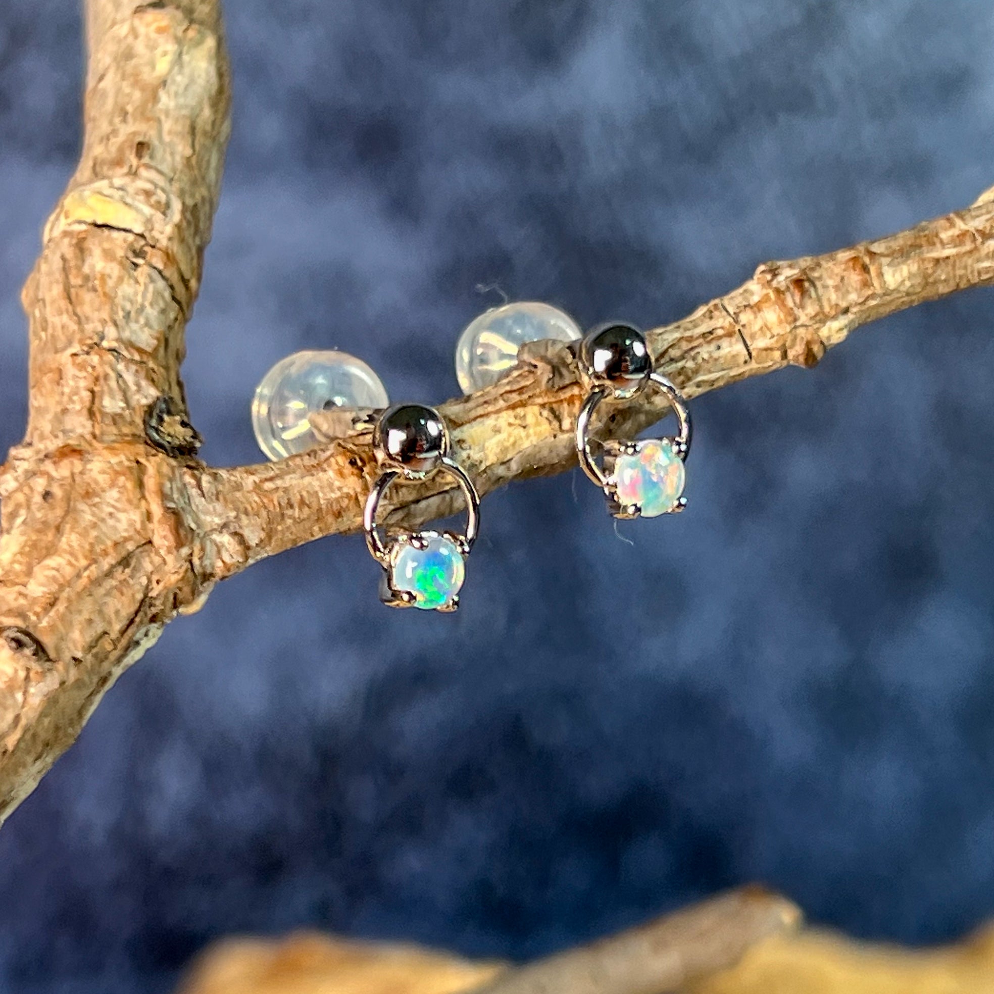 Add a touch of elegance to your outfit with our 14kt White Gold Crystal Opal studs. These dainty earrings are set with 0.15ct of shimmering opal, adding a subtle yet stunning sparkle. Elevate your jewellery collection with this timeless piece.