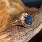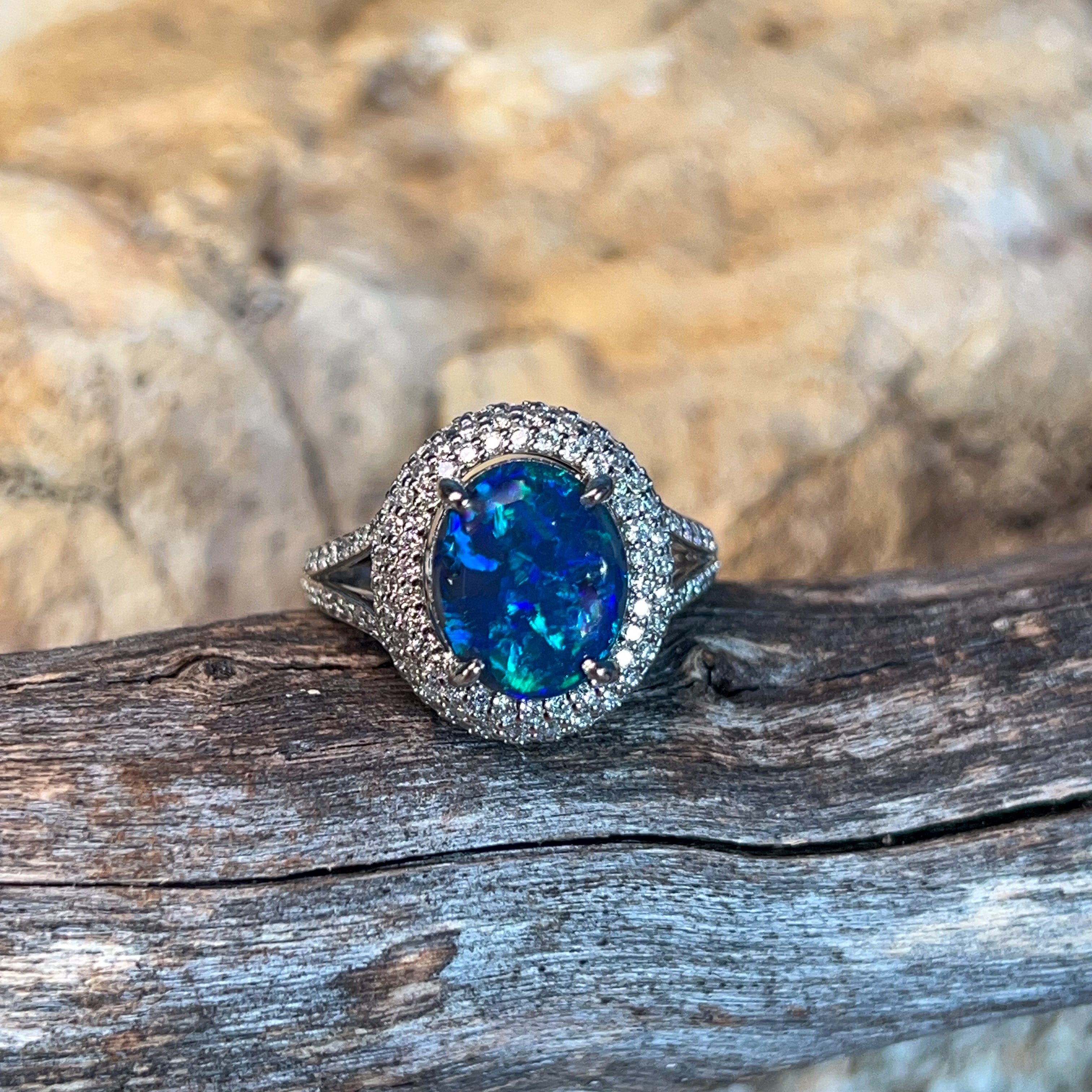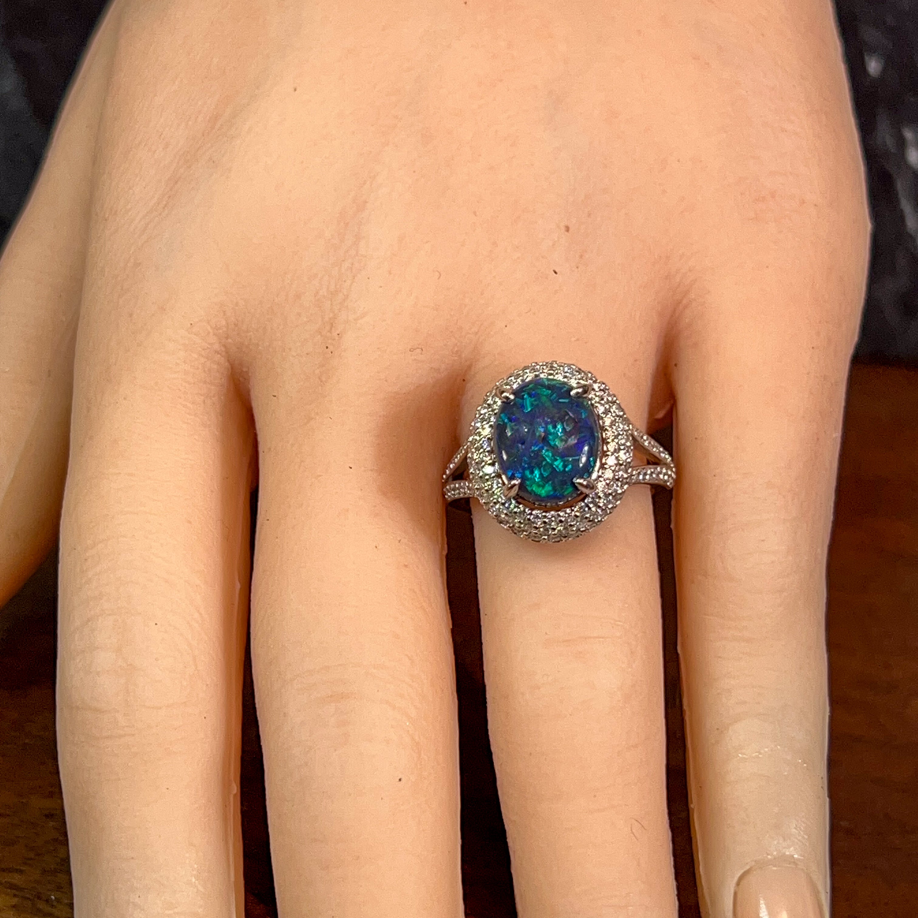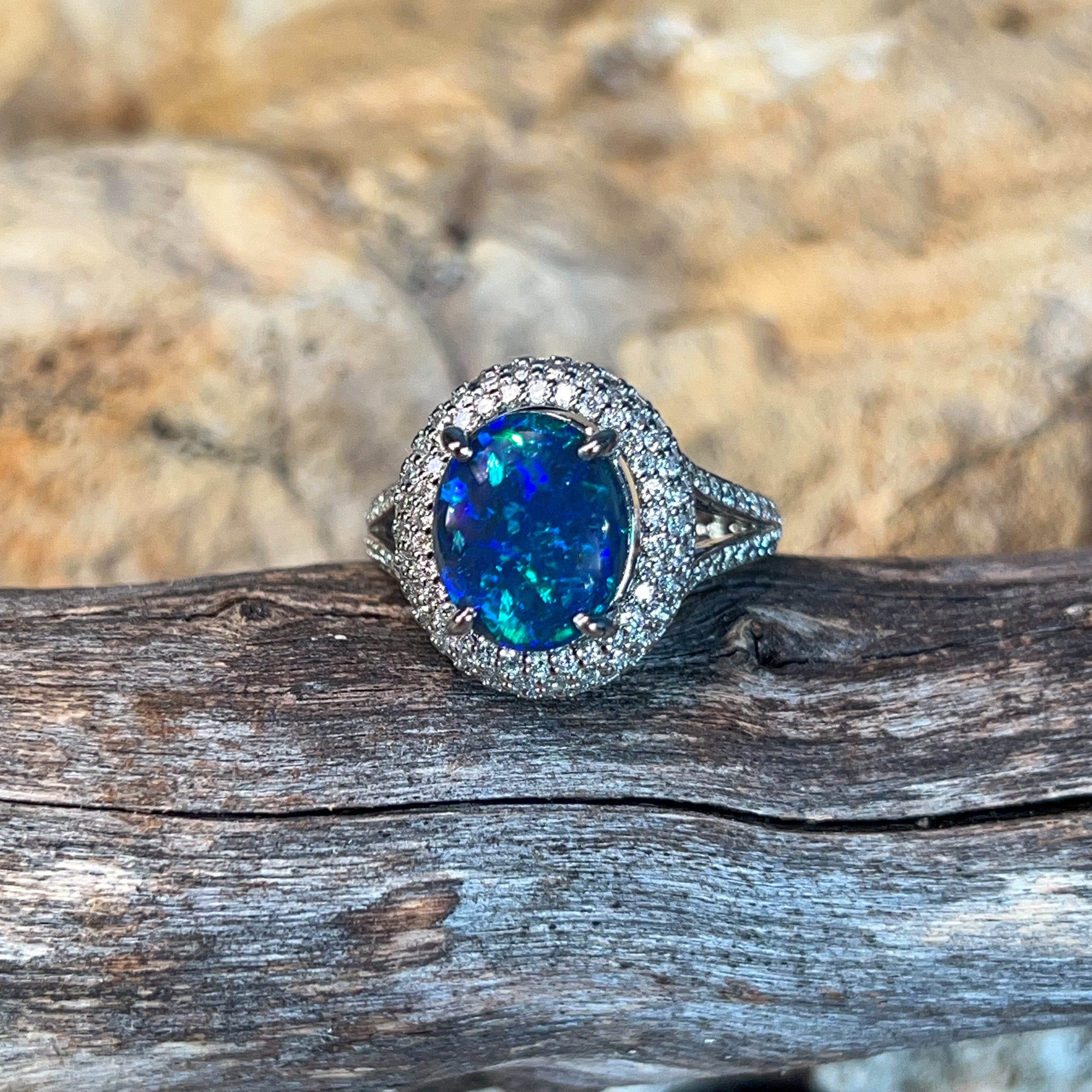 Platinum cluster Black Opal 3.17ct and diamond ring