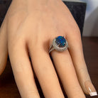 An exquisite statement piece featuring a stunning 3.1ct Australian Black Opal at its heart. This Platinum cluster ring showcases a mesmerising opal displaying vibrant yellow, green, and blue flashes against a deep black base. Surrounded by 141 round brilliant-cut diamonds (0.92ct total), the design creates a luxurious halo effect that amplifies the opal's natural beauty. The opal measures 10.7x9mm, perfectly proportioned for an elegant dress ring. Currently sized at US 6.5 (M 1/2). A timeless investment piece that captures the essence of Australian opals in sophisticated style.