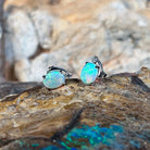 One pair of 18kt White Gold Opal earring studs claw set