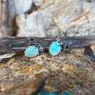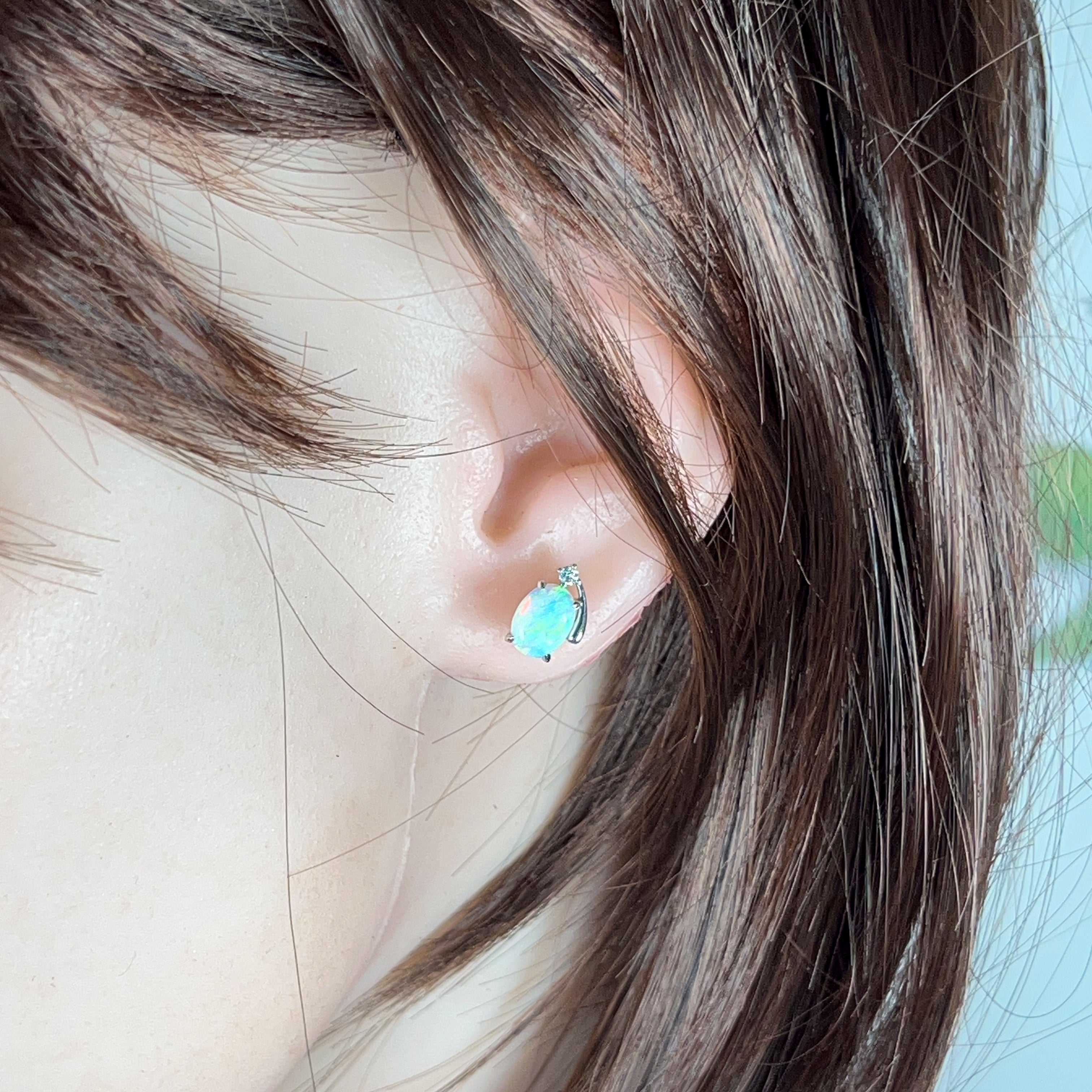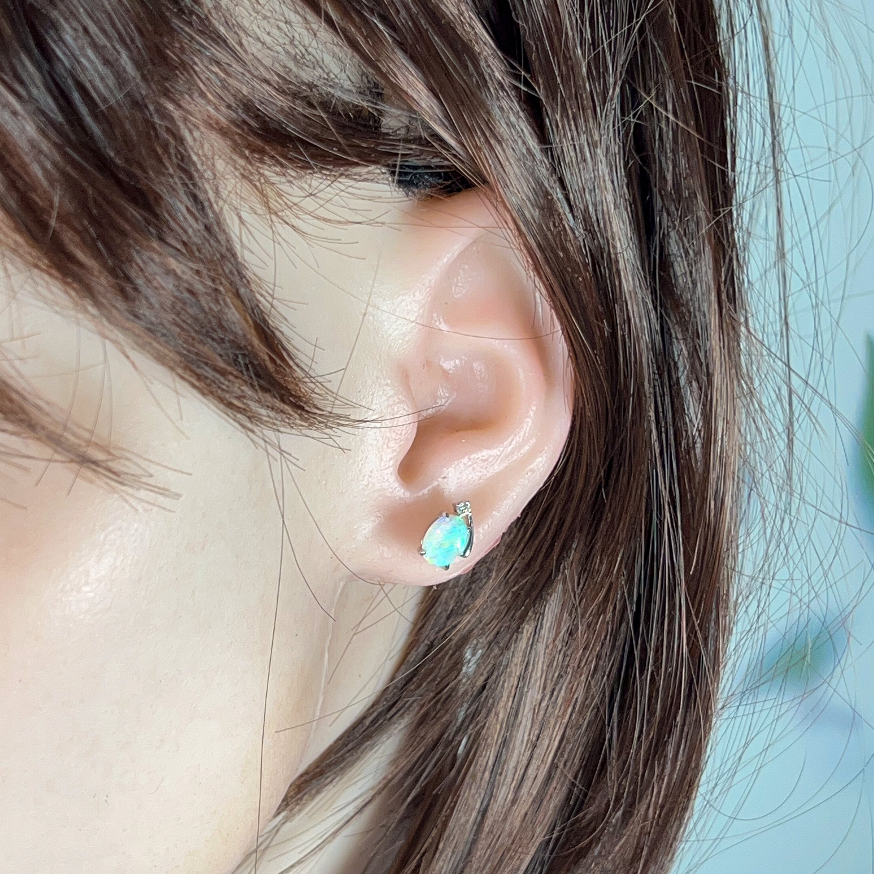 18kt White Gold Crystal Opal 8x6mm and diamond studs