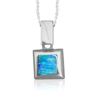 18kt White Gold square Opal inlay pendant
