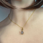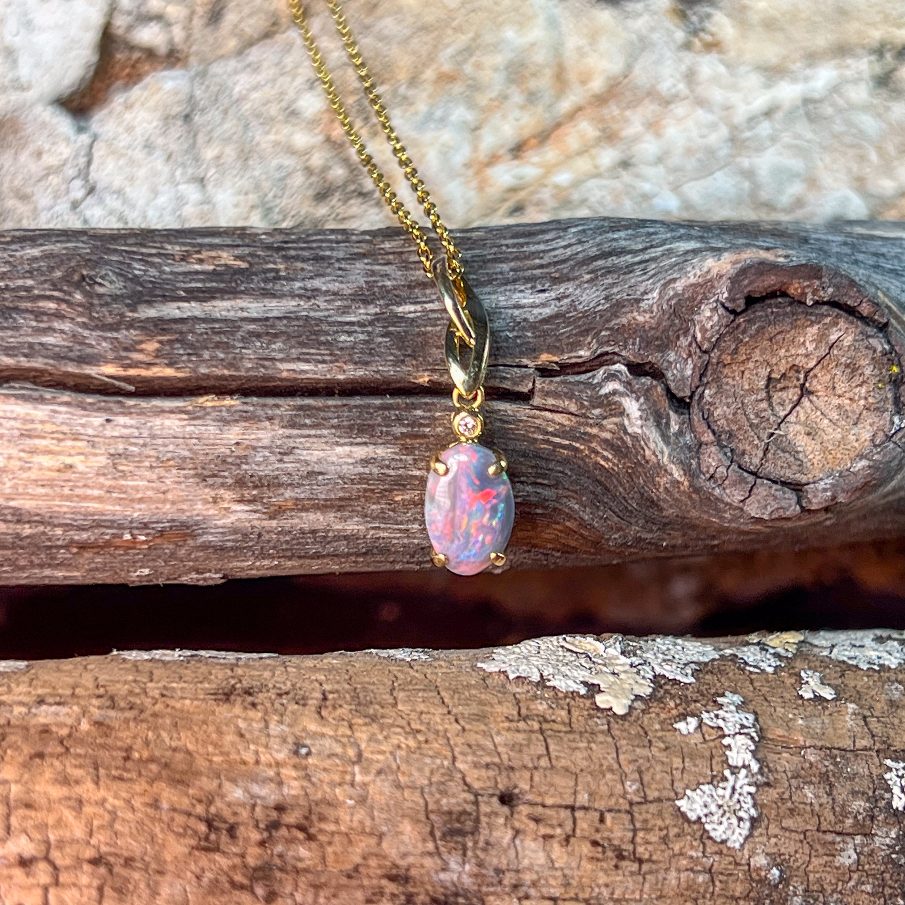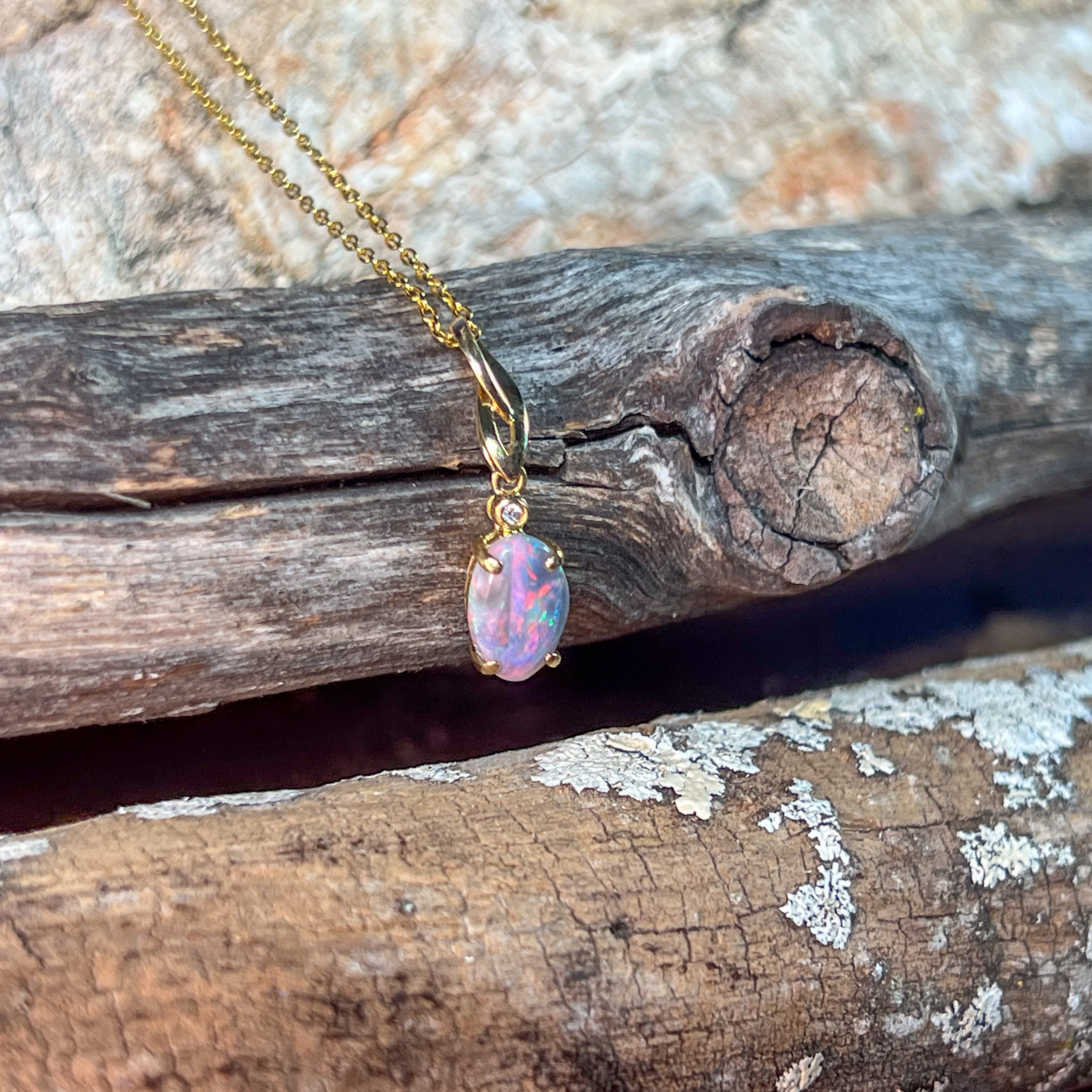 This elegant pendant features a striking 1.10ct black opal set in 18kt yellow gold, combining timeless style with a bold flash of color. Its minimalist design ensures versatile wear, making it an essential addition for those seeking understated luxury with a unique touch.