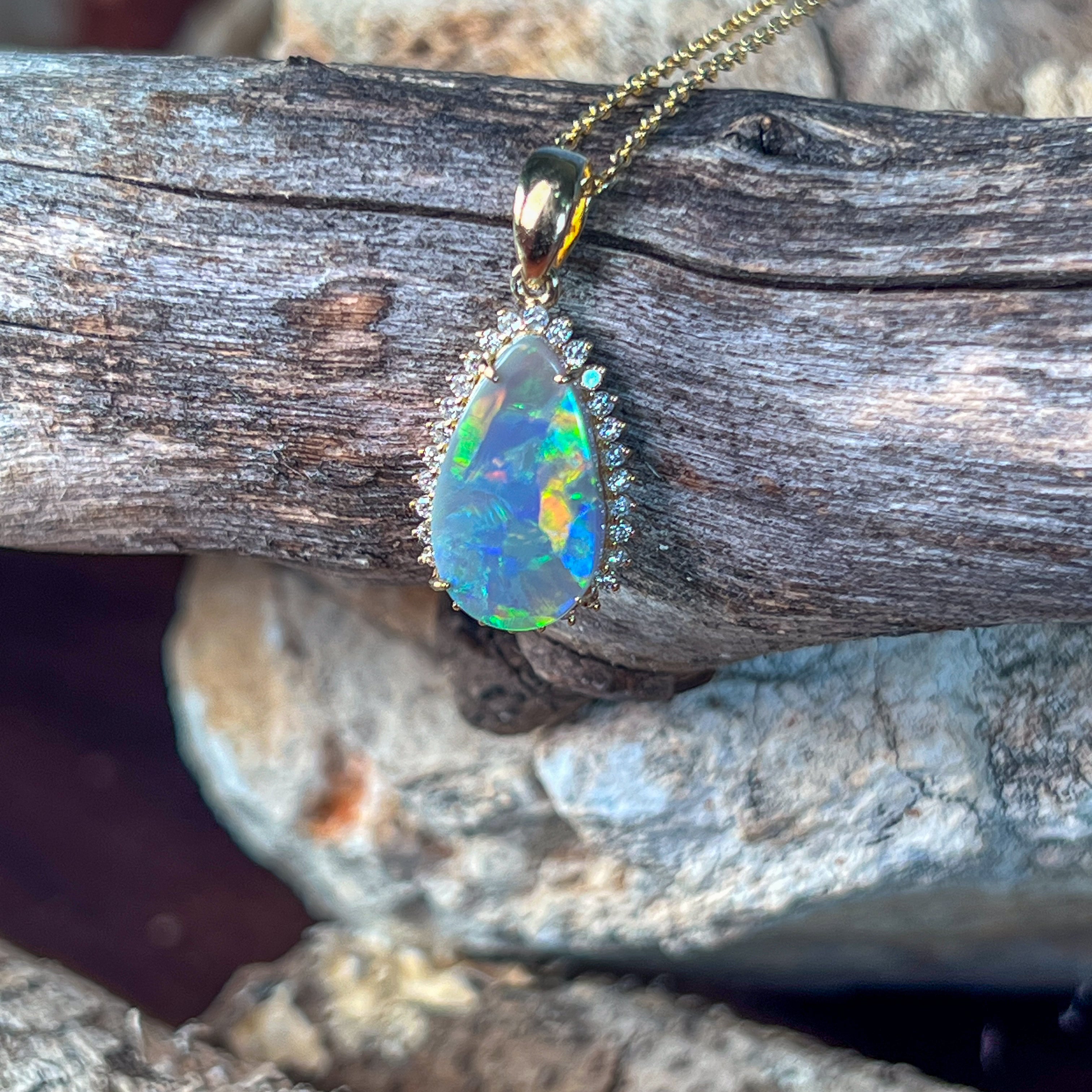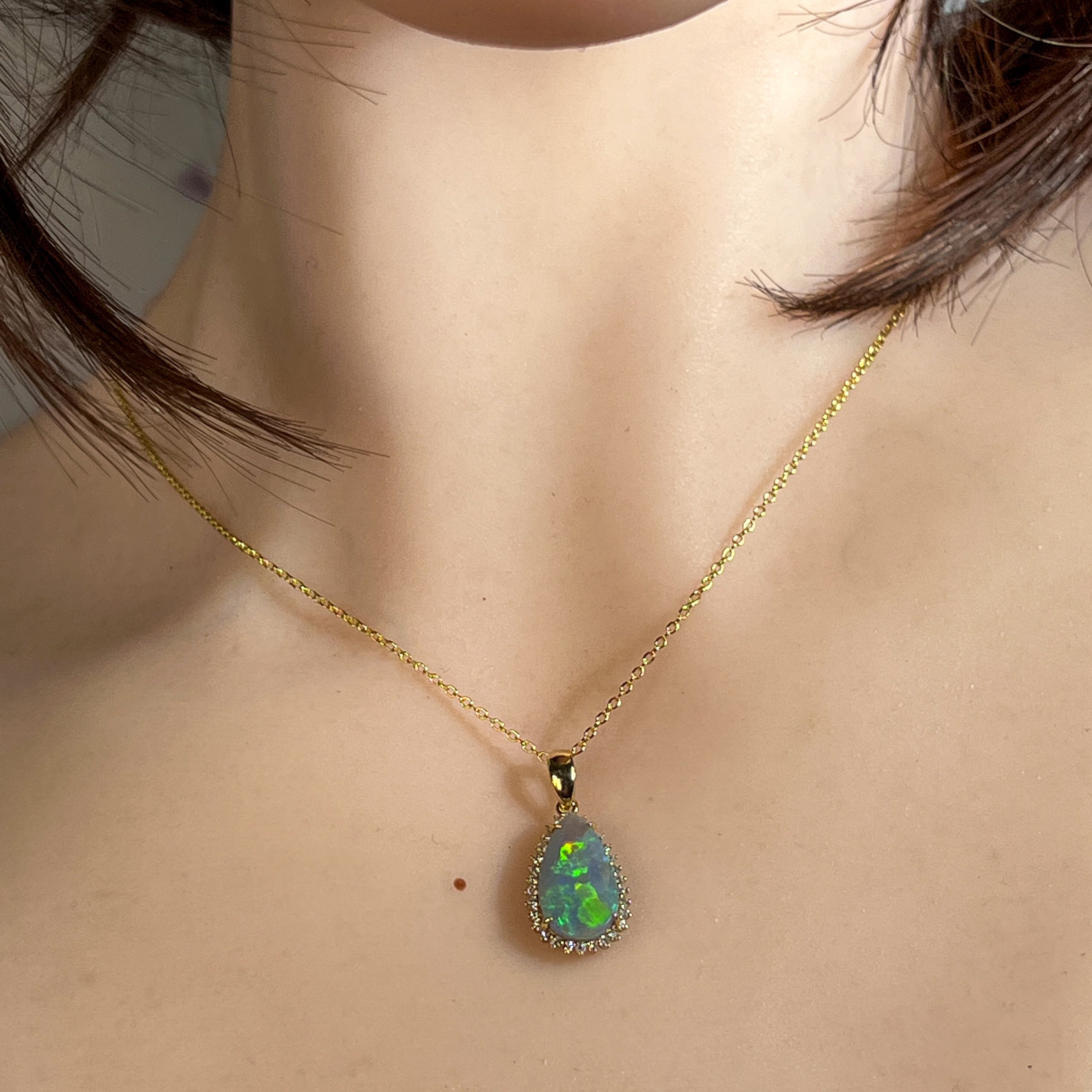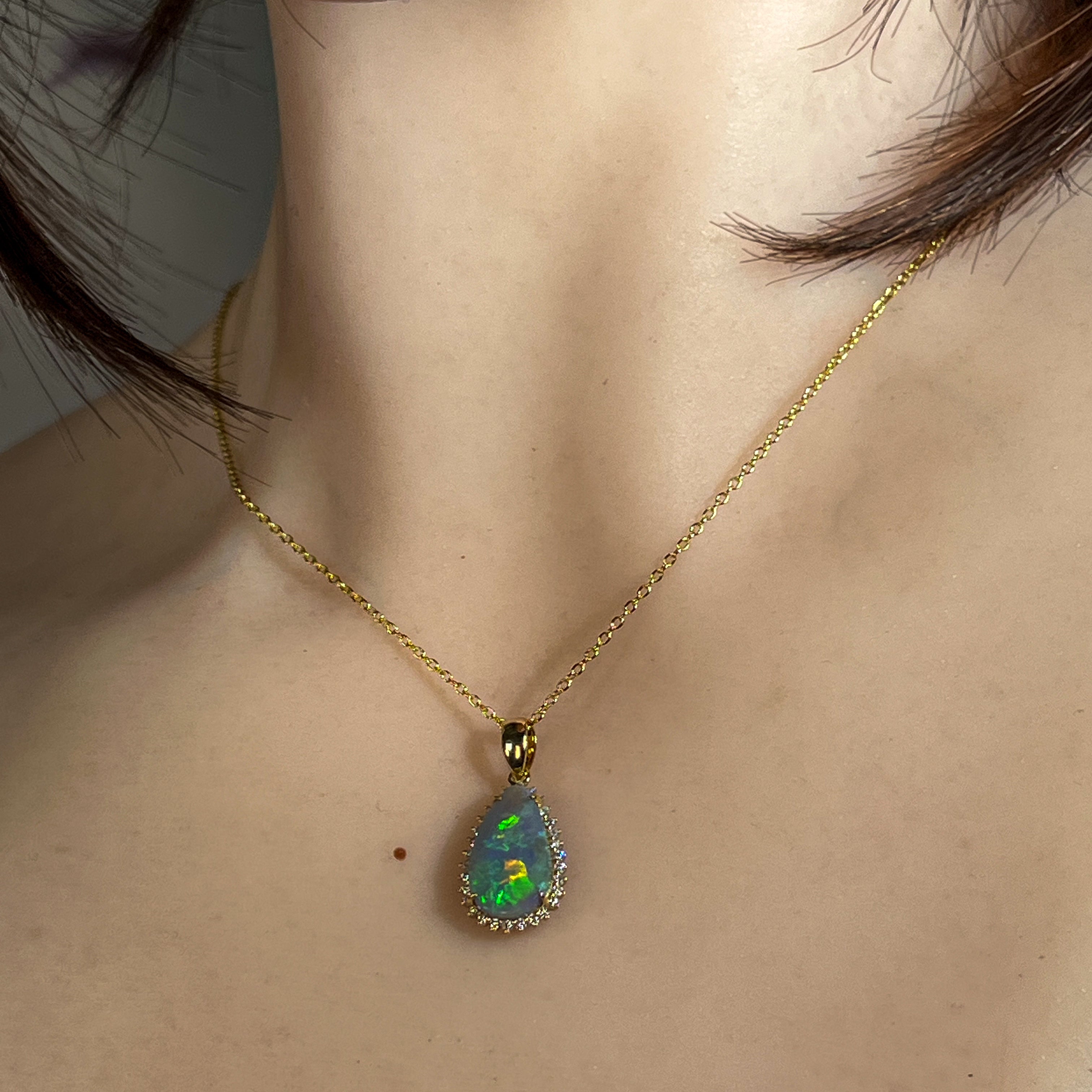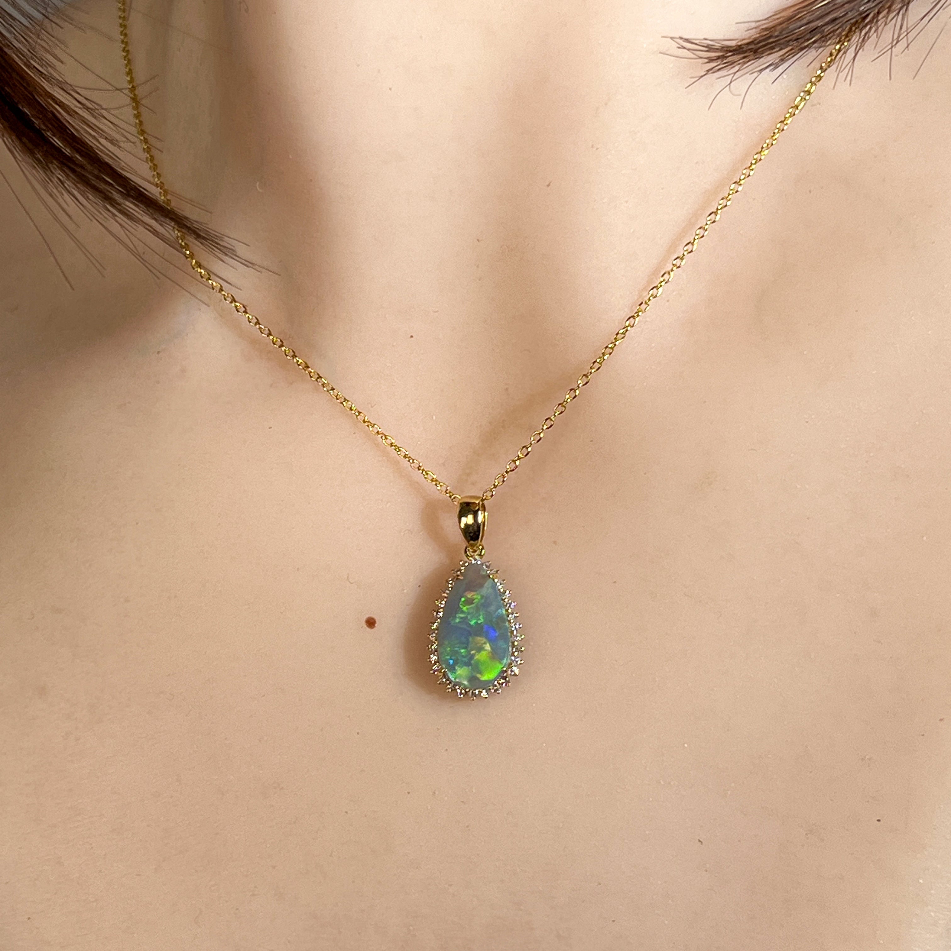 18kt Yellow Gold Black Opal pearshape 2.05ct diamond pendant