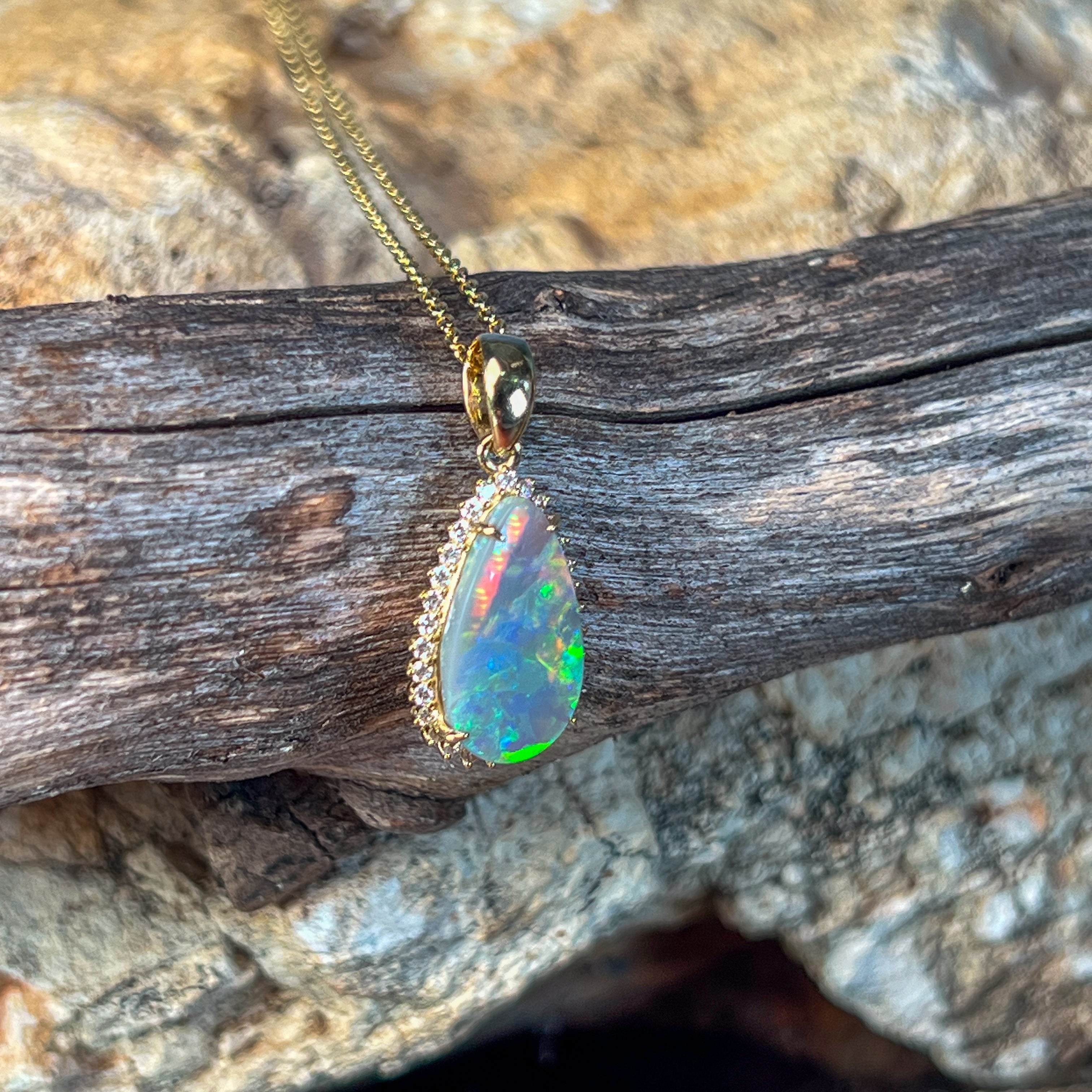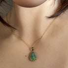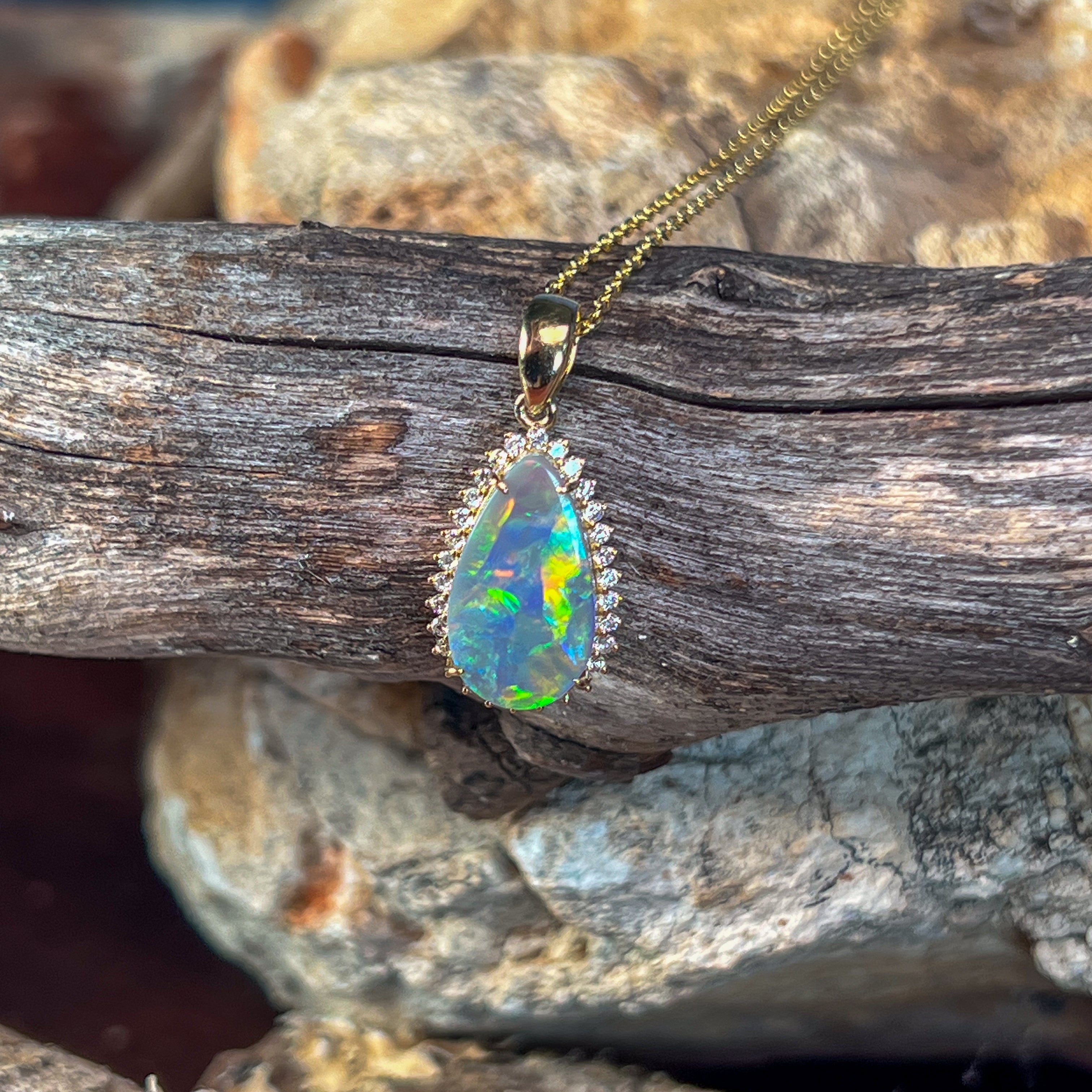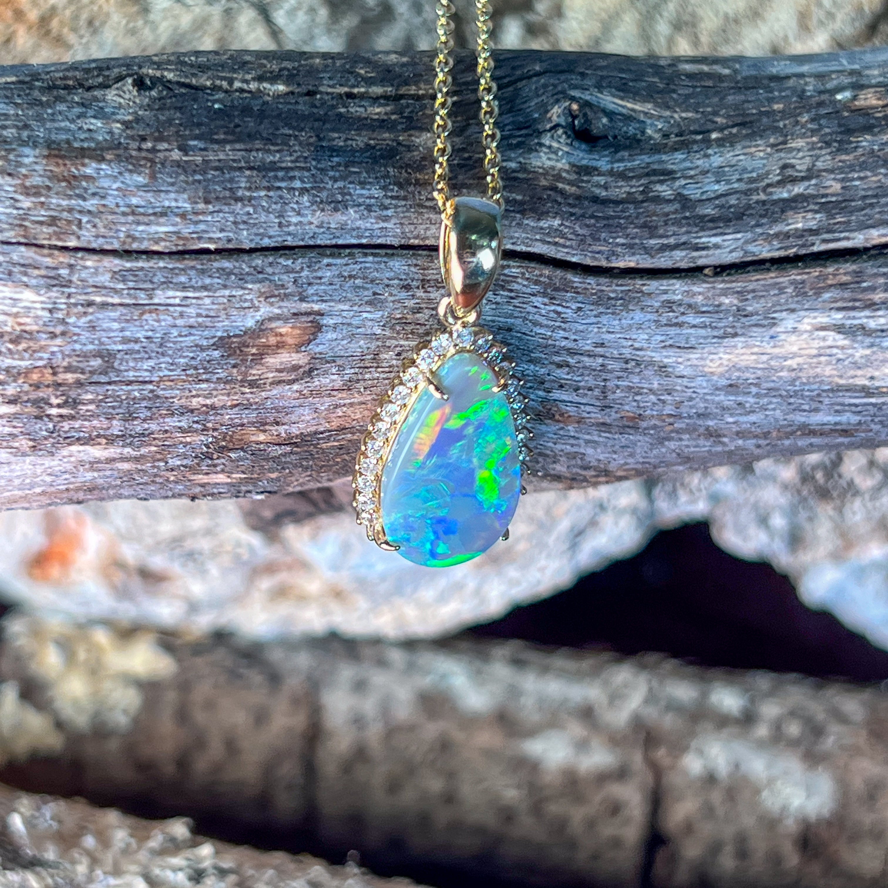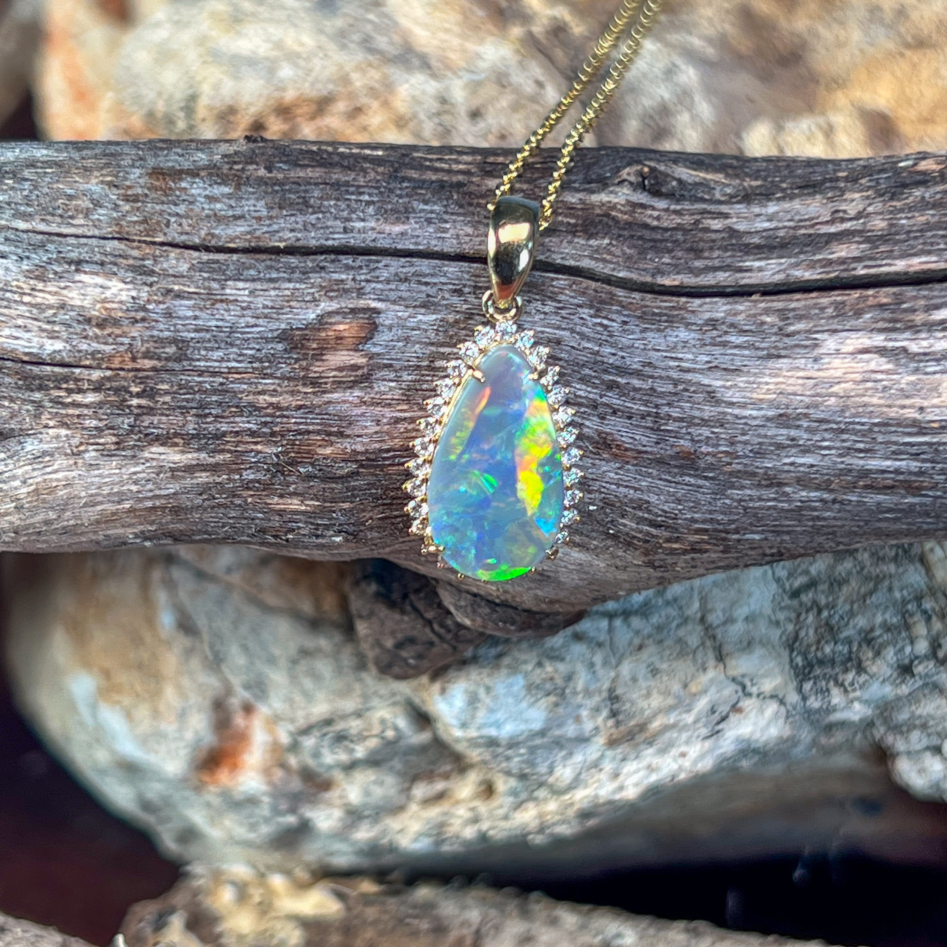 18kt Yellow Gold Black Opal pearshape 2.05ct diamond pendant