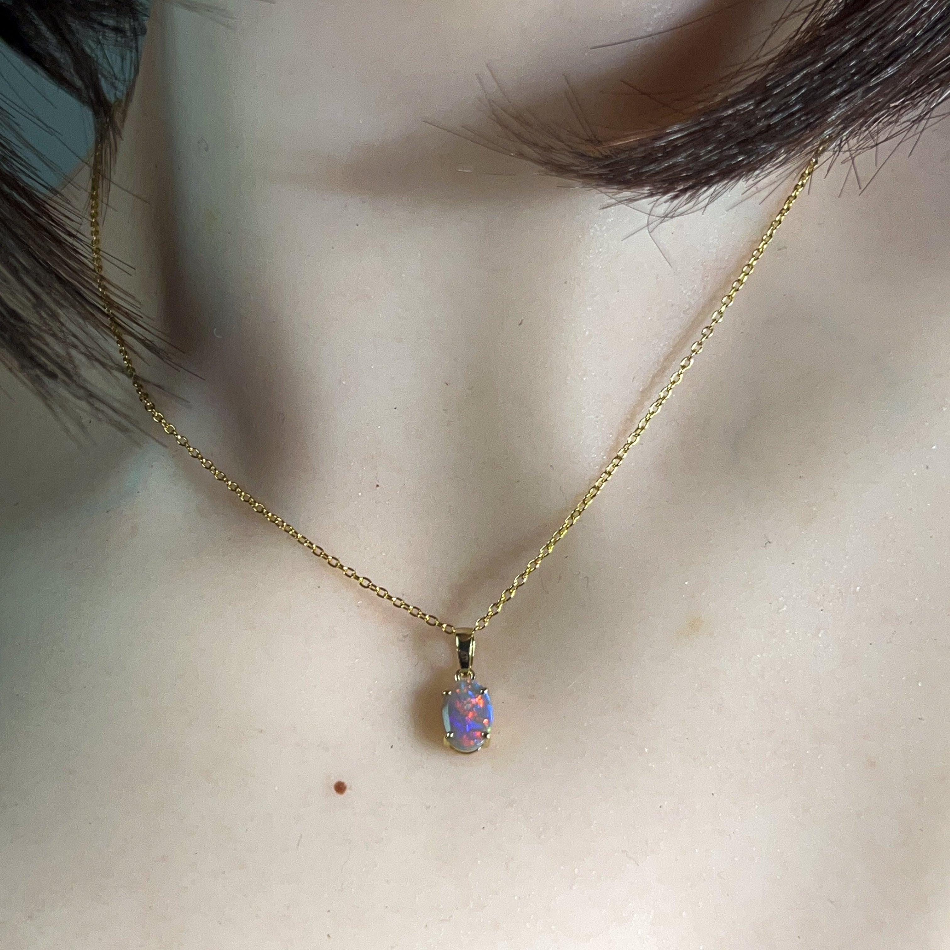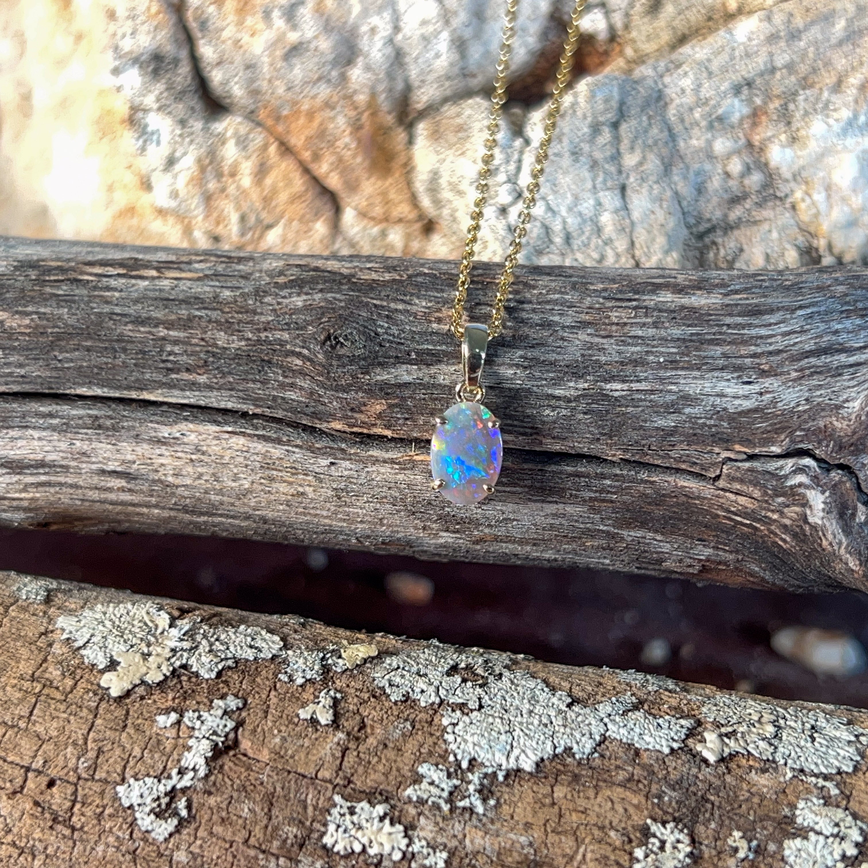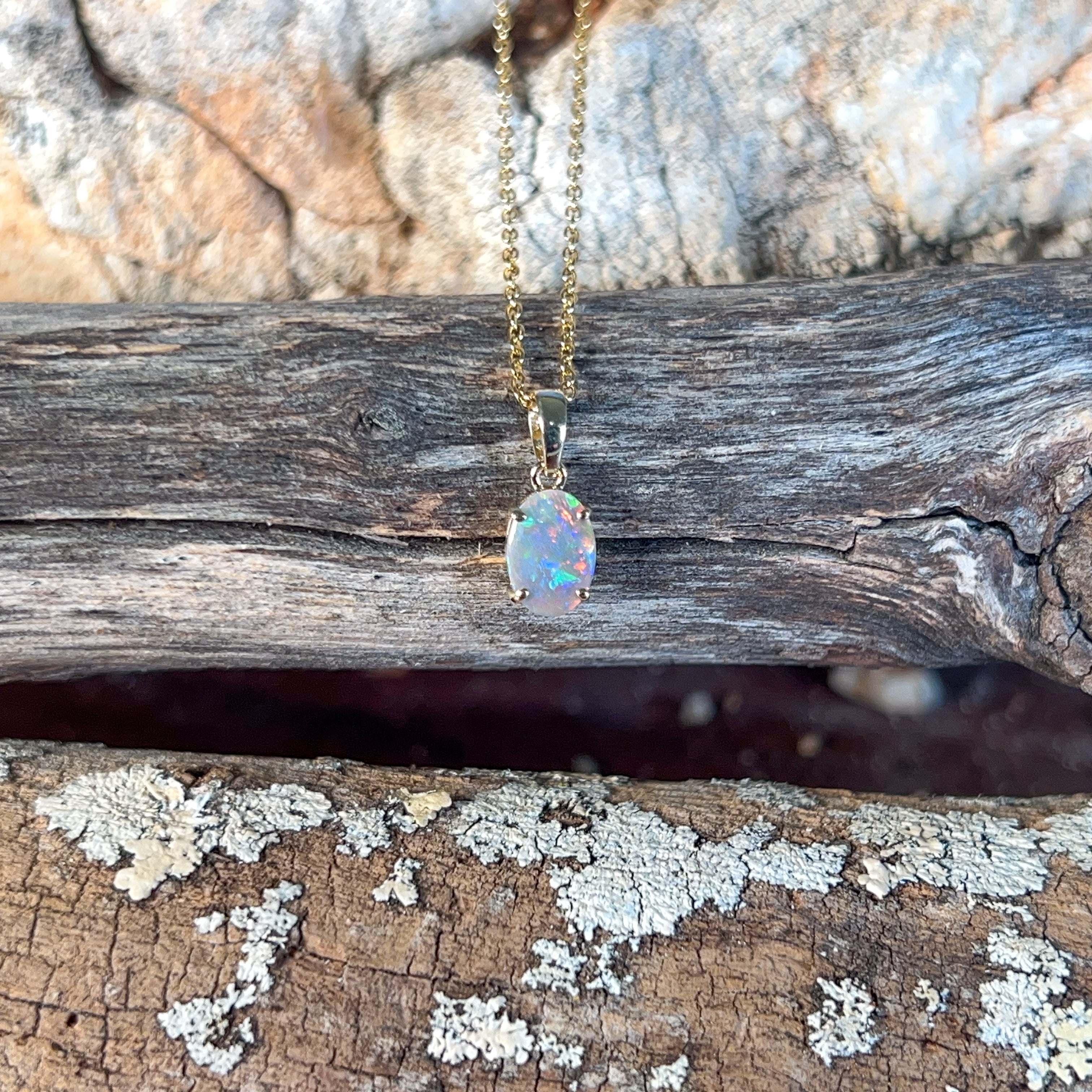 Elevate your everyday elegance with this timeless 9kt yellow gold pendant, featuring a stunning 0.45ct black opal secured in a classic claw setting. The refined design strikes the perfect balance between understated sophistication and captivating beauty, allowing the opal's natural play of colour to take centre stage. Versatile enough for daily wear yet distinctive enough to make a statement, this piece becomes an instant heirloom-worthy treasure. A dainty classic that transcends trends and complements any style.