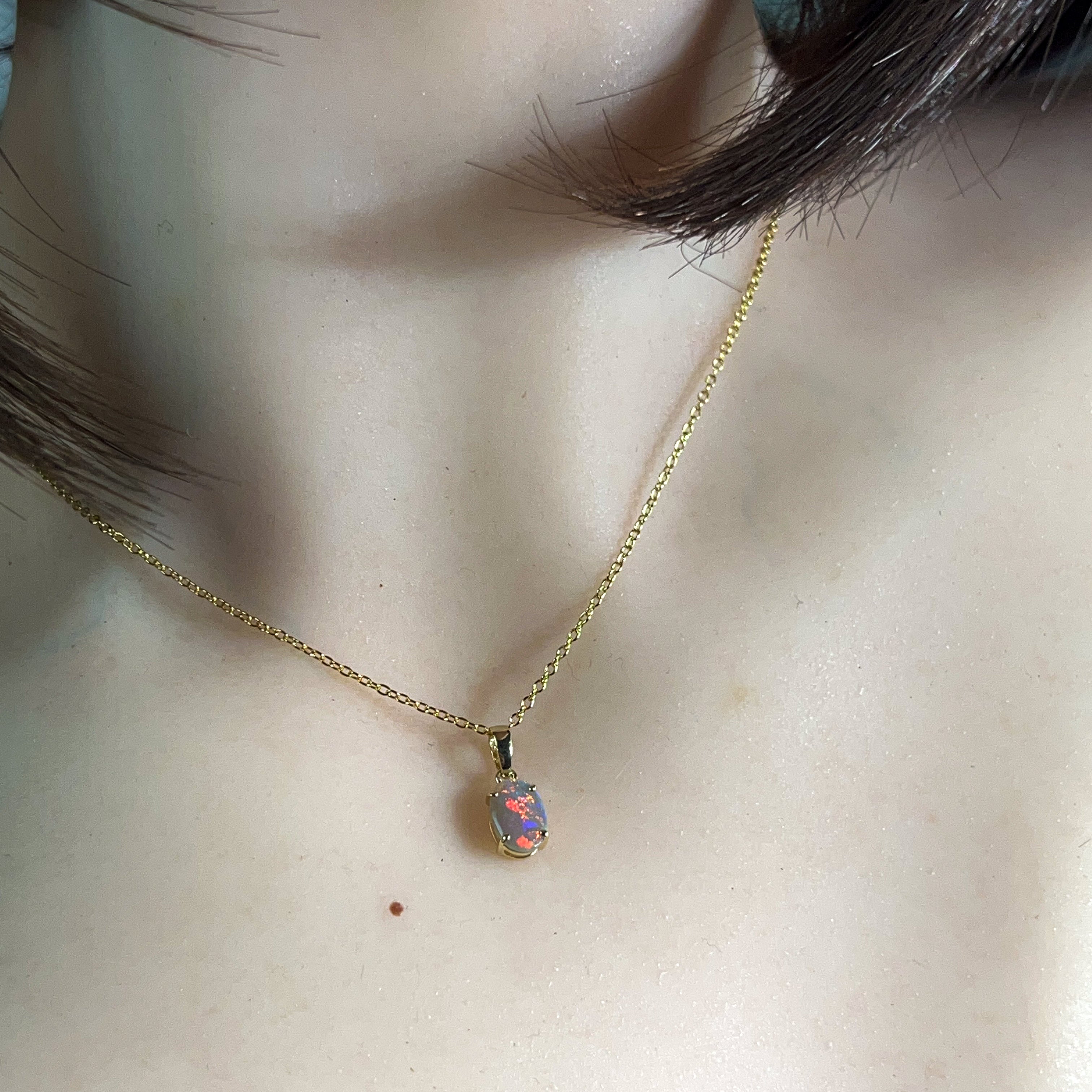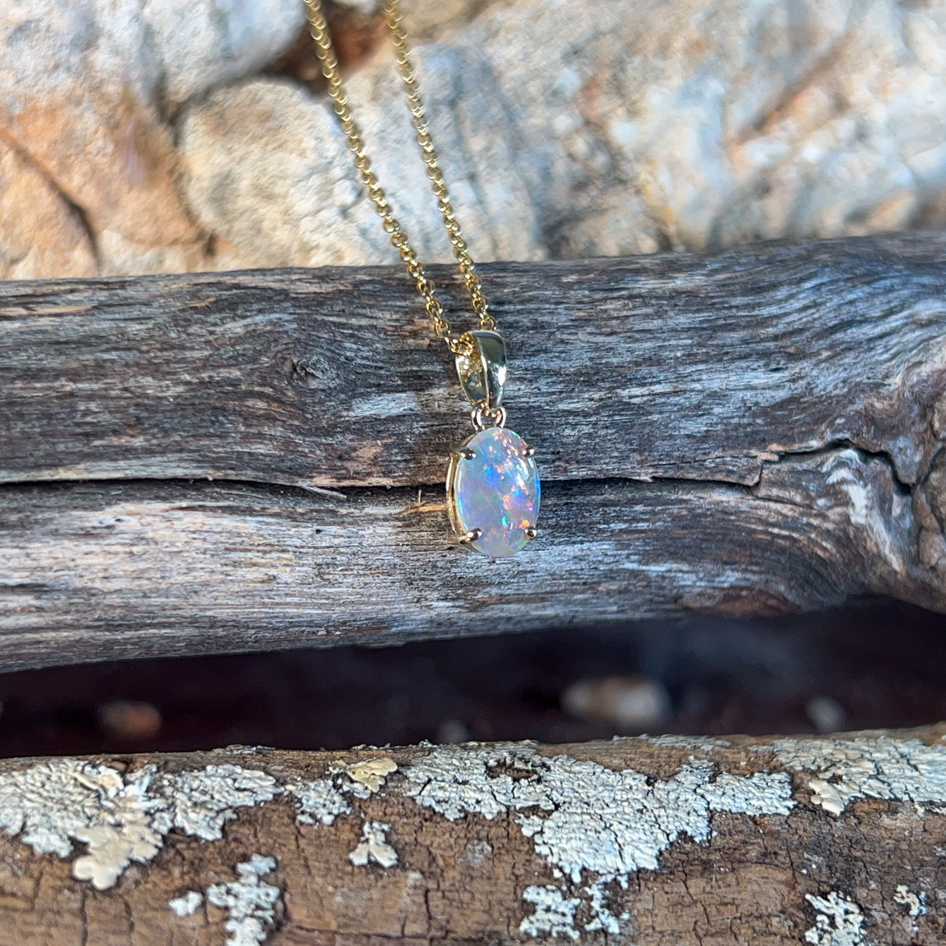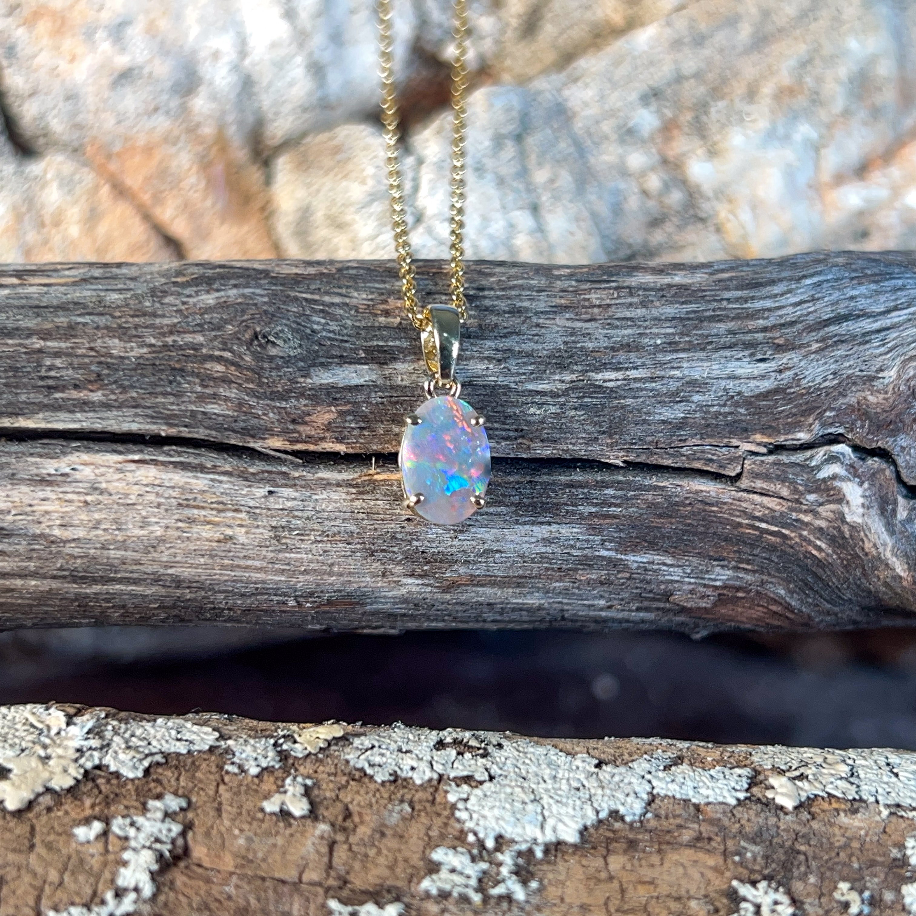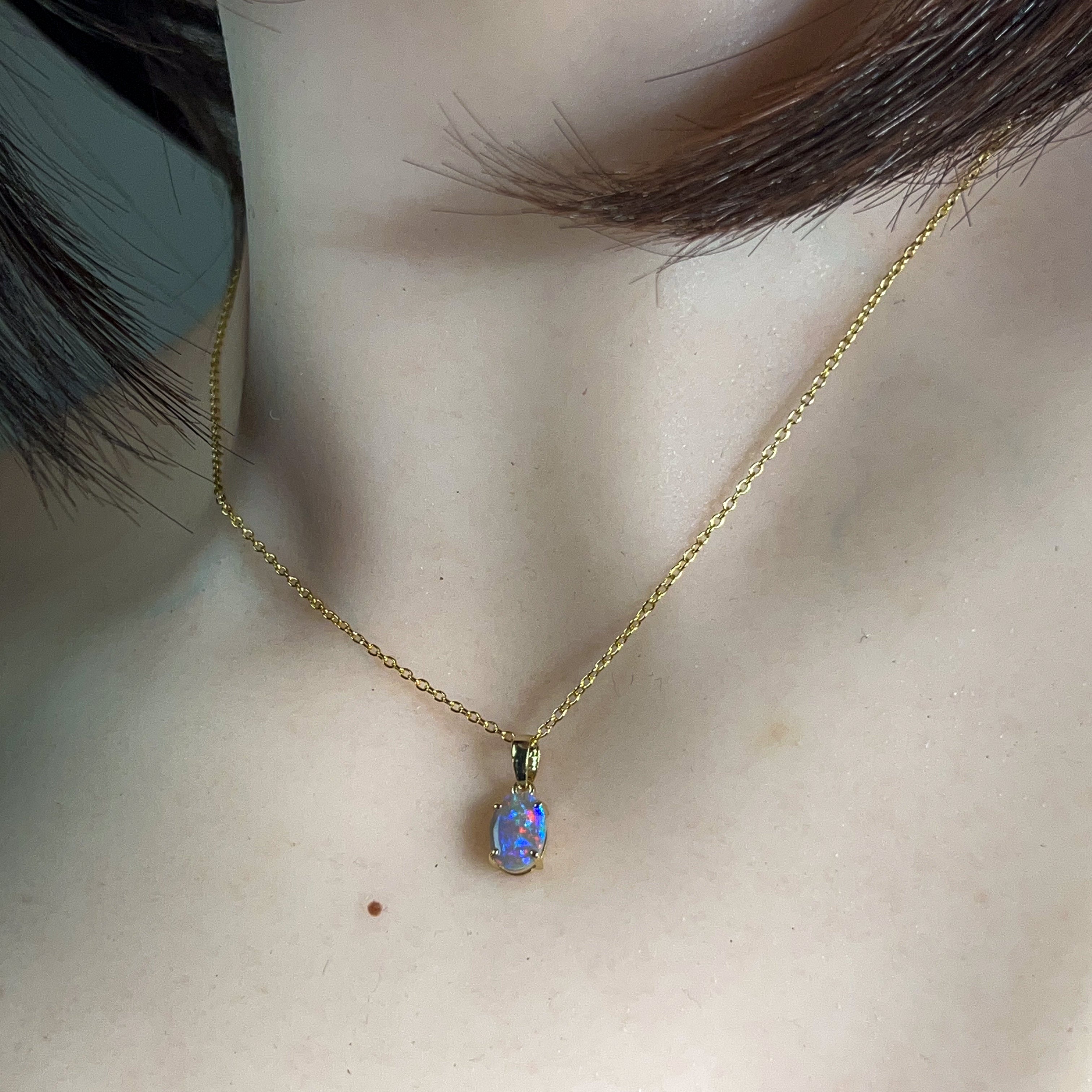 Elevate your everyday elegance with this timeless 9kt yellow gold pendant, featuring a stunning 0.45ct black opal secured in a classic claw setting. The refined design strikes the perfect balance between understated sophistication and captivating beauty, allowing the opal's natural play of colour to take centre stage. Versatile enough for daily wear yet distinctive enough to make a statement, this piece becomes an instant heirloom-worthy treasure. A dainty classic that transcends trends and complements any style.