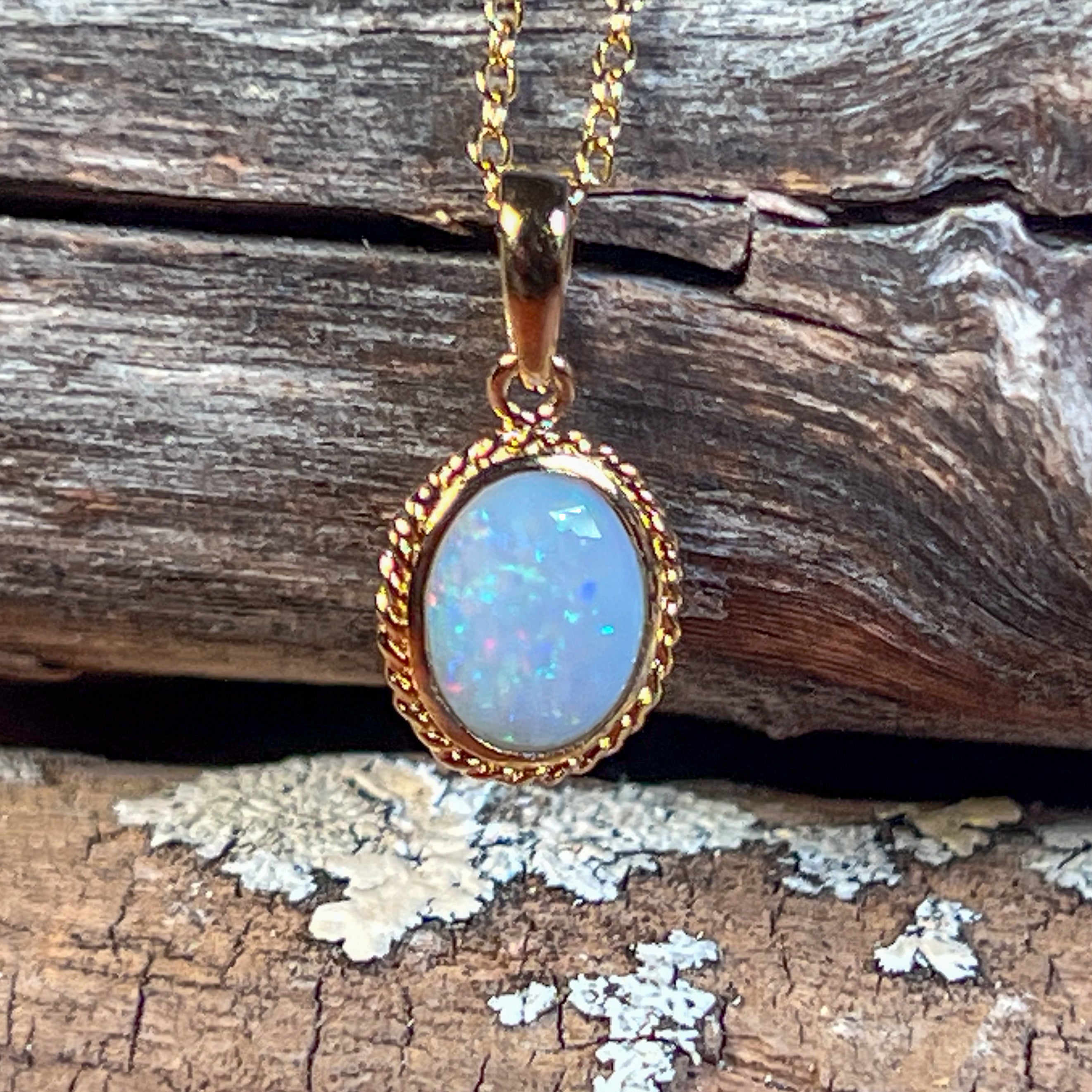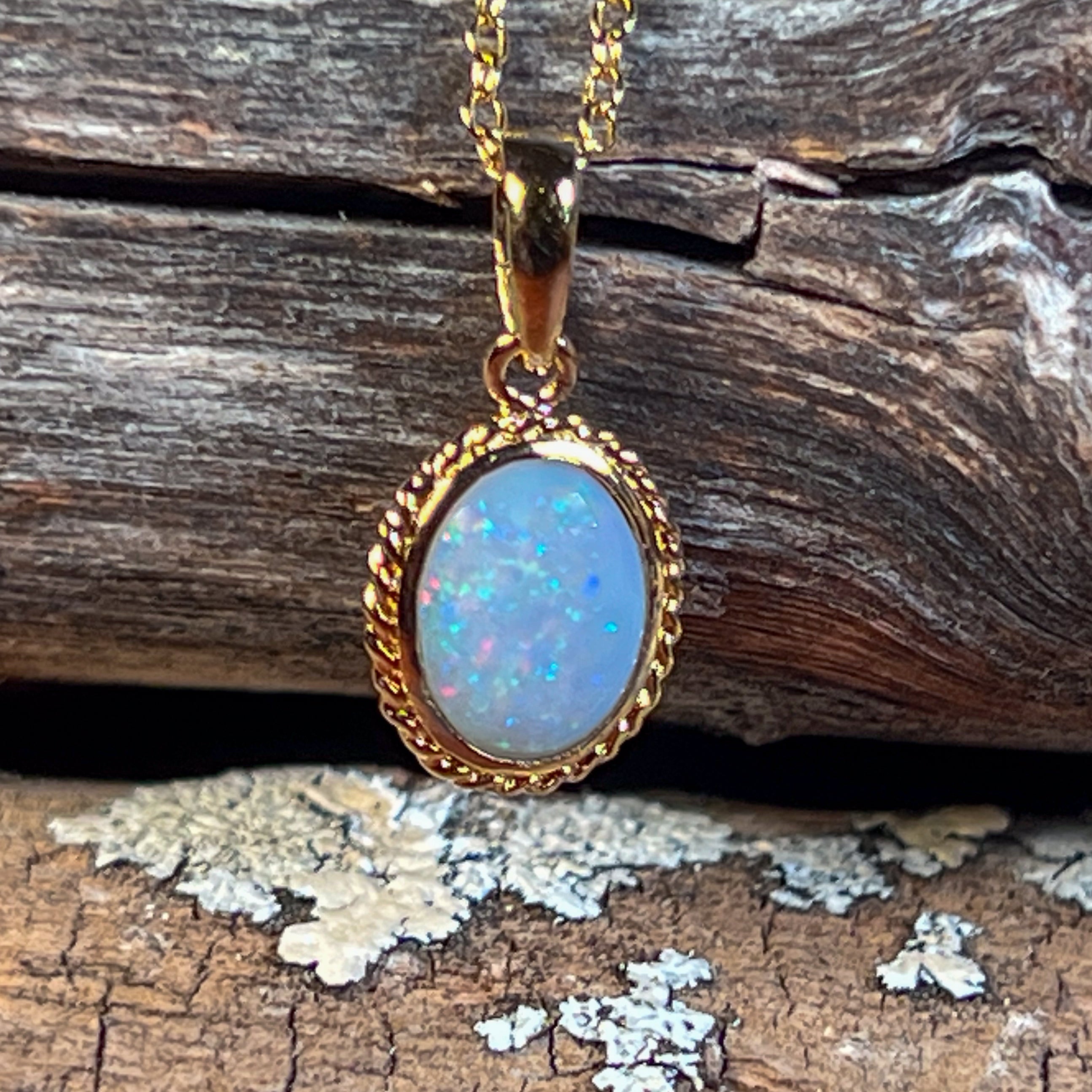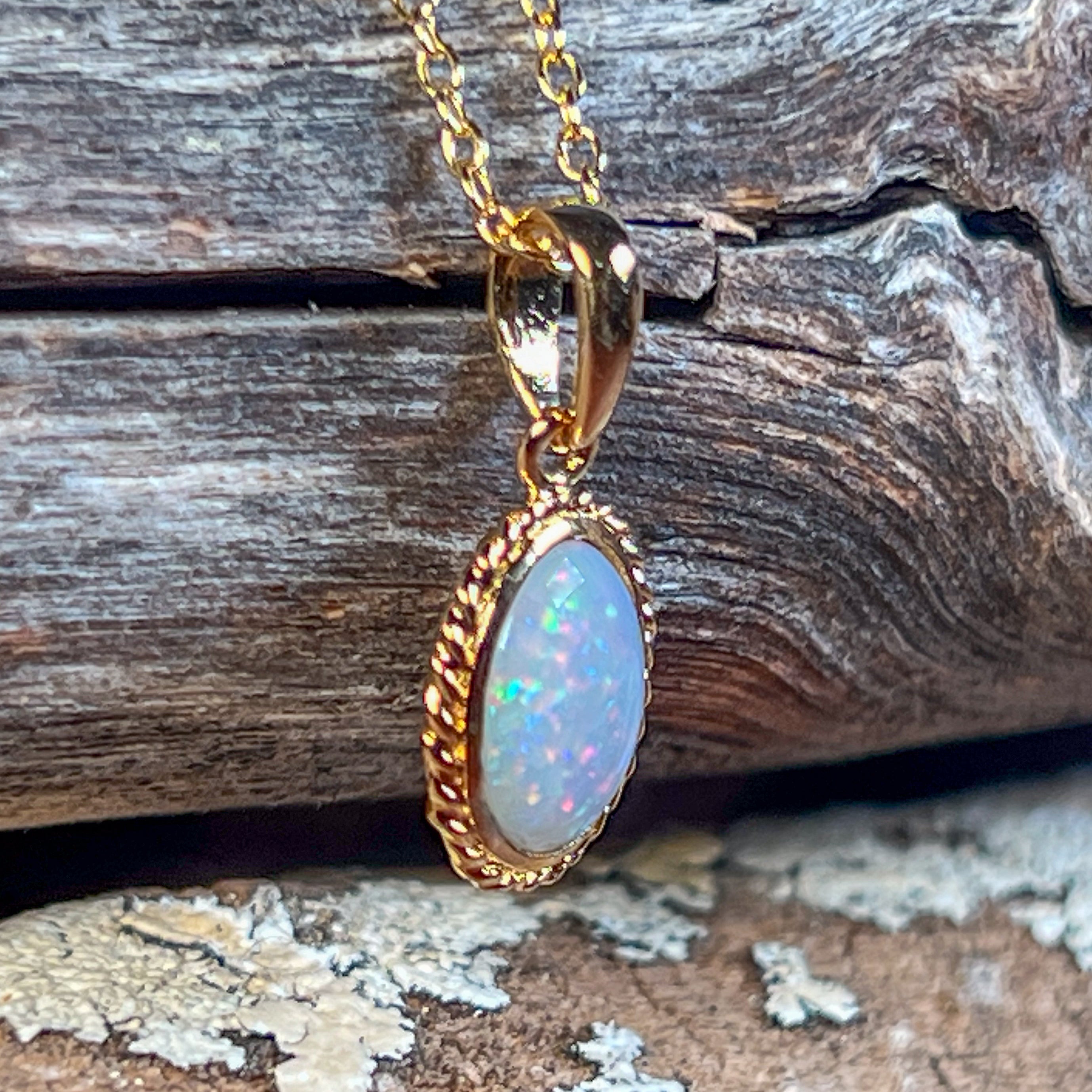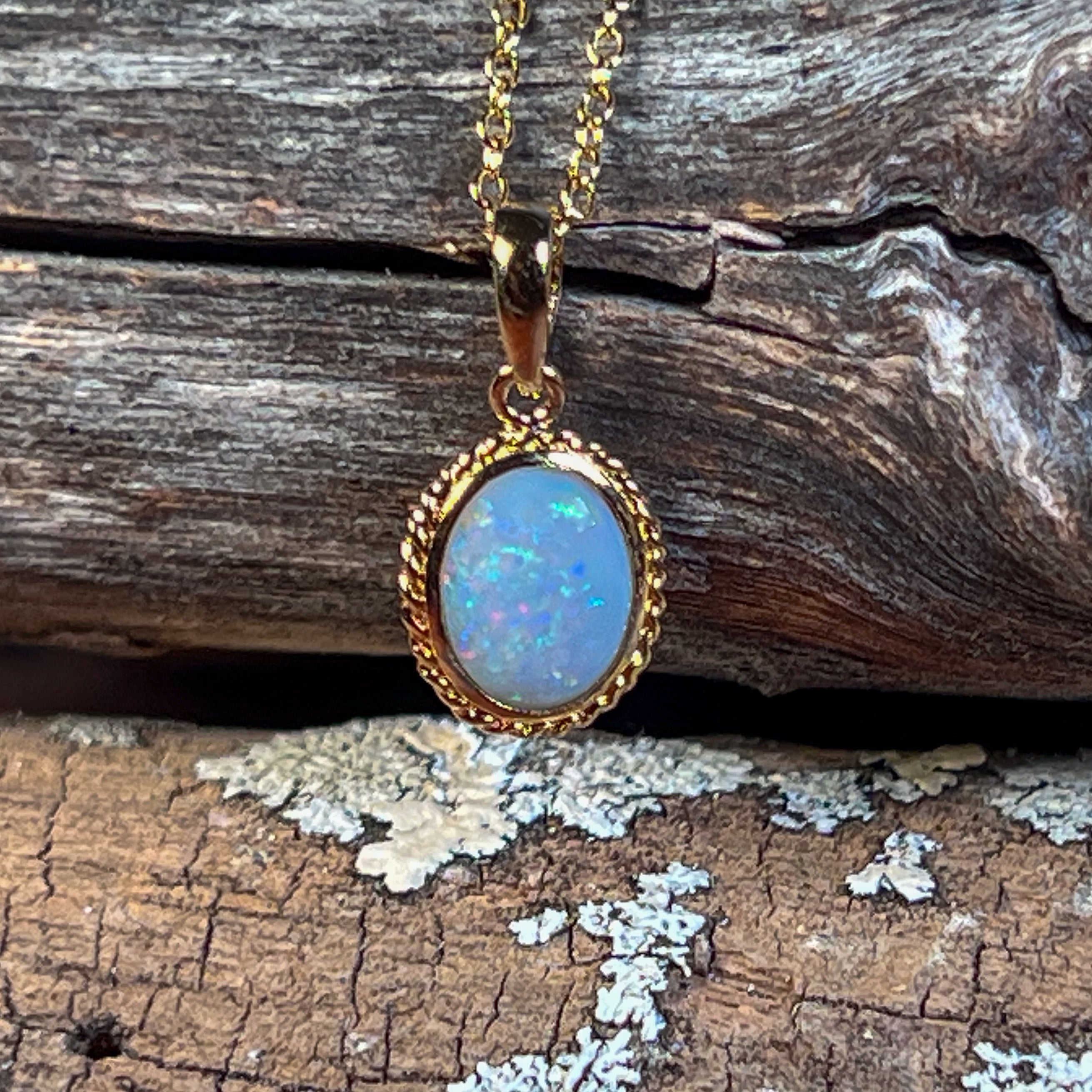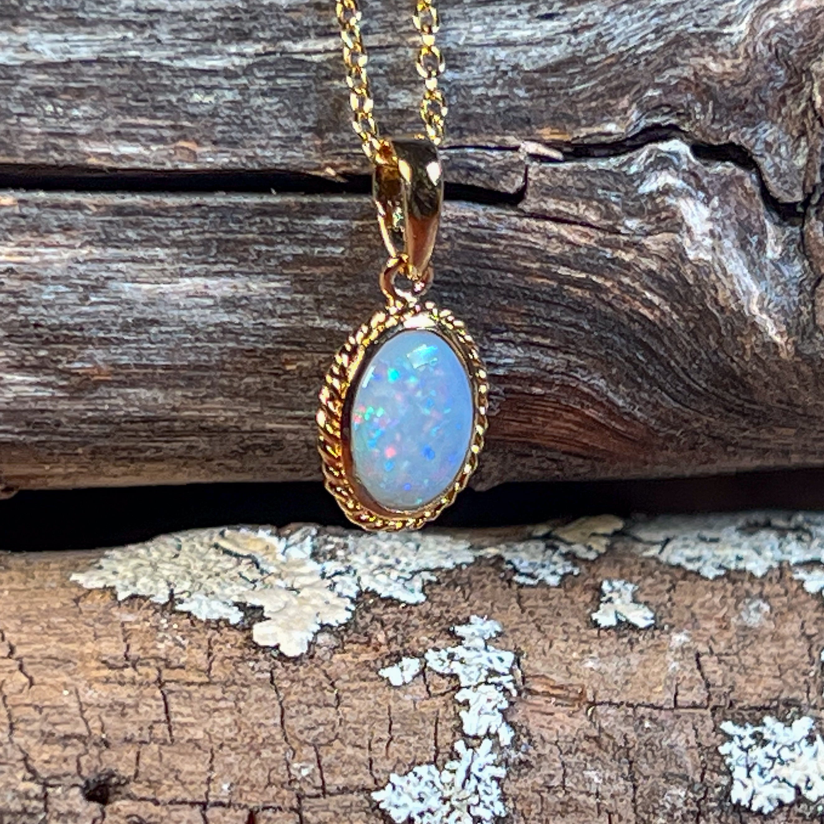 Elevate your everyday elegance with this stunning gold-plated pendant featuring a luminous 8x6mm white opal. The classic design lets the opal's natural play of colour take centre stage, creating a timeless piece that works beautifully with any outfit. Whether you're dressing up or keeping it casual, this versatile pendant adds just the right touch of sparkle and sophistication to your jewellery collection.