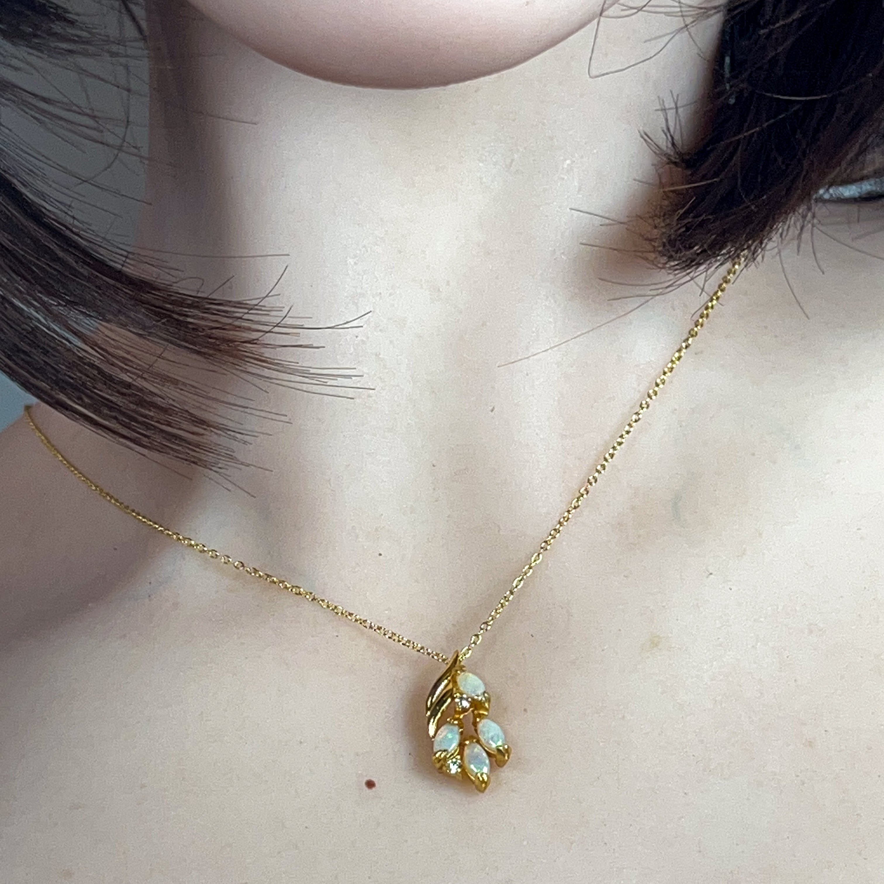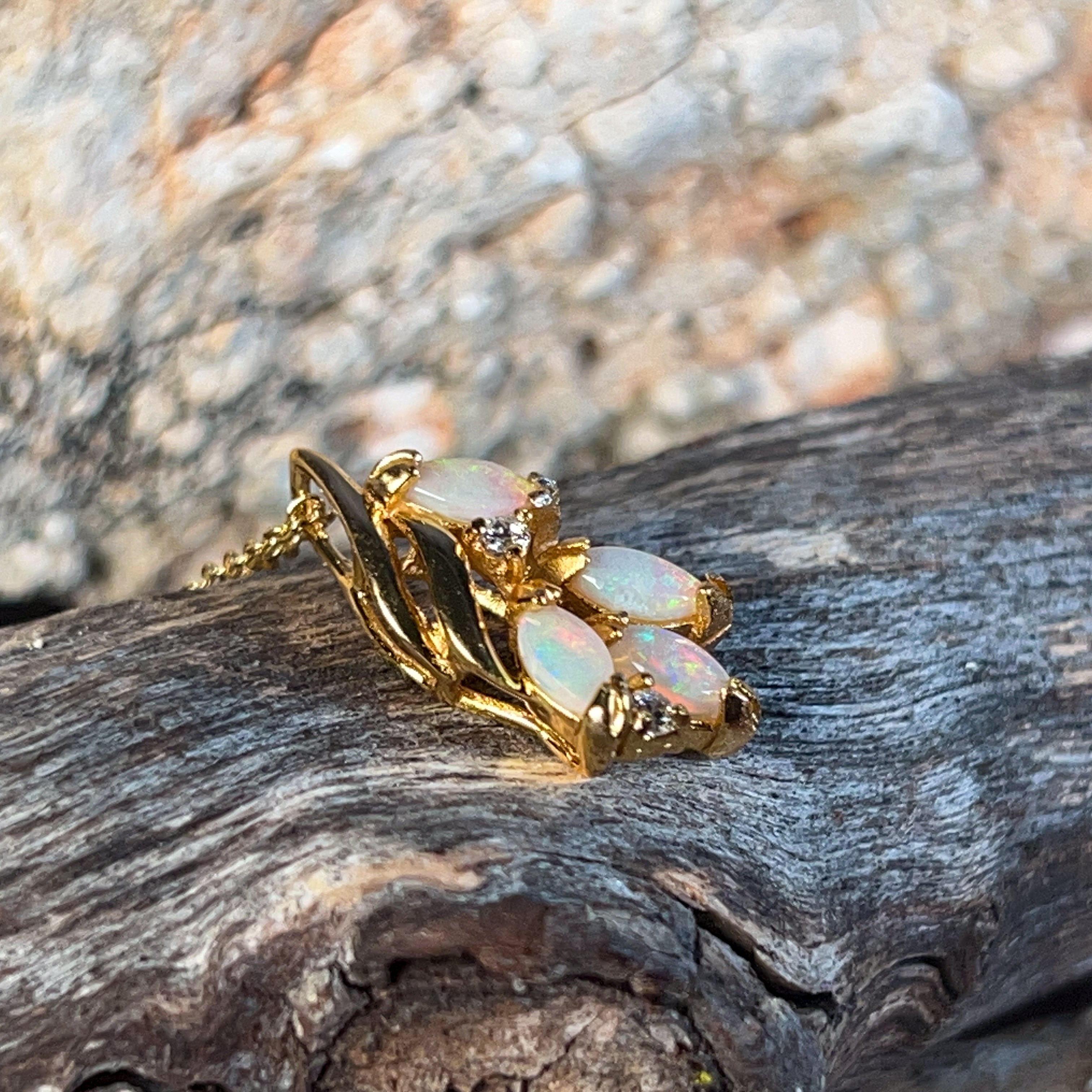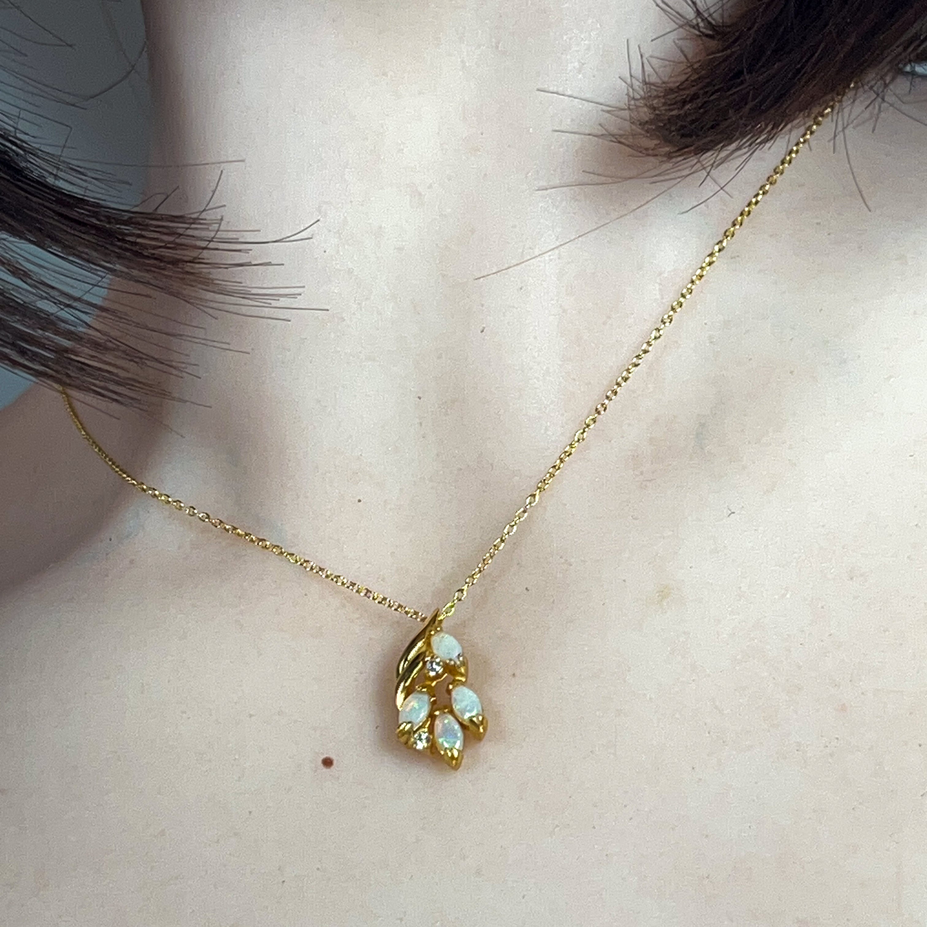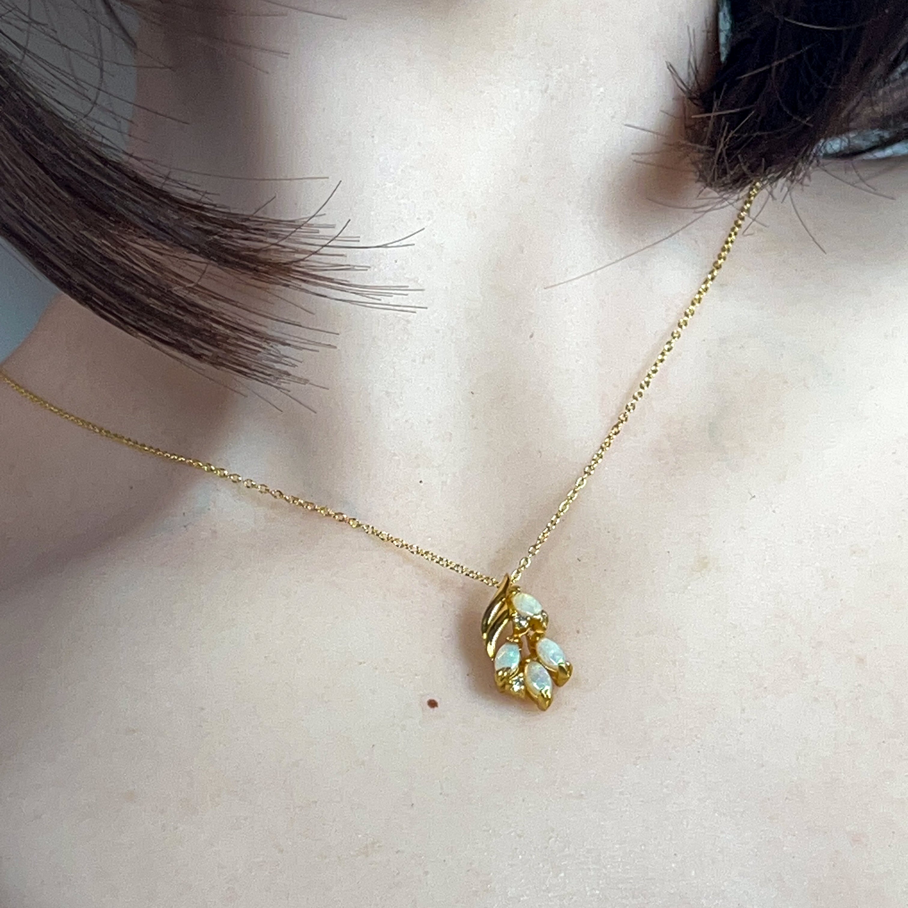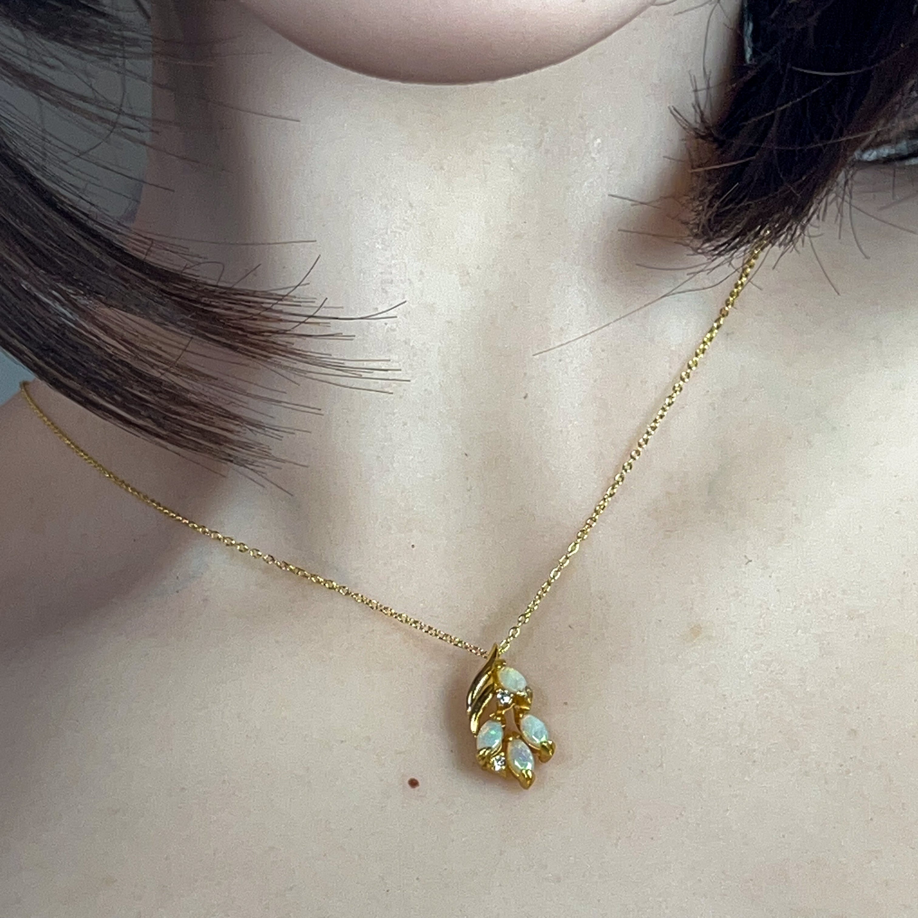 Ignite your style with this enchanting white opal pendant! Crafted from silver with luxe gold plating, this beauty features a striking marquise-cut opal (6x3mm) nestled within an intricate leaf design that dances around the stone like flickering flames. The organic leaf motif adds a touch of nature-inspired elegance, while the opal's milky glow brings that magical sparkle to any outfit. Perfect for opal lovers who want something a little different—playful, sophisticated, and utterly mesmerising.