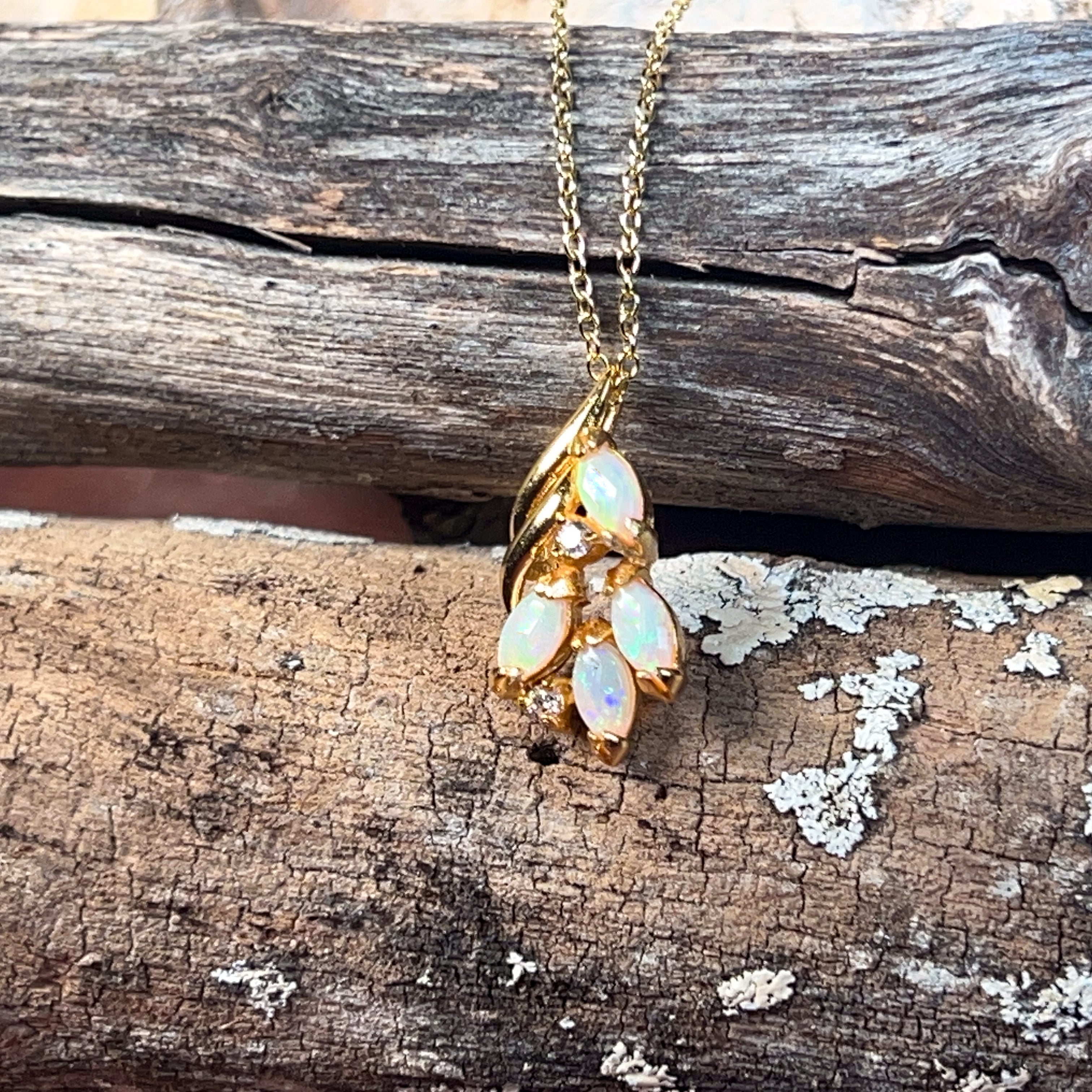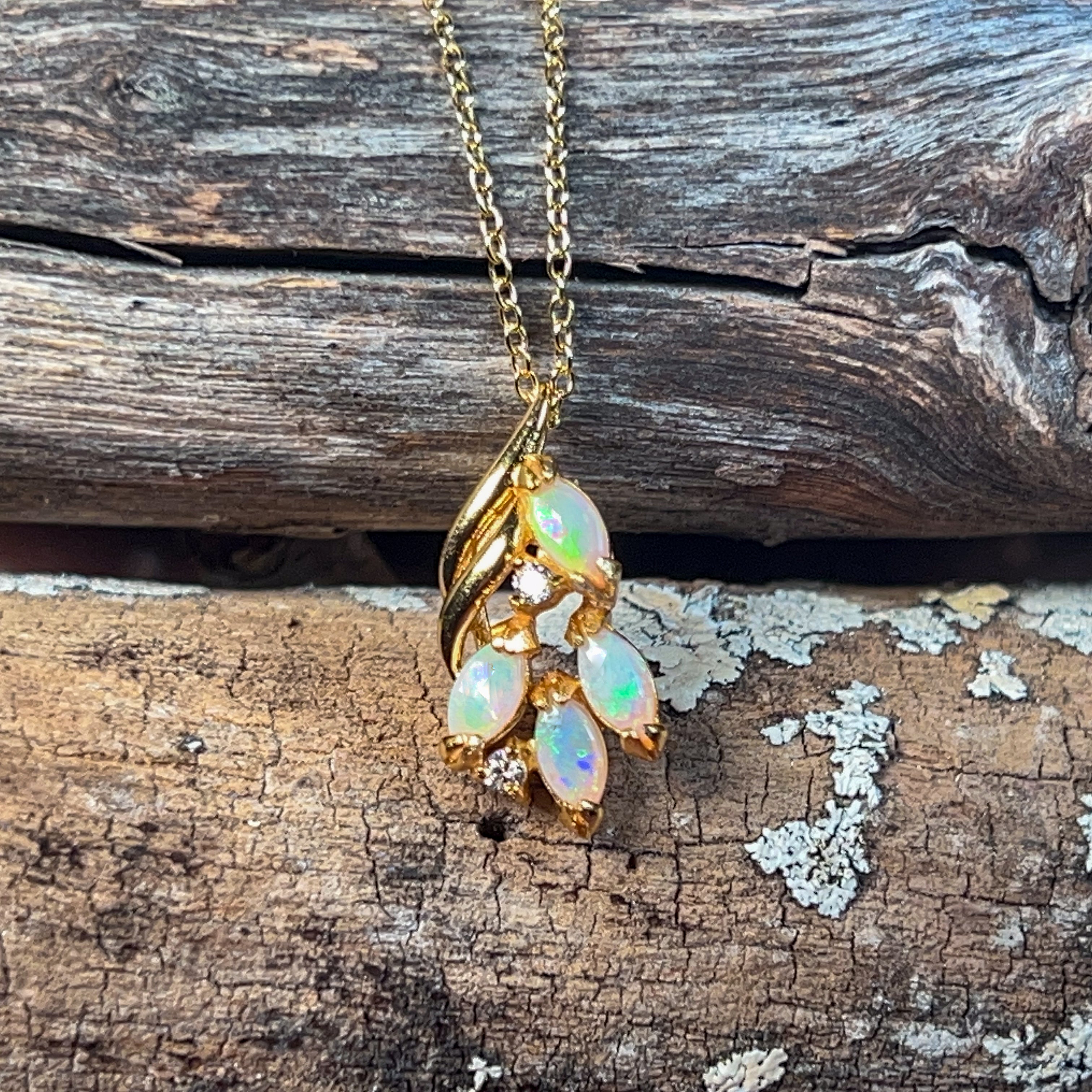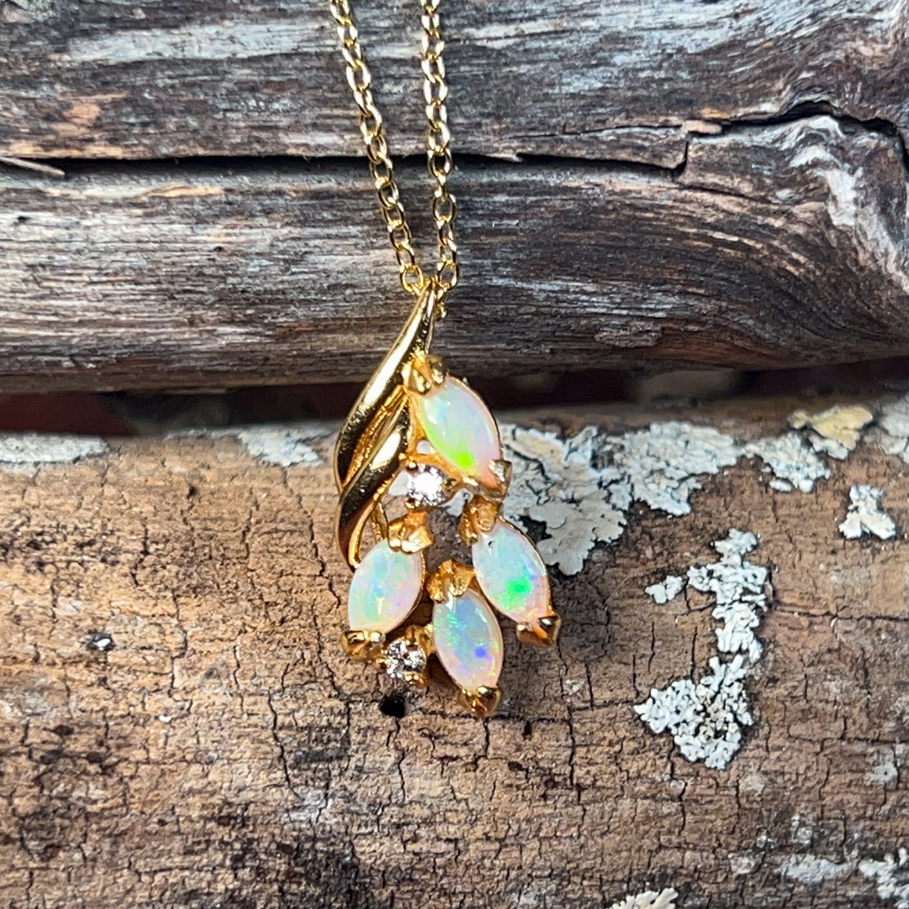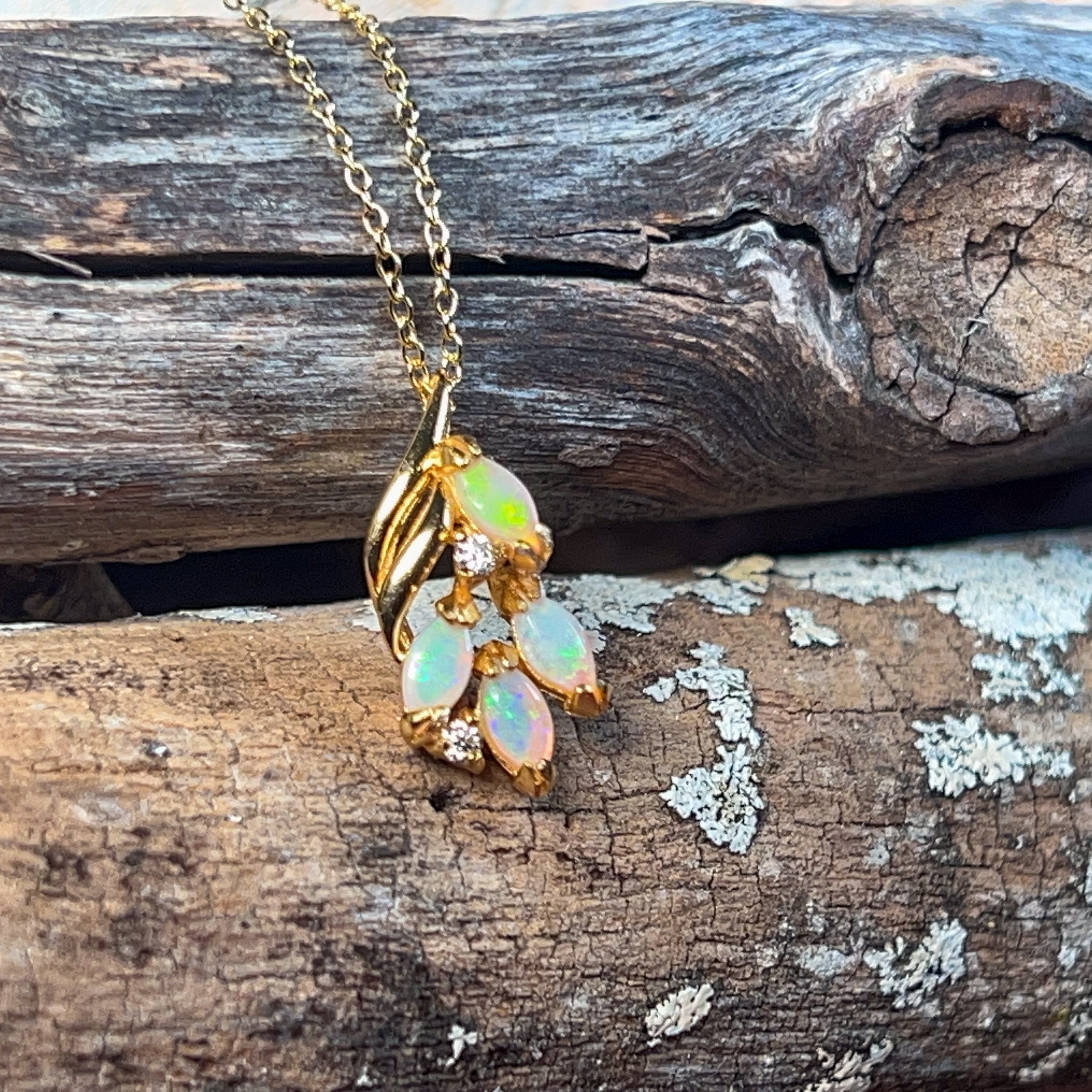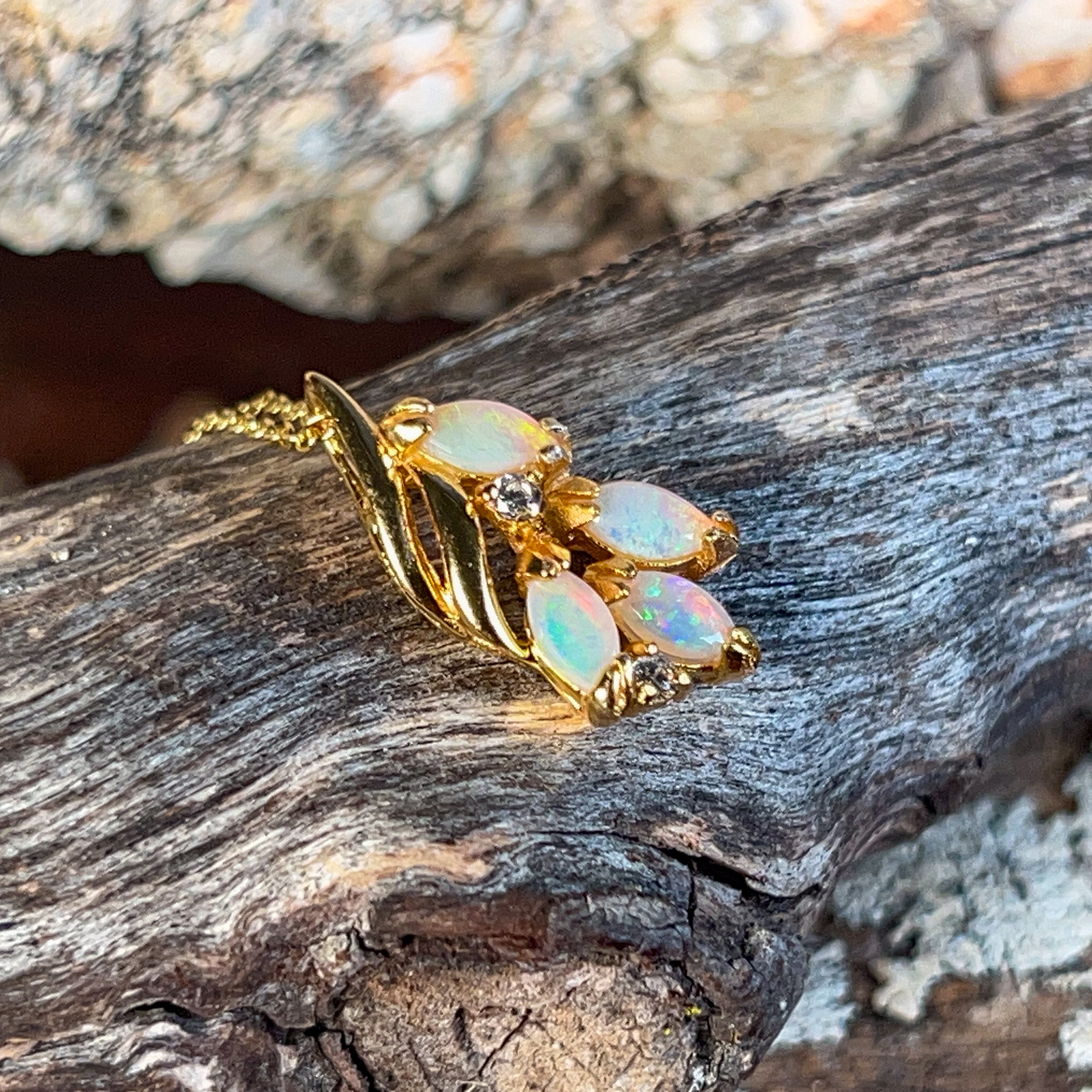 Ignite your style with this enchanting white opal pendant! Crafted from silver with luxe gold plating, this beauty features a striking marquise-cut opal (6x3mm) nestled within an intricate leaf design that dances around the stone like flickering flames. The organic leaf motif adds a touch of nature-inspired elegance, while the opal's milky glow brings that magical sparkle to any outfit. Perfect for opal lovers who want something a little different—playful, sophisticated, and utterly mesmerising.