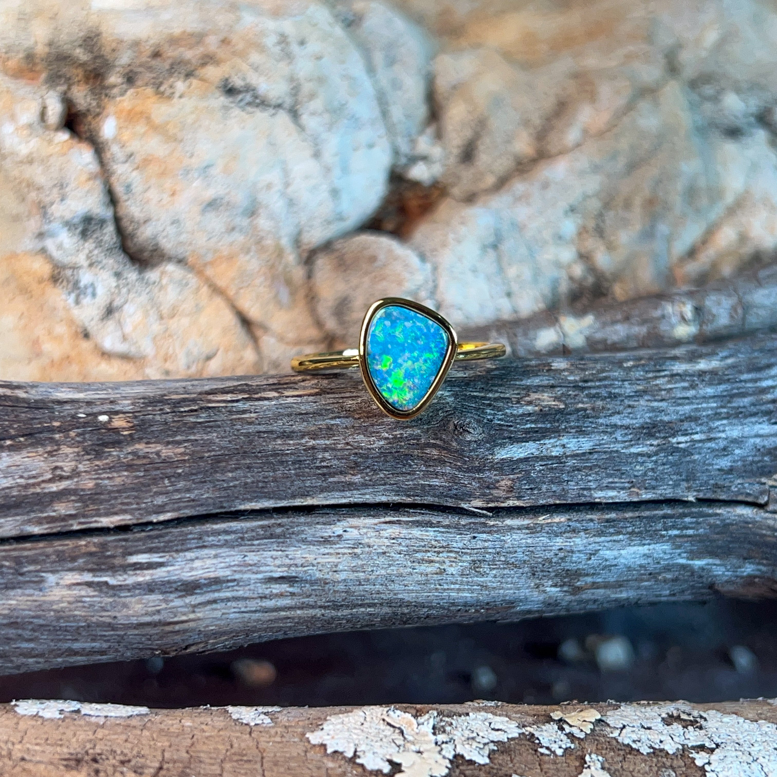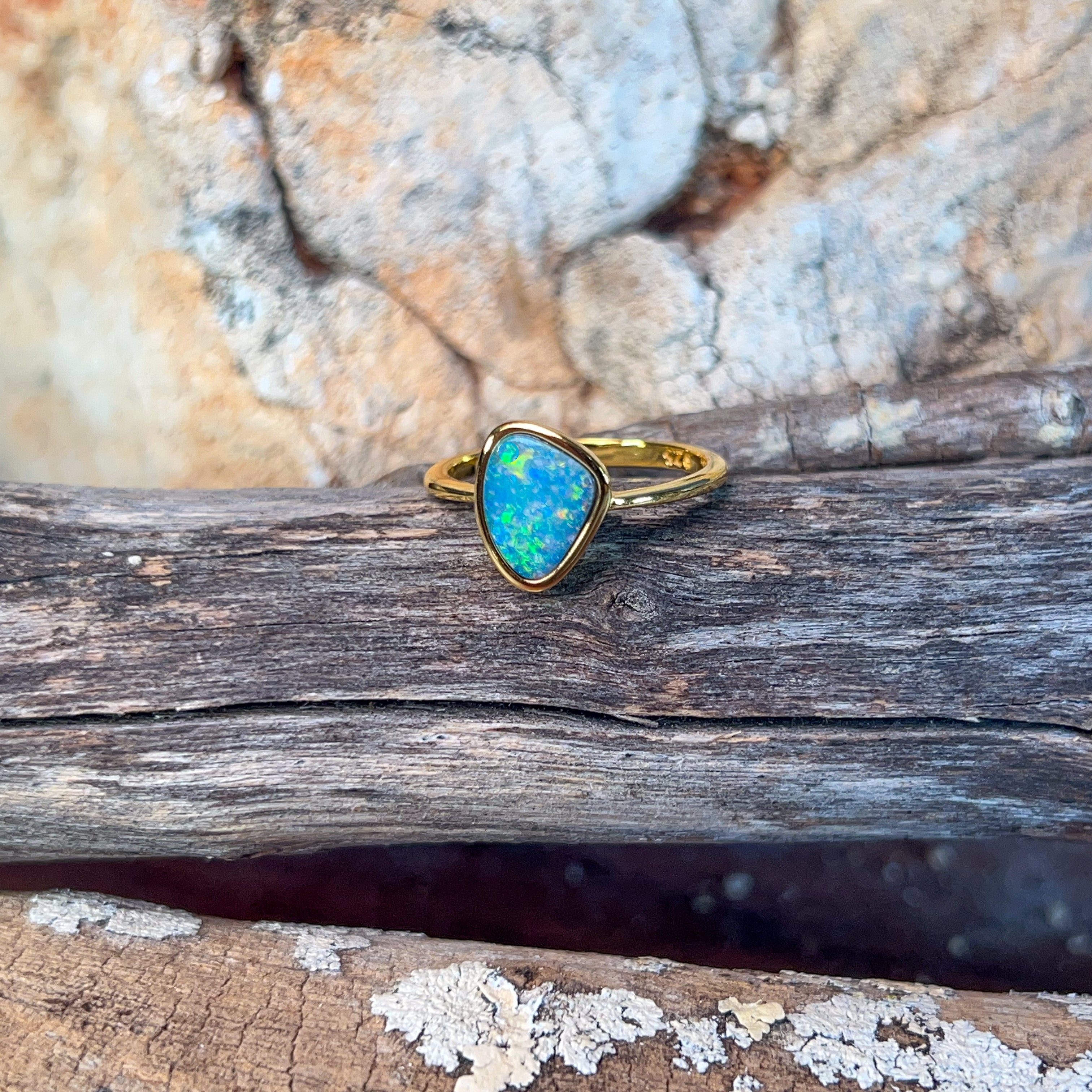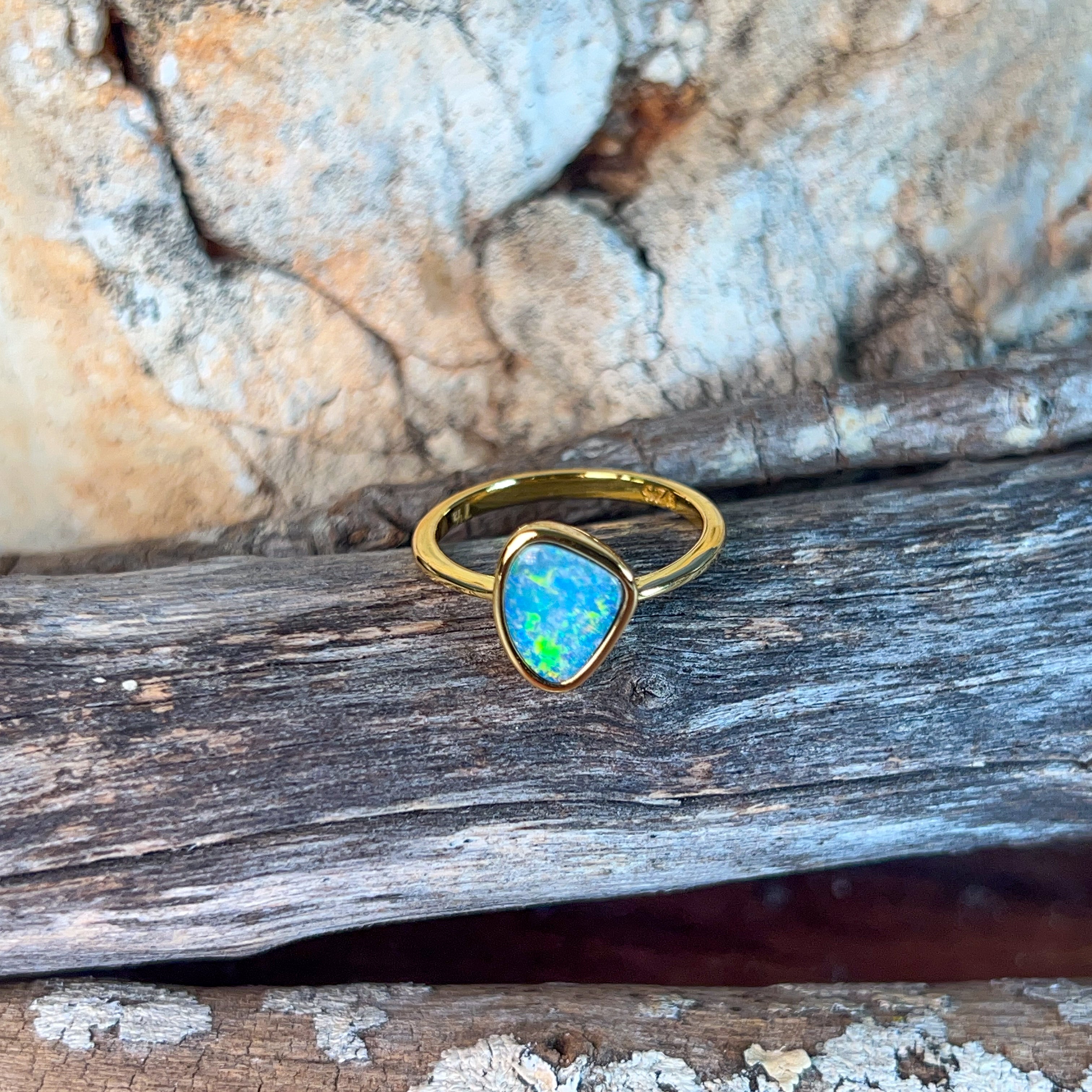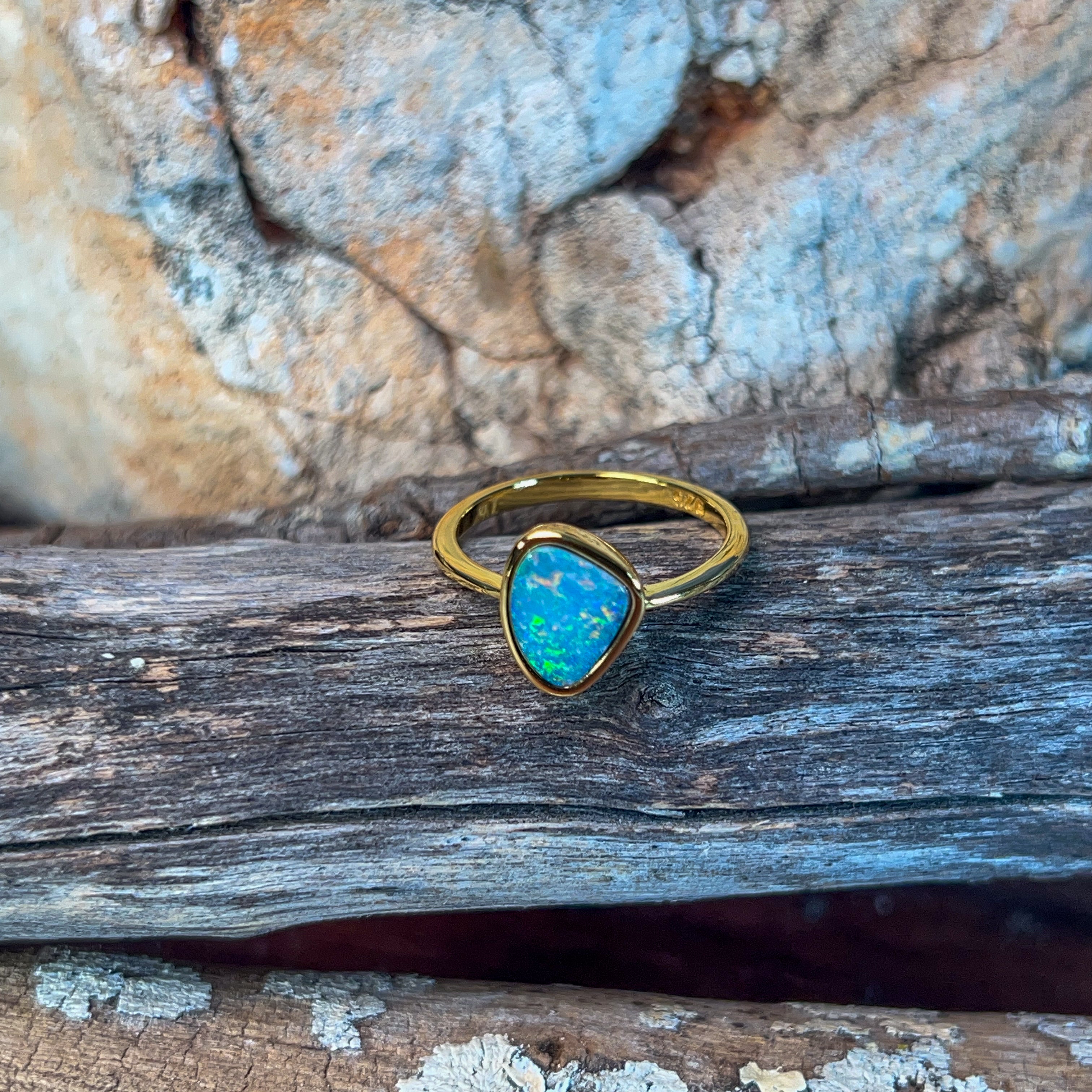 One Gold Plated Sterling Silver bezel set Opal ring