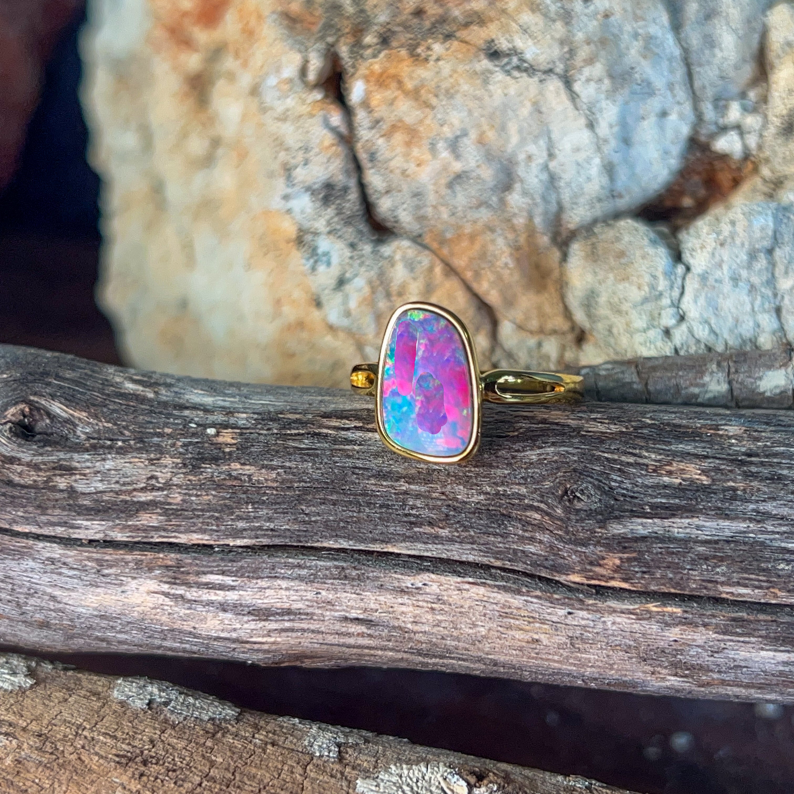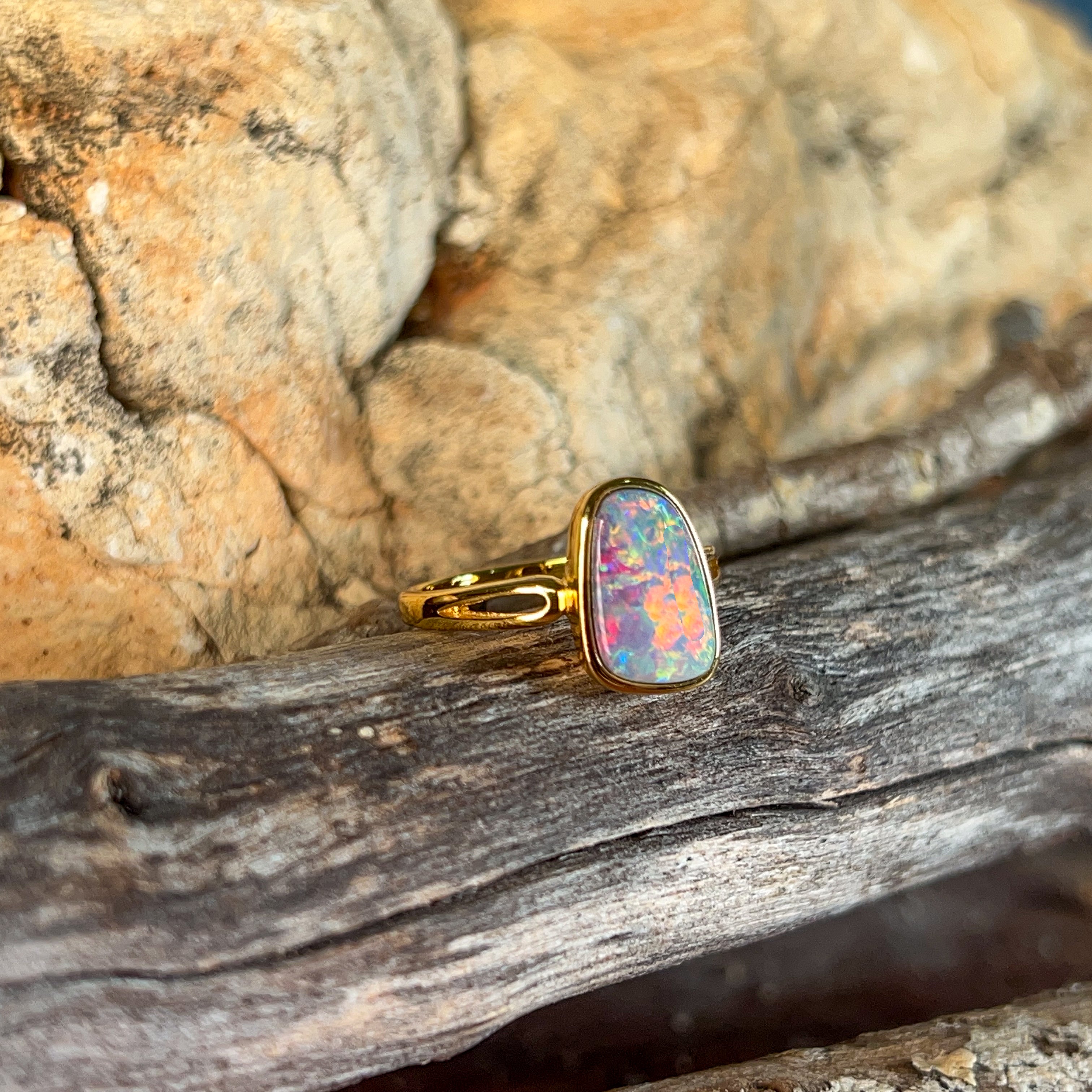 One Gold Plated Sterling Silver bezel set Opal ring