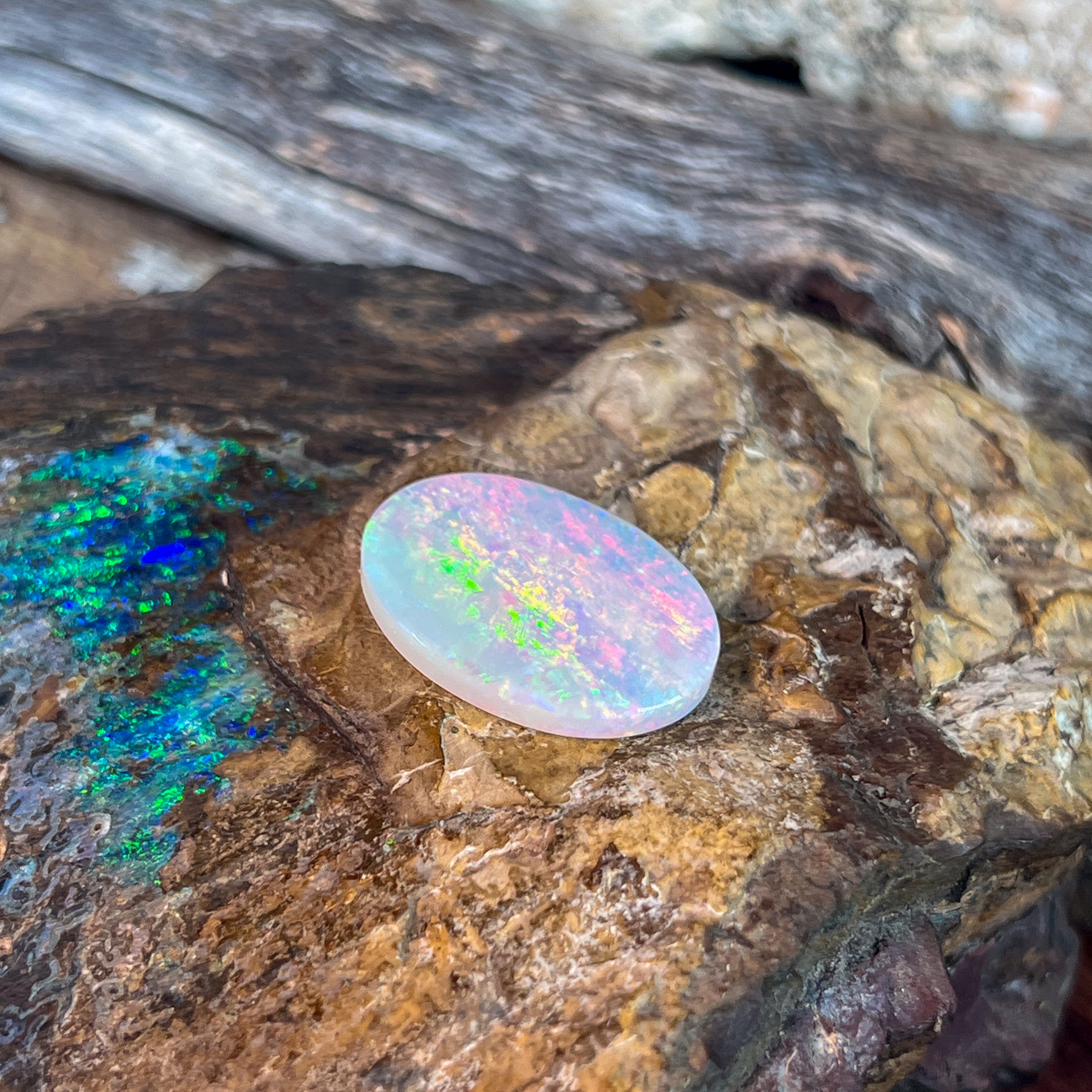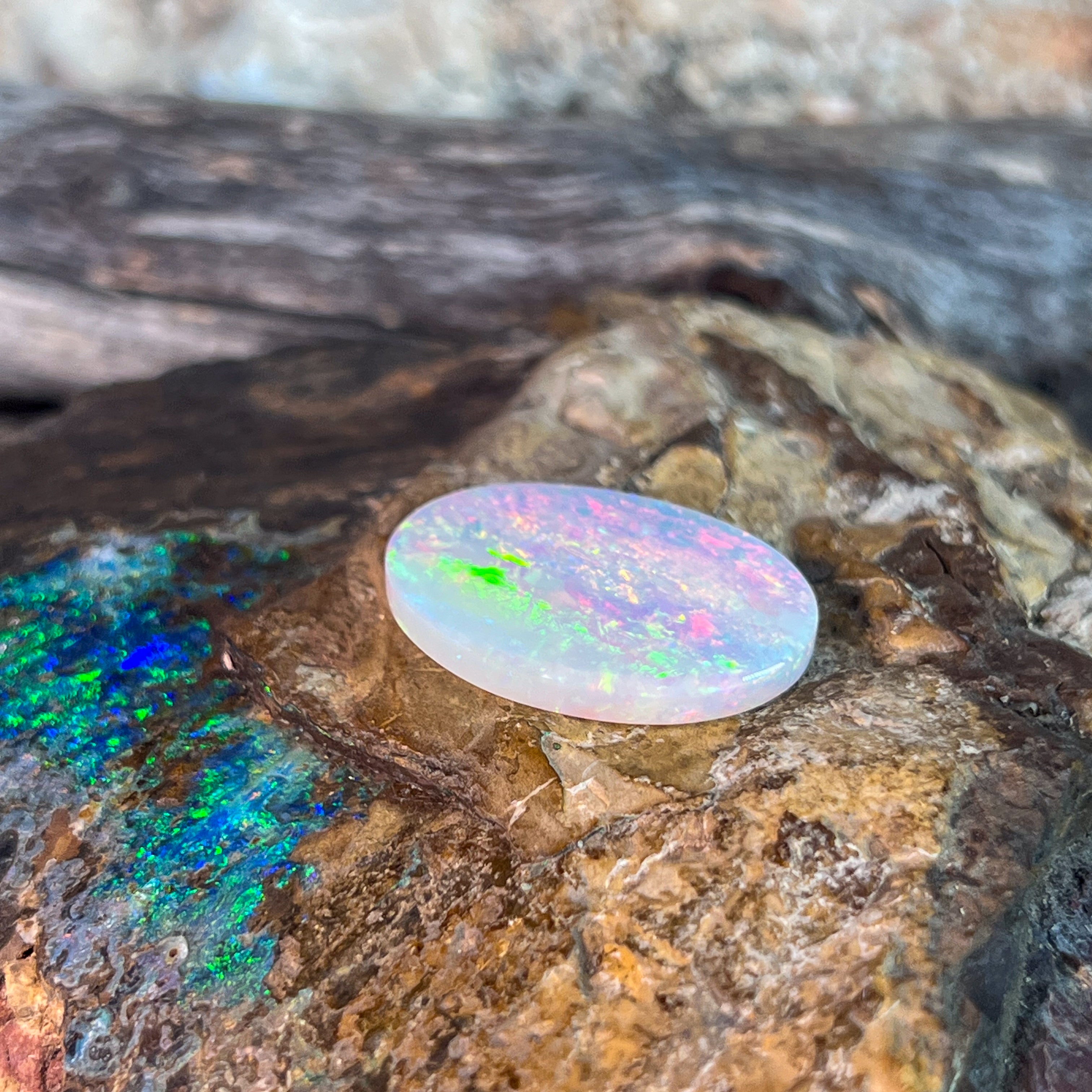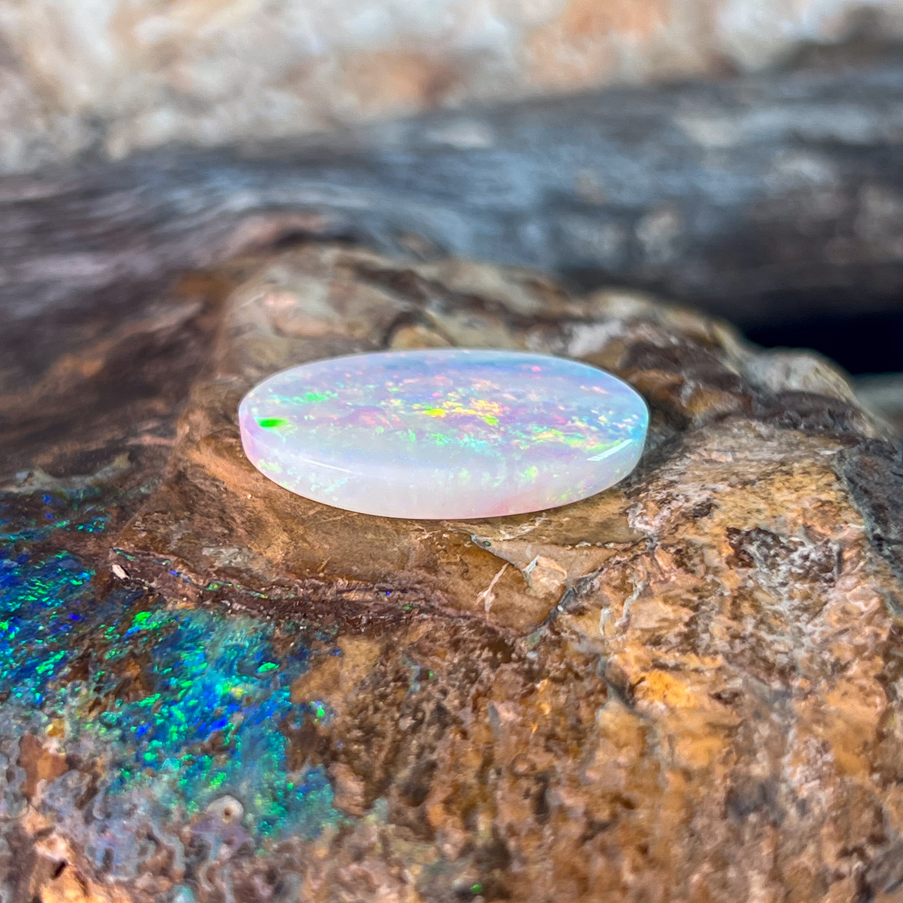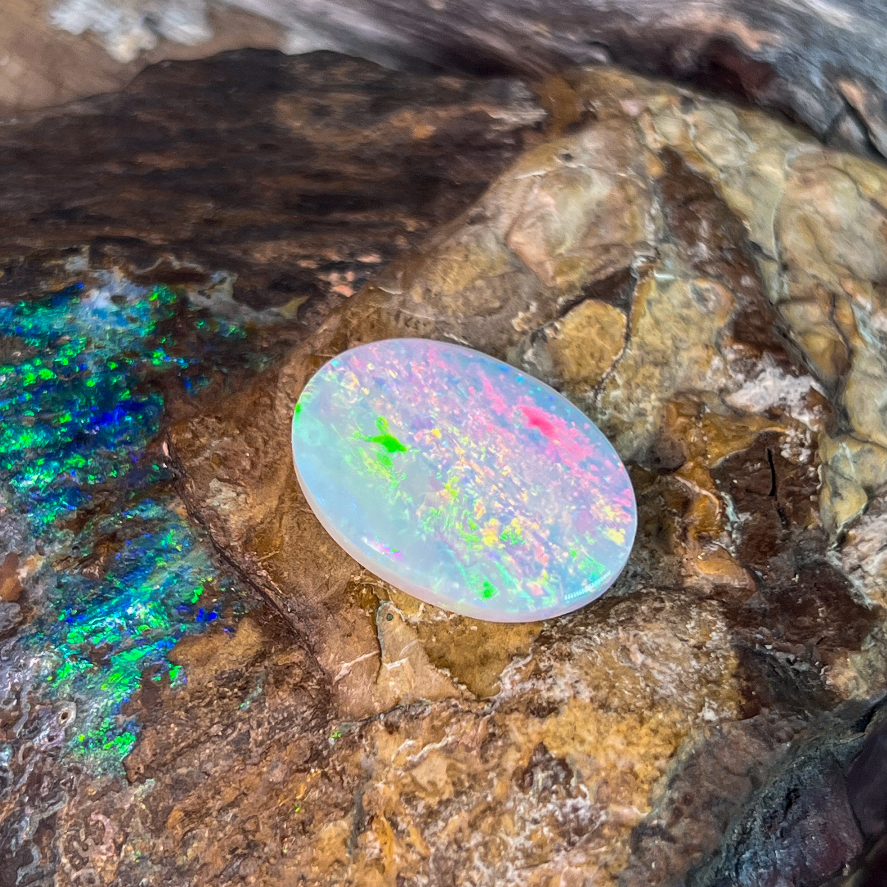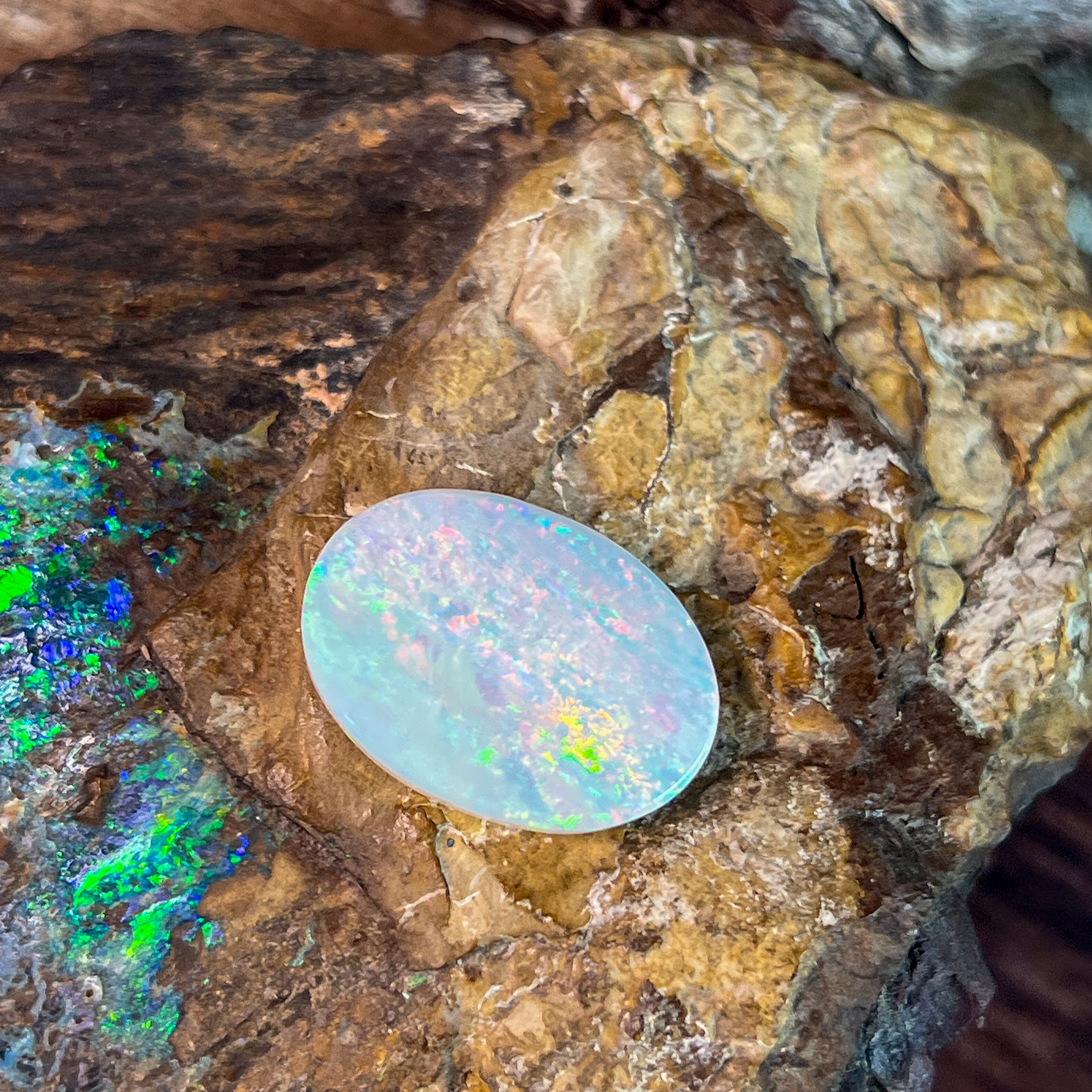 Discover the natural beauty of this 12ct loose oval white opal, sourced directly from Coober Pedy, Australia’s opal capital. This stunning gemstone, known for its delicate play of colors, offers you the perfect opportunity to design your own unique jewellery piece. Whether setting it in a ring, pendant, or earrings, this white opal’s organic charm will add a personal and elegant touch to your creation. Embrace the freedom to craft jewellery that truly reflects your style with this exceptional opal as your canvas.