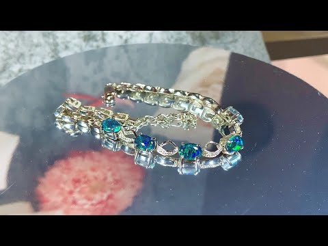 Opal Bracelet - Sterling Silver Bracelet for Women. Ladies Bracelets with 7x5mm Blue or Black Opal Triplets, Perfect Womens Bracelet and Silver Jewellery for Women.