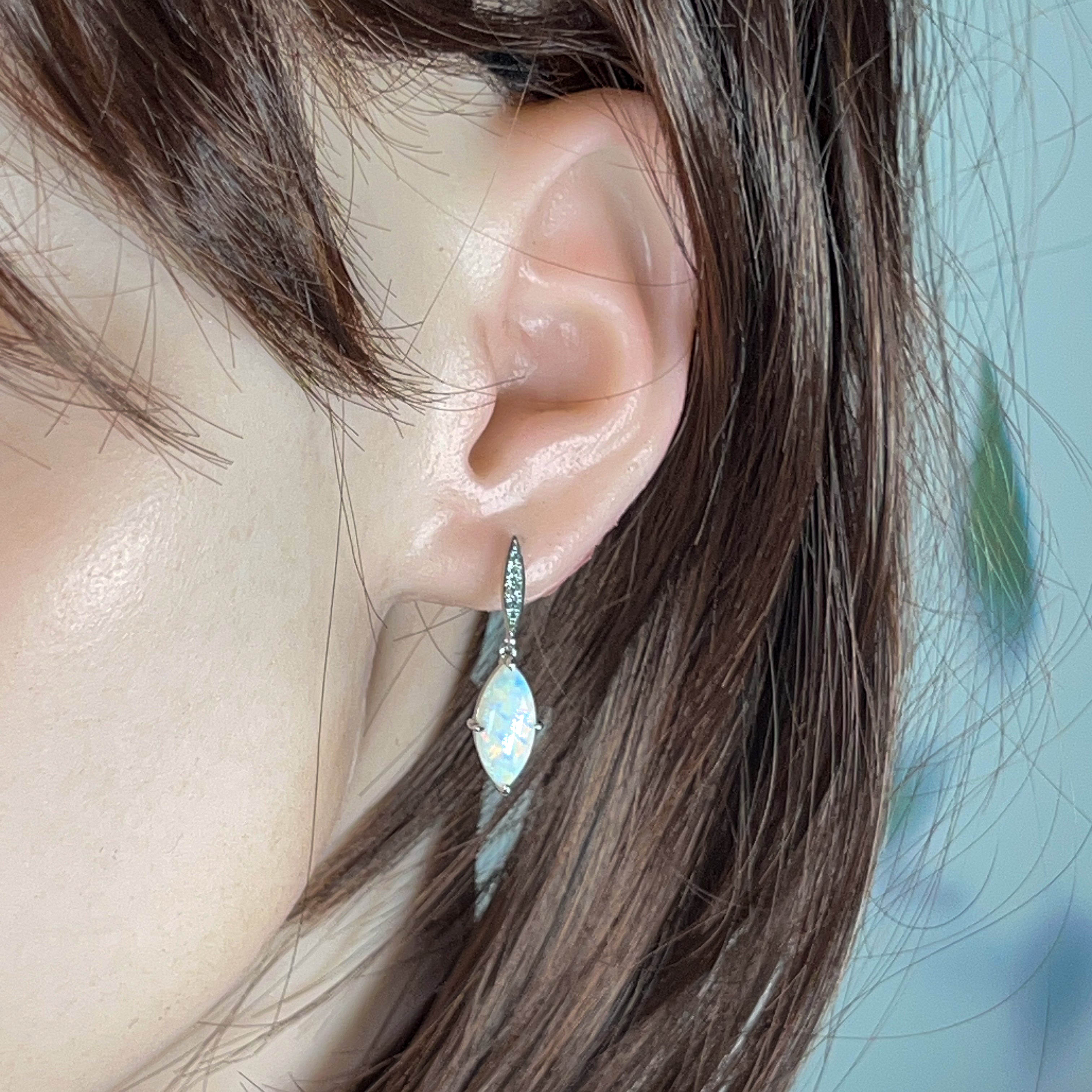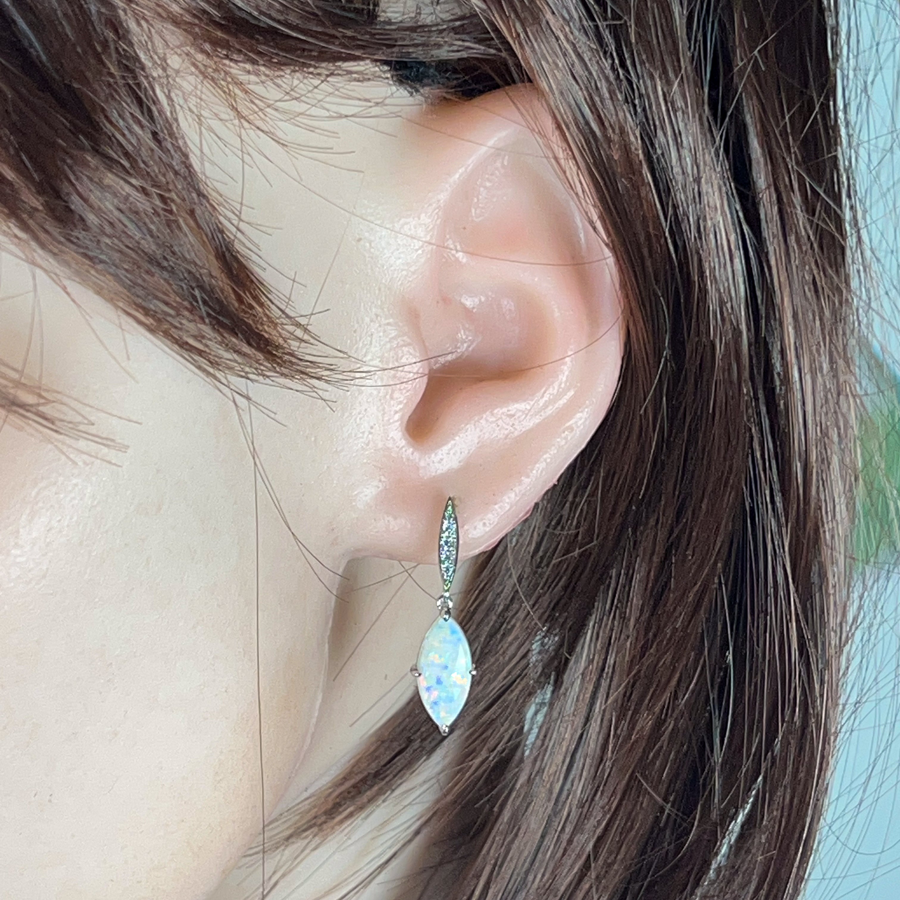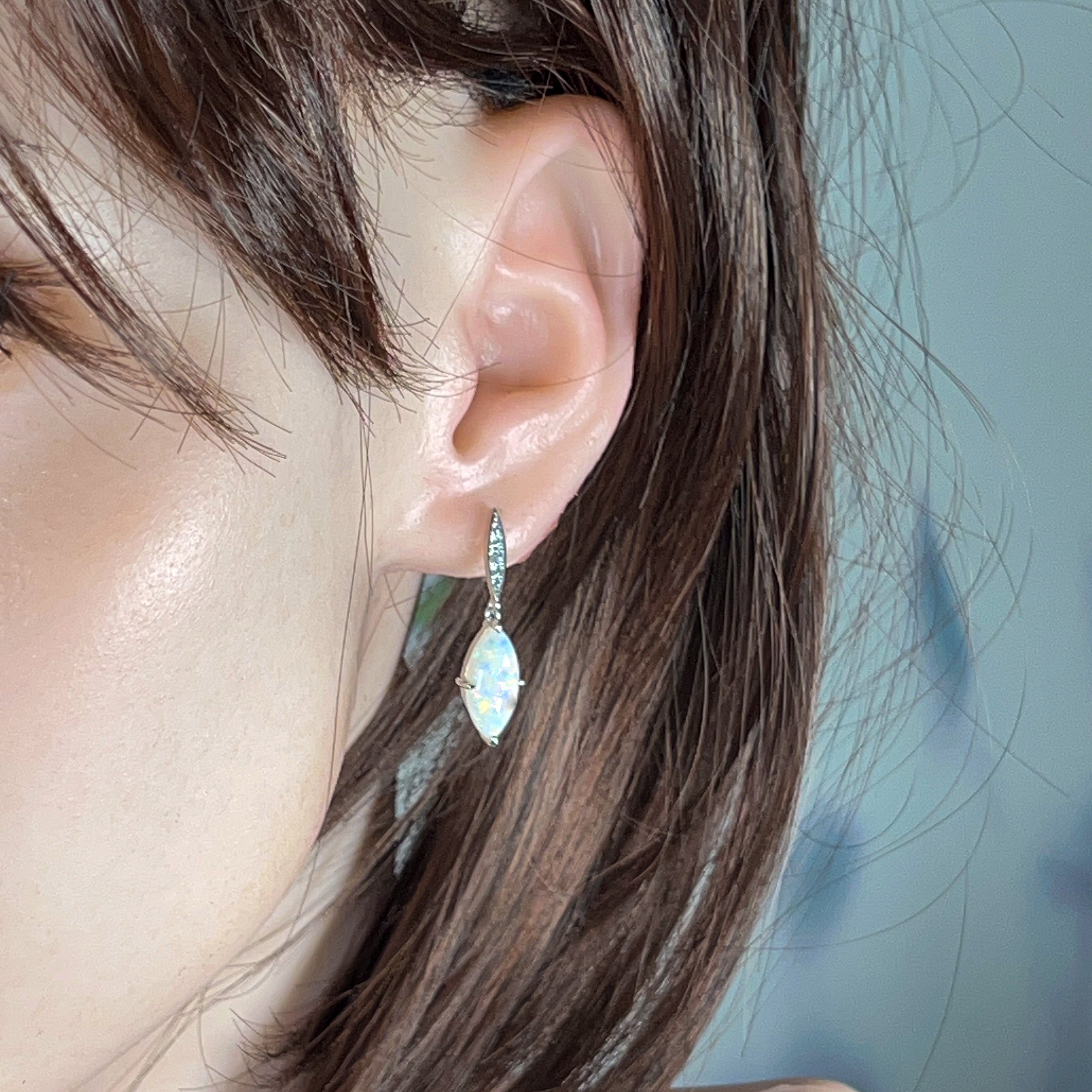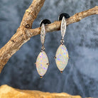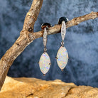 Elevate your evening look with these stunning platinum dangle earrings that catch the light from every angle. Featuring mesmerizing 3.39ct marquise-cut opals paired with sparkling diamonds, they're the perfect finishing touch for any special occasion. The graceful drop design adds movement and elegance, while the precious metal setting ensures lasting brilliance. Whether you're heading to a gala or a night out, these beauties will have you feeling like the star of the show.