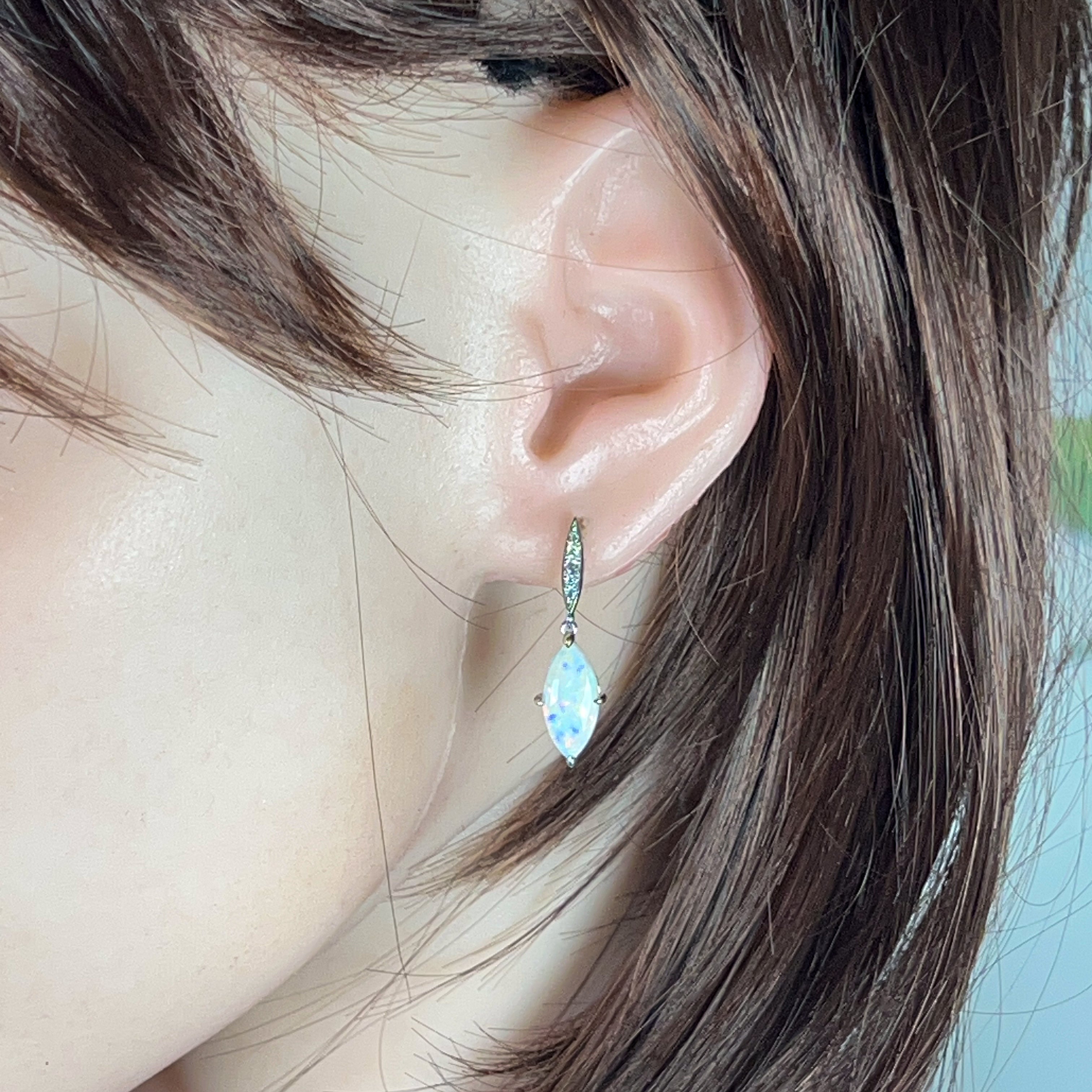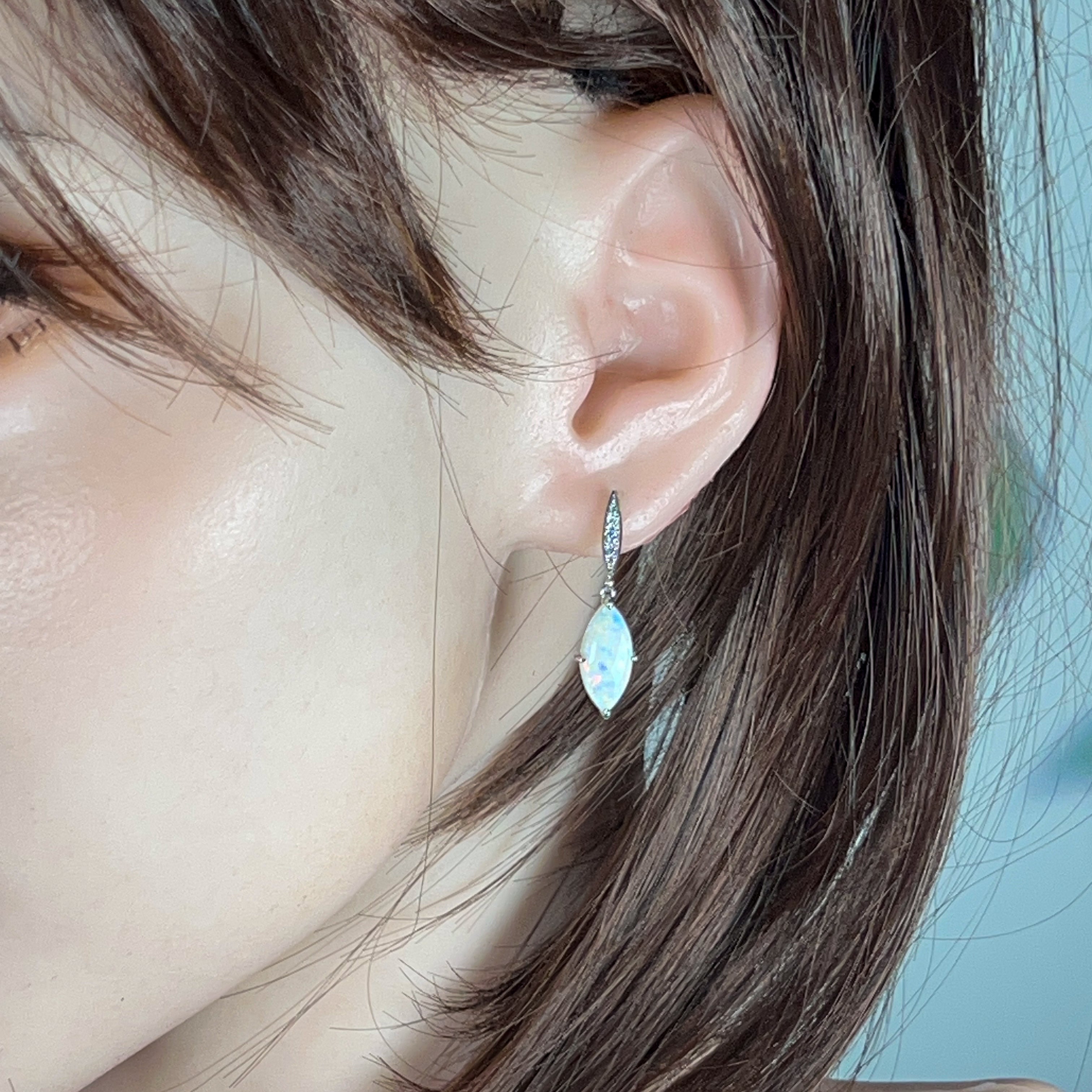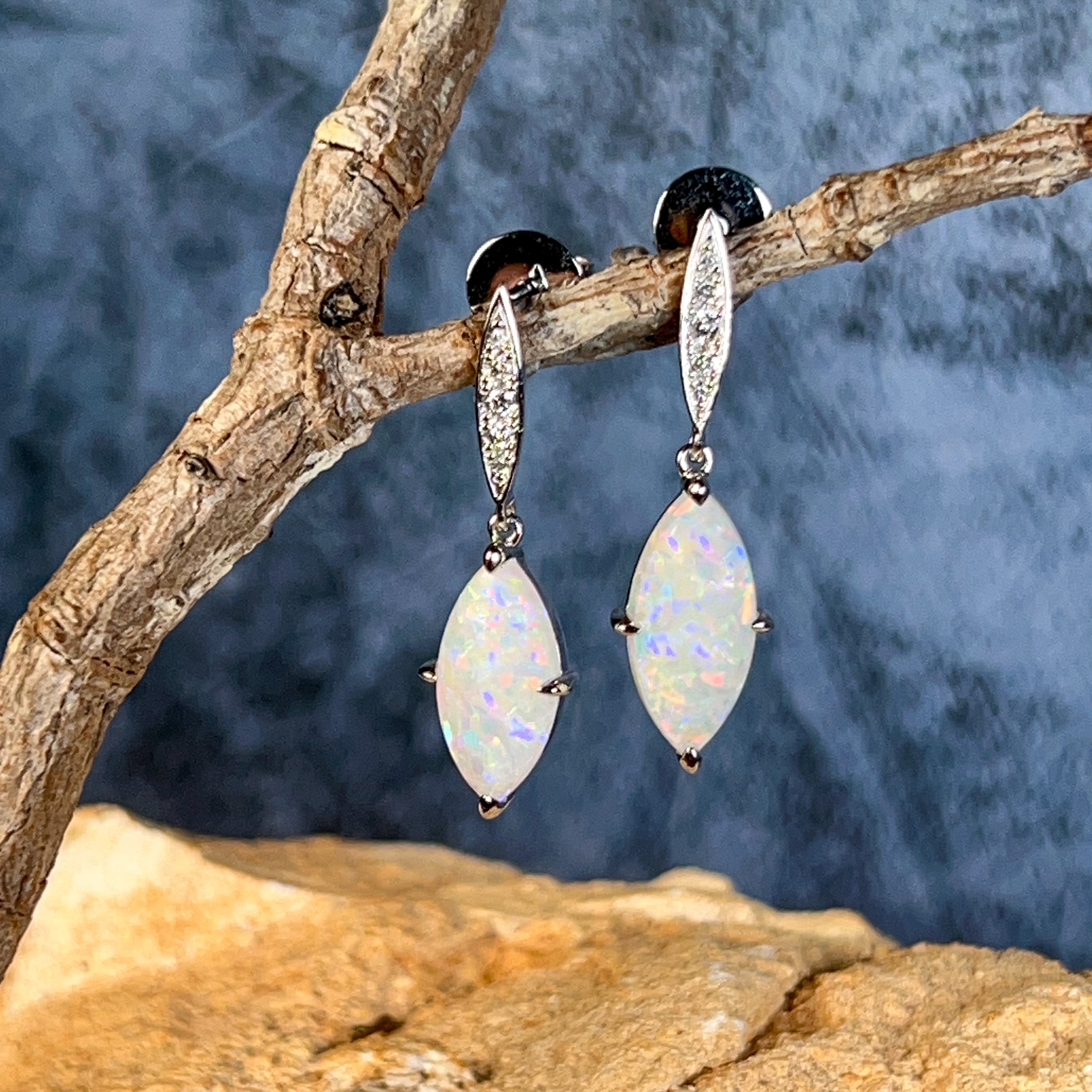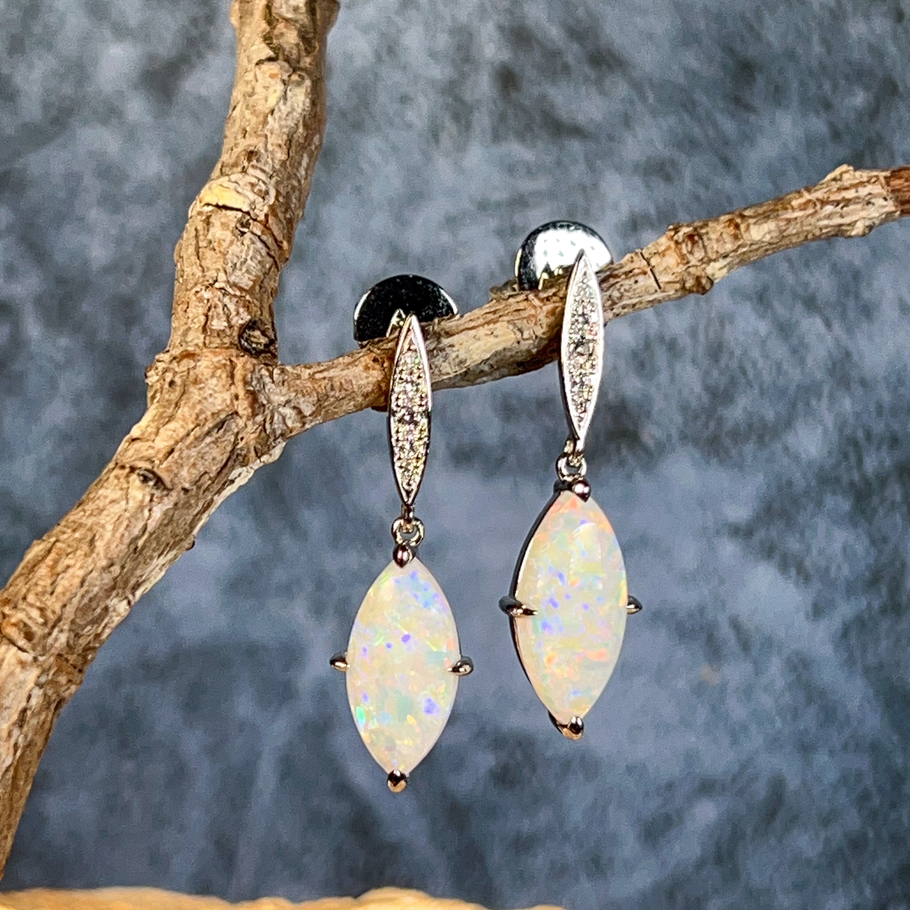 Elevate your evening look with these stunning platinum dangle earrings that catch the light from every angle. Featuring mesmerizing 3.39ct marquise-cut opals paired with sparkling diamonds, they're the perfect finishing touch for any special occasion. The graceful drop design adds movement and elegance, while the precious metal setting ensures lasting brilliance. Whether you're heading to a gala or a night out, these beauties will have you feeling like the star of the show.
