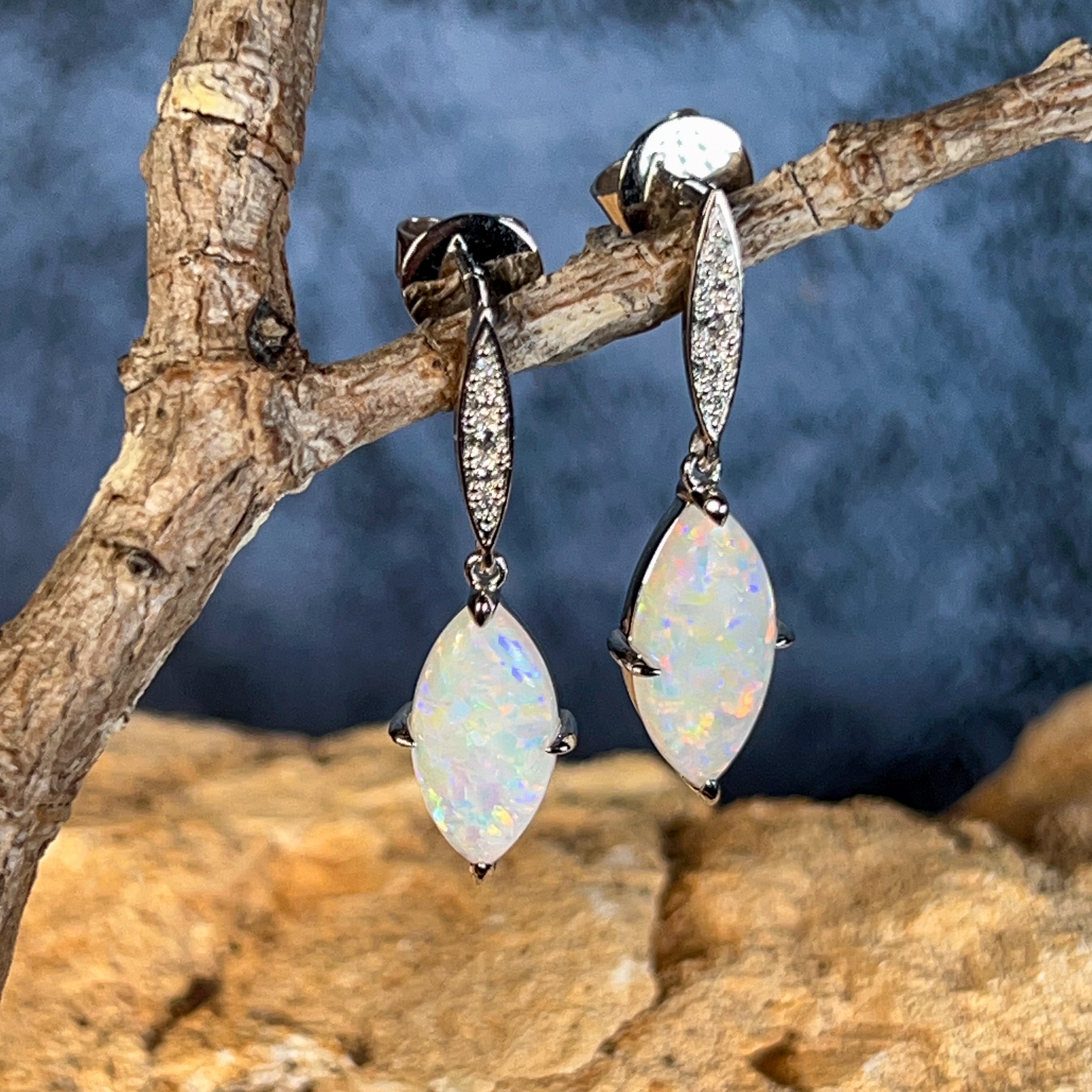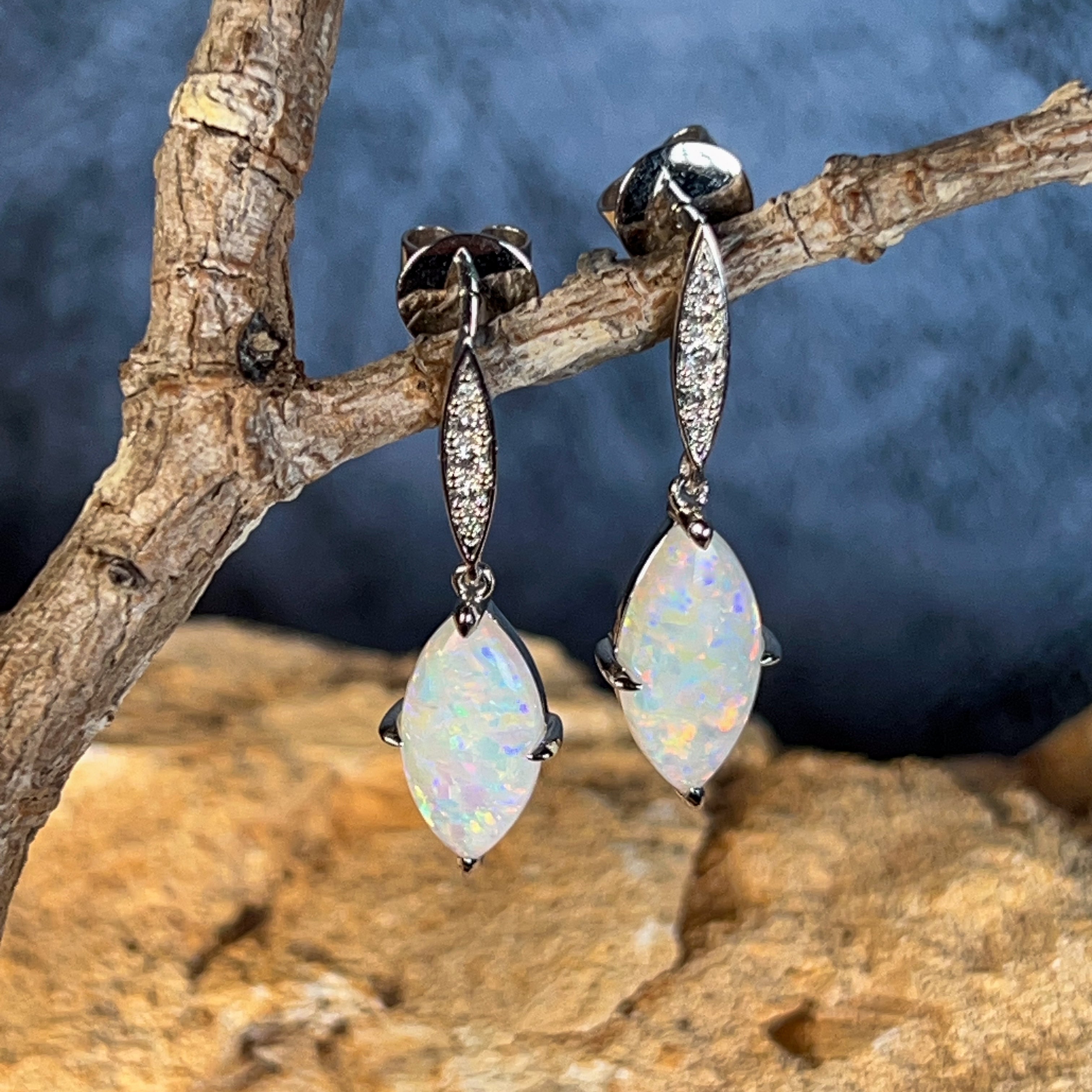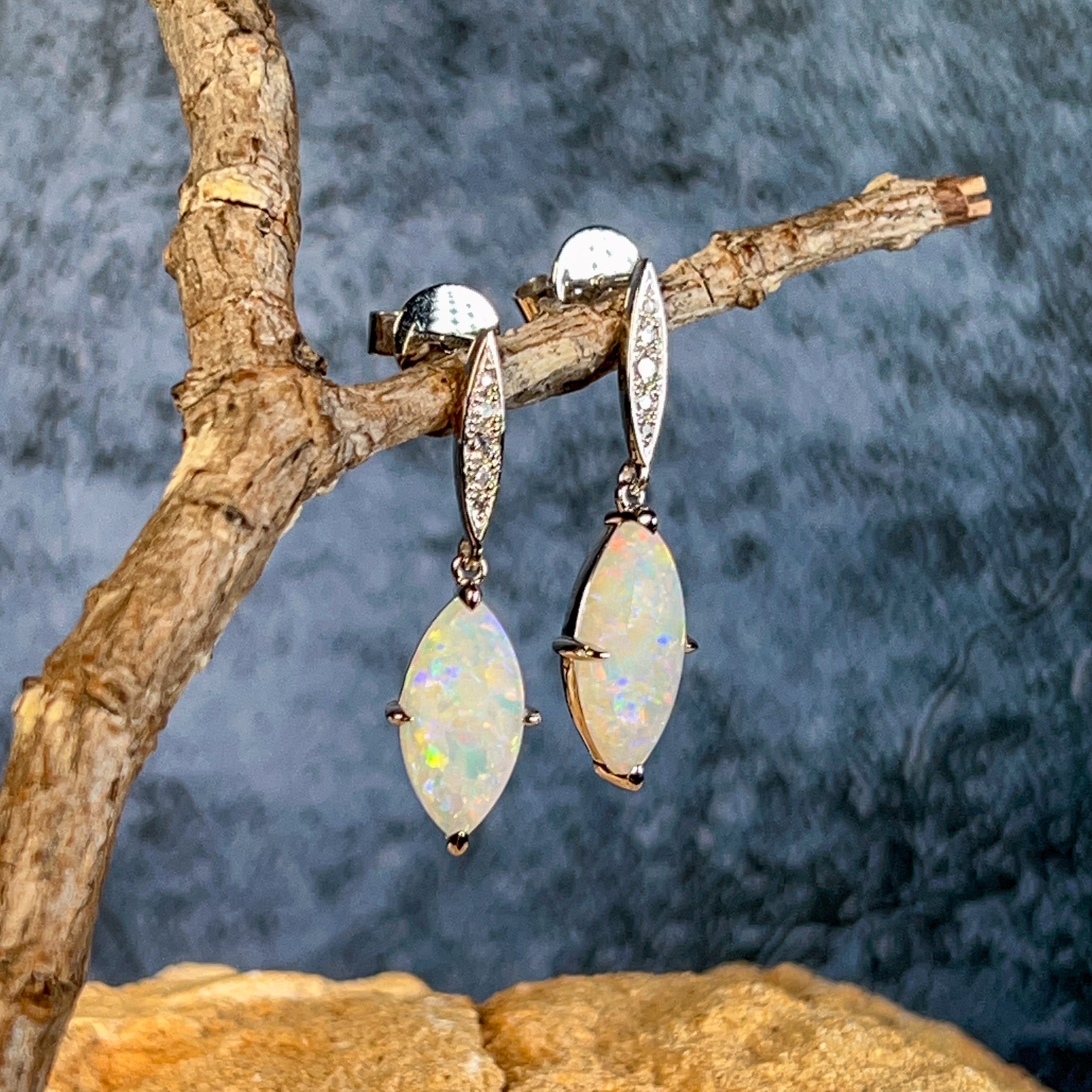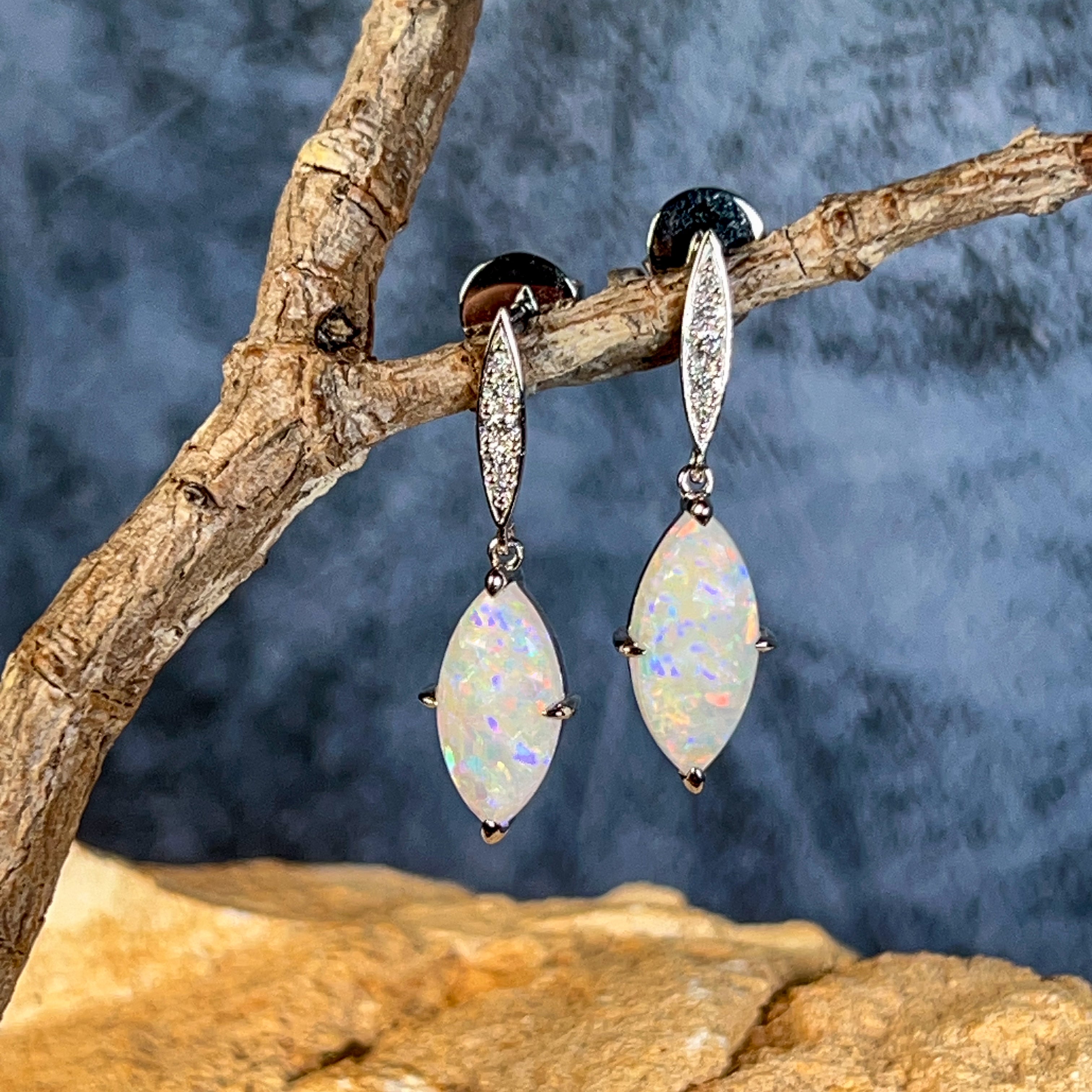 Platinum dangle earrings with Marquise shape 3.39ct Opals and diamonds