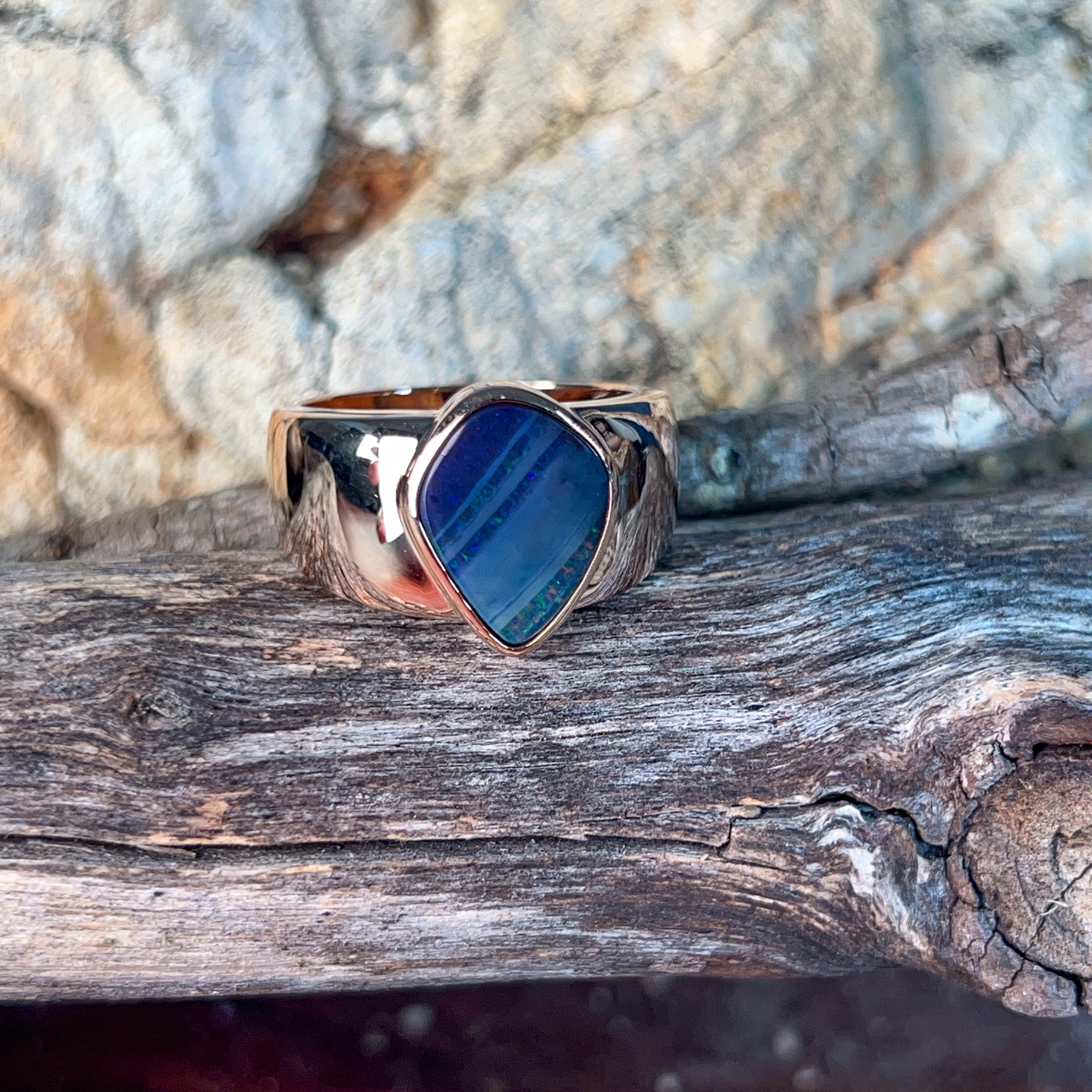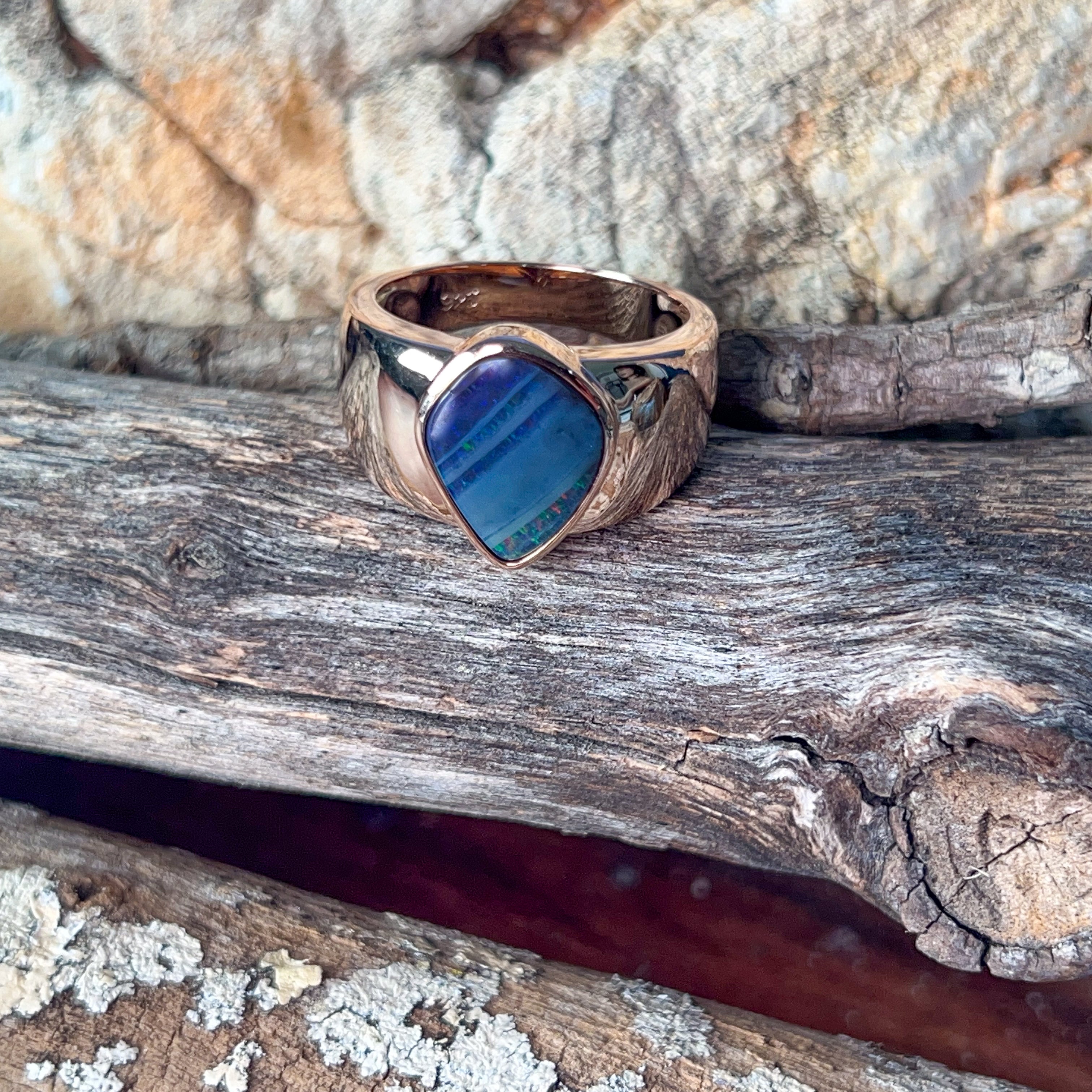 Rose Gold plated Sterling Silver Boulder Opal 4.6ct ring