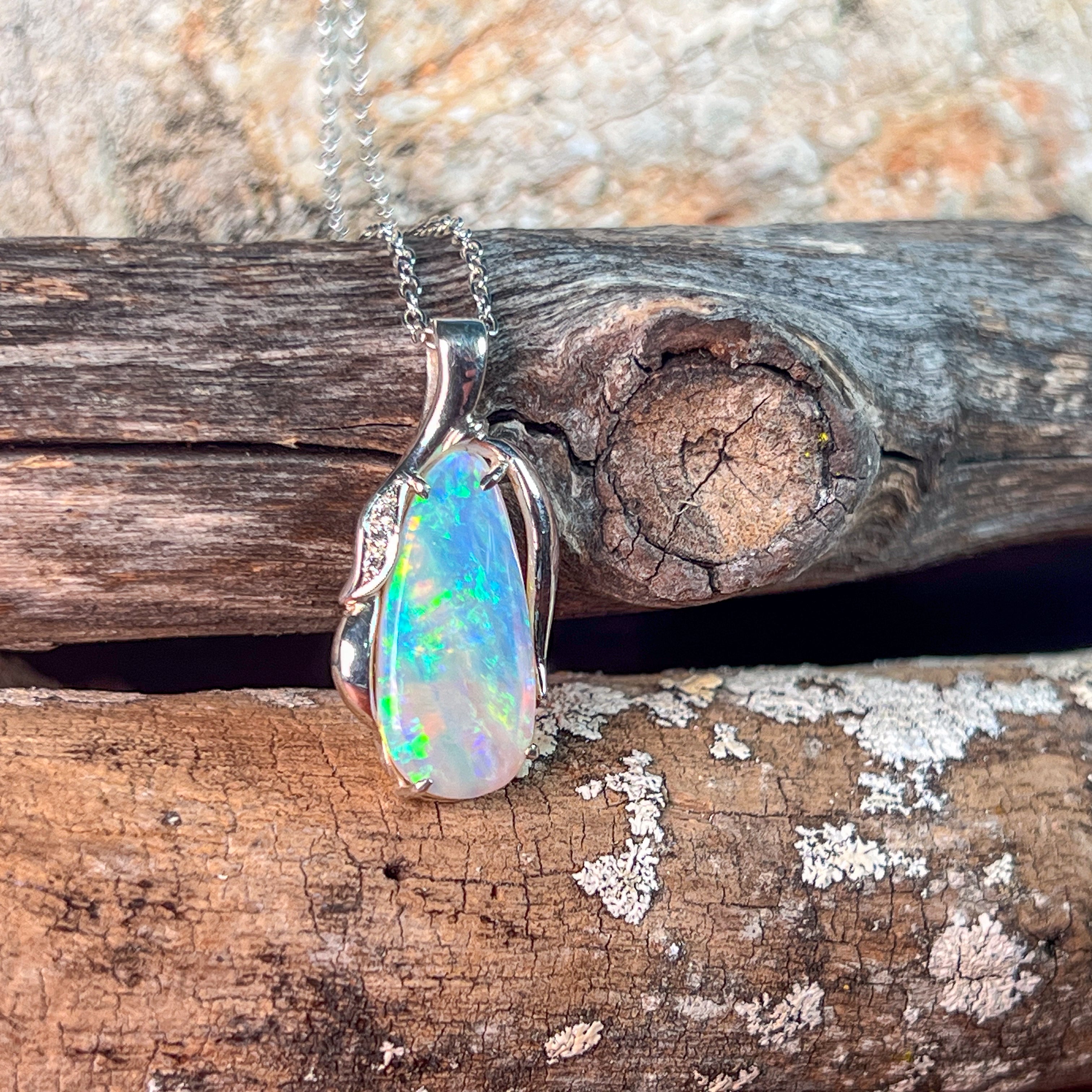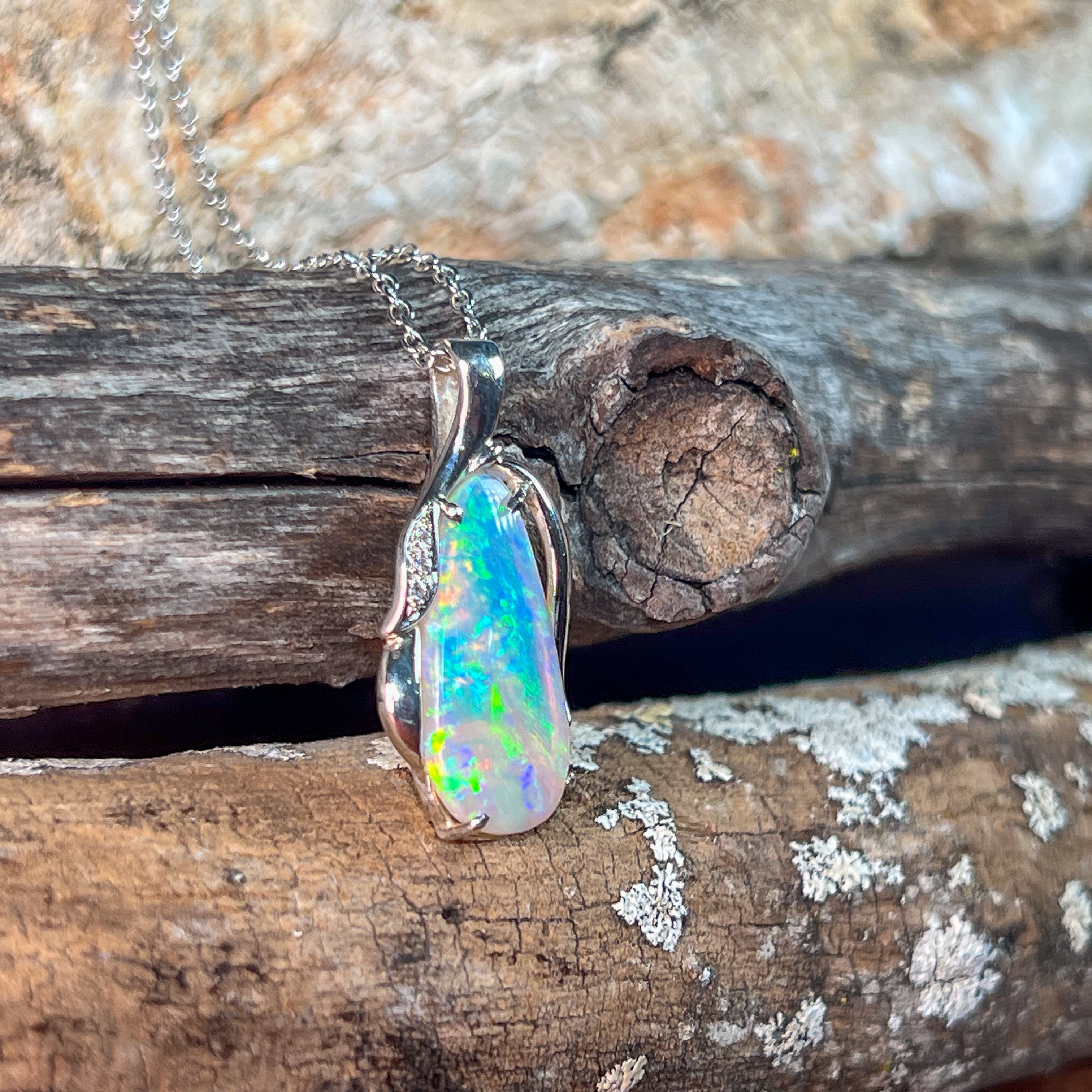 Make a bold statement with this Sterling Silver pendant featuring a dazzling 7.1ct crystal opal sourced directly from the opal capital, Coober Pedy. Its fiery flashes capture the untamed beauty of the Australian outback, perfect for those who dare to shine with unique, natural elegance. Elevate your style and own a piece that commands attention wherever you go.