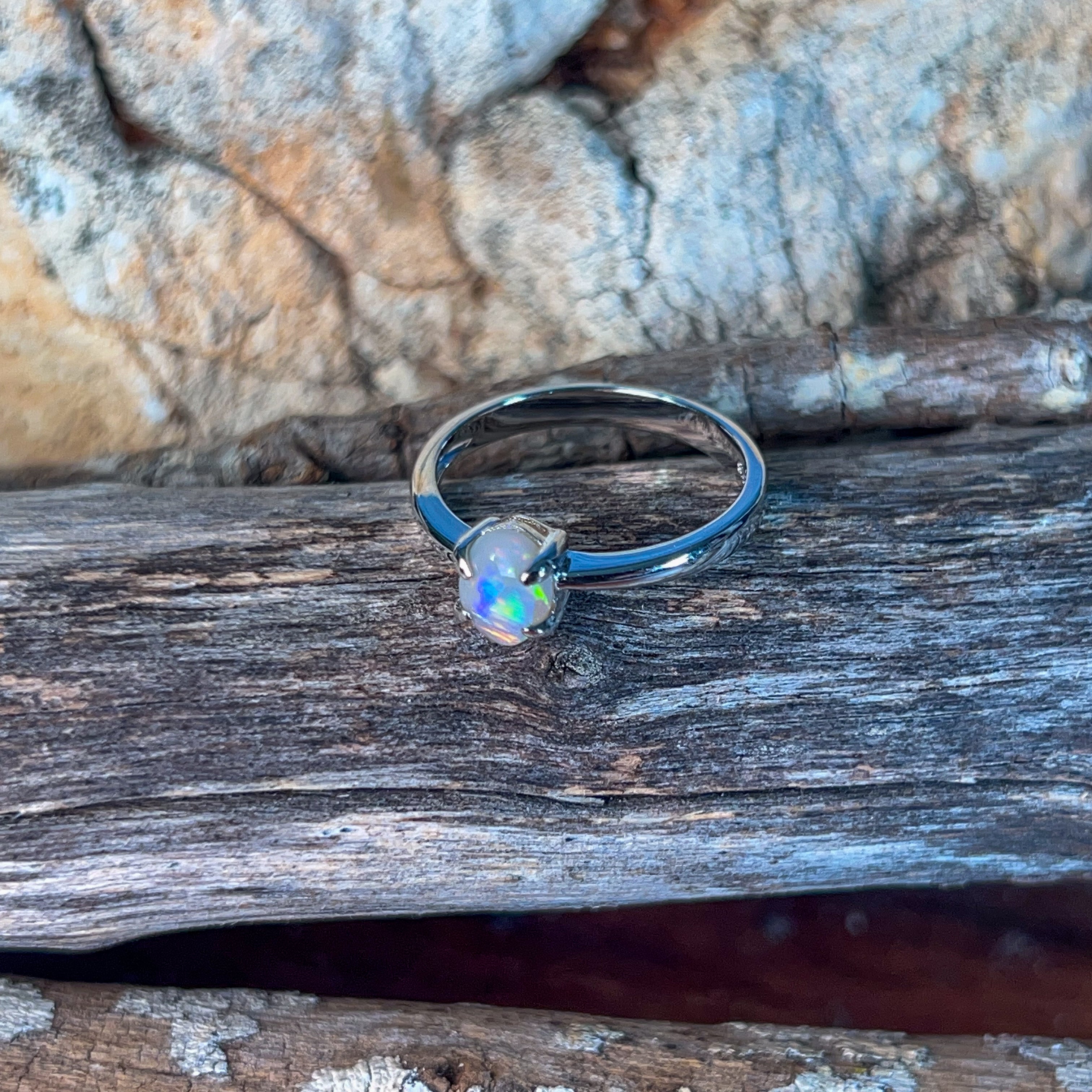 Elevate your everyday elegance with this exquisite sterling silver solitaire ring, showcasing a stunning 0.55ct black opal at its heart. The delicate design lets the opal's mesmerizing play-of-colour take centre stage, while the refined silver setting ensures timeless sophistication. Perfect for those who appreciate understated luxury, this dainty piece transitions effortlessly from day to night, making it an investment in refined style that you'll treasure for years to come.