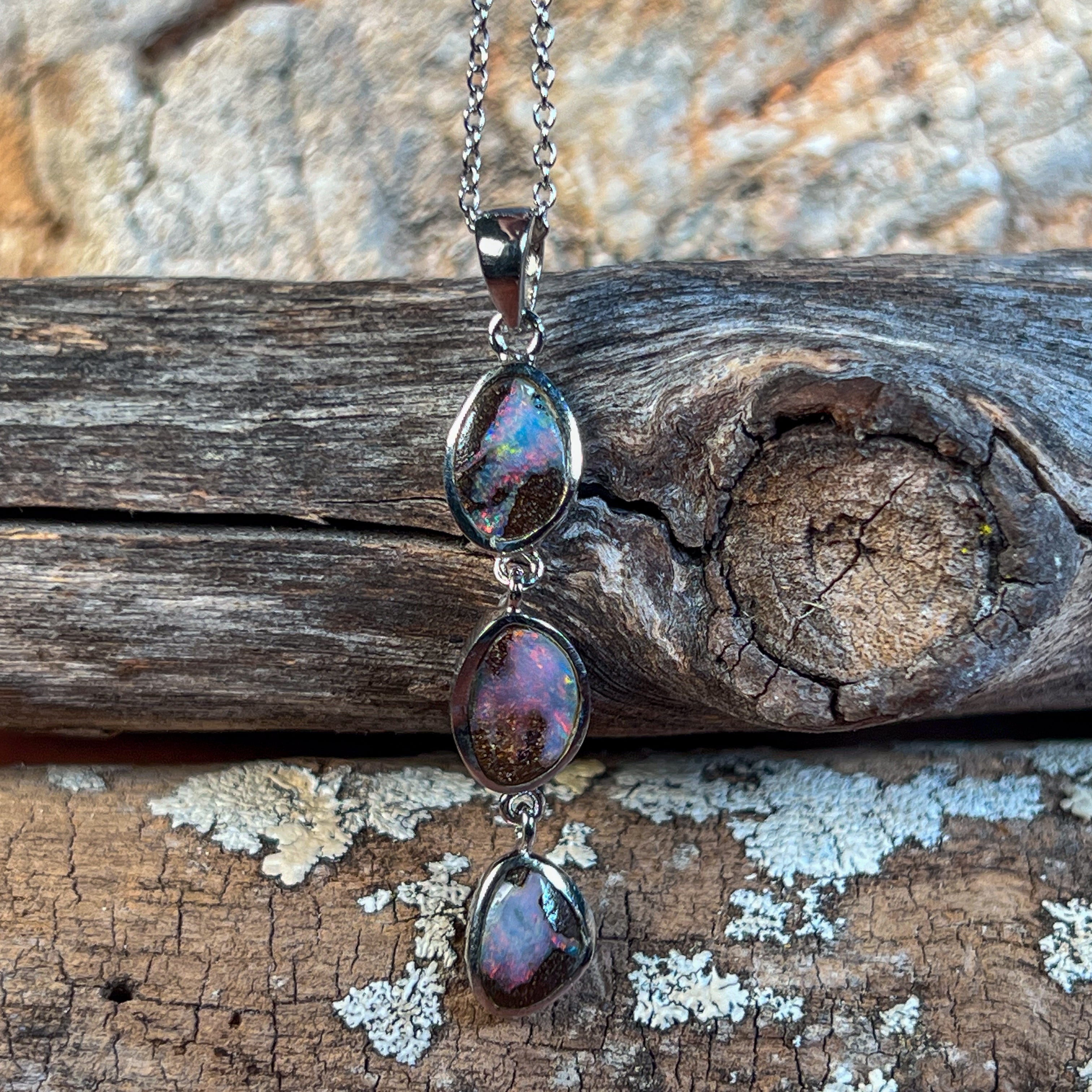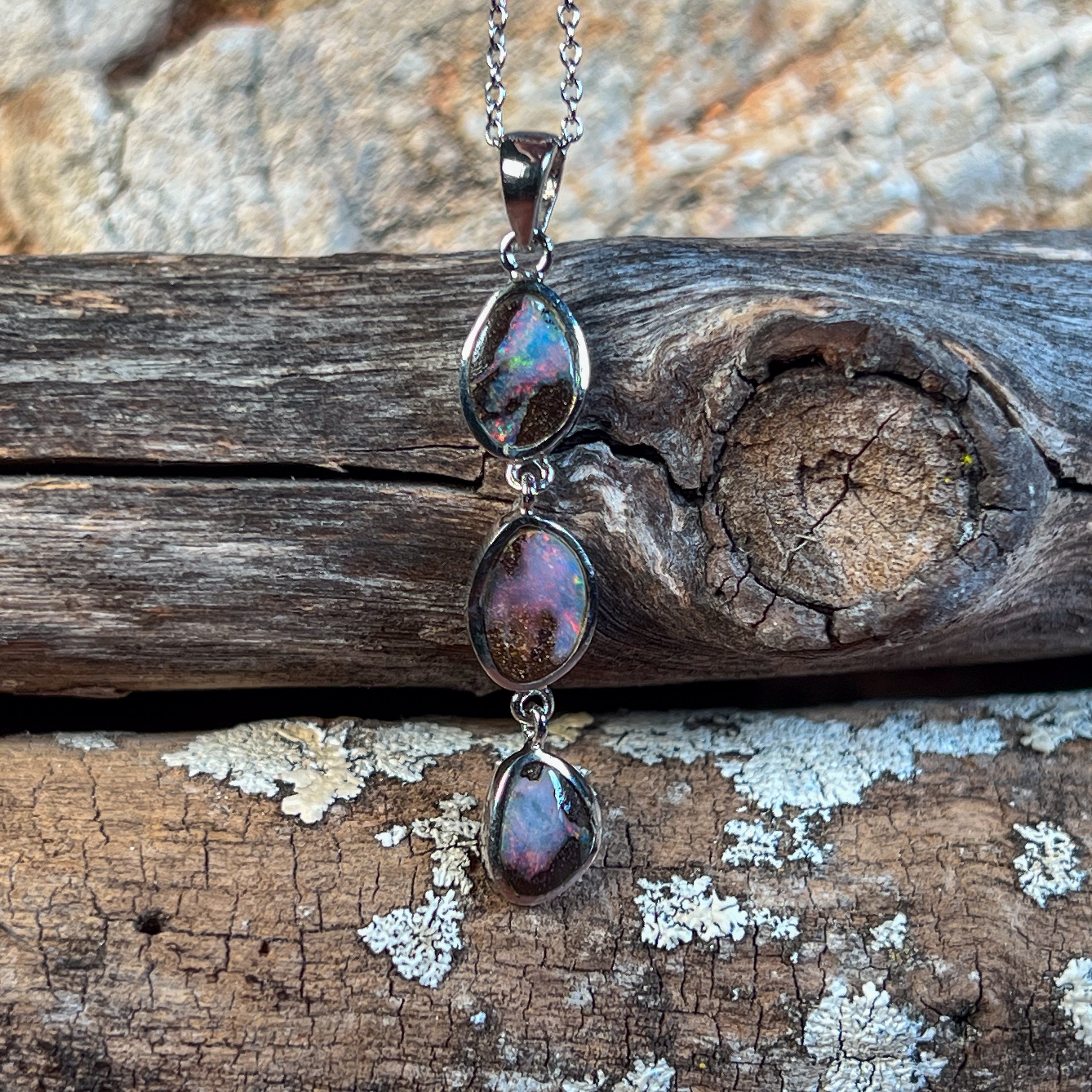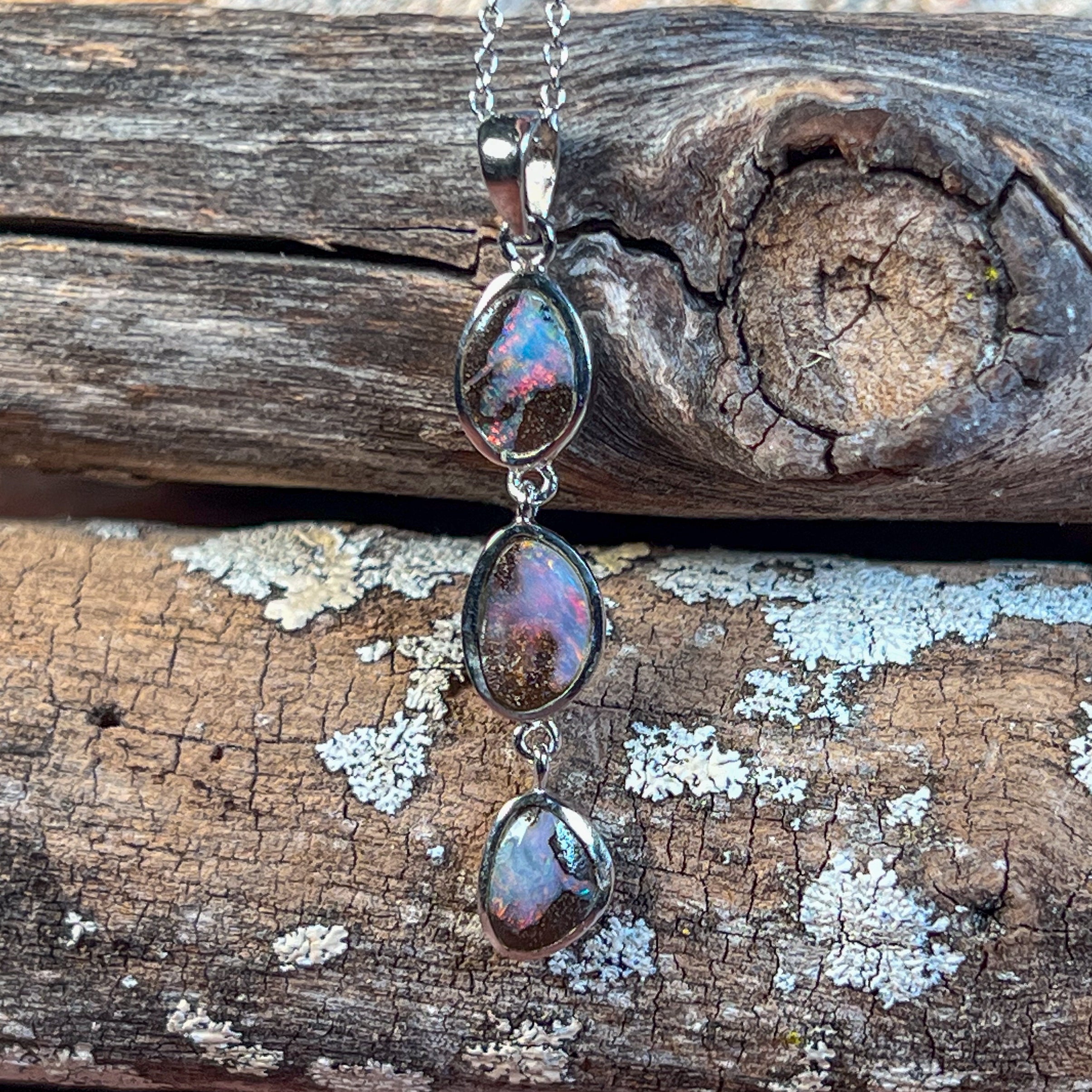 Sterling Silver Boulder Opal 3 stone drop style pendant