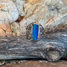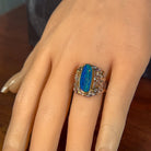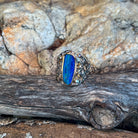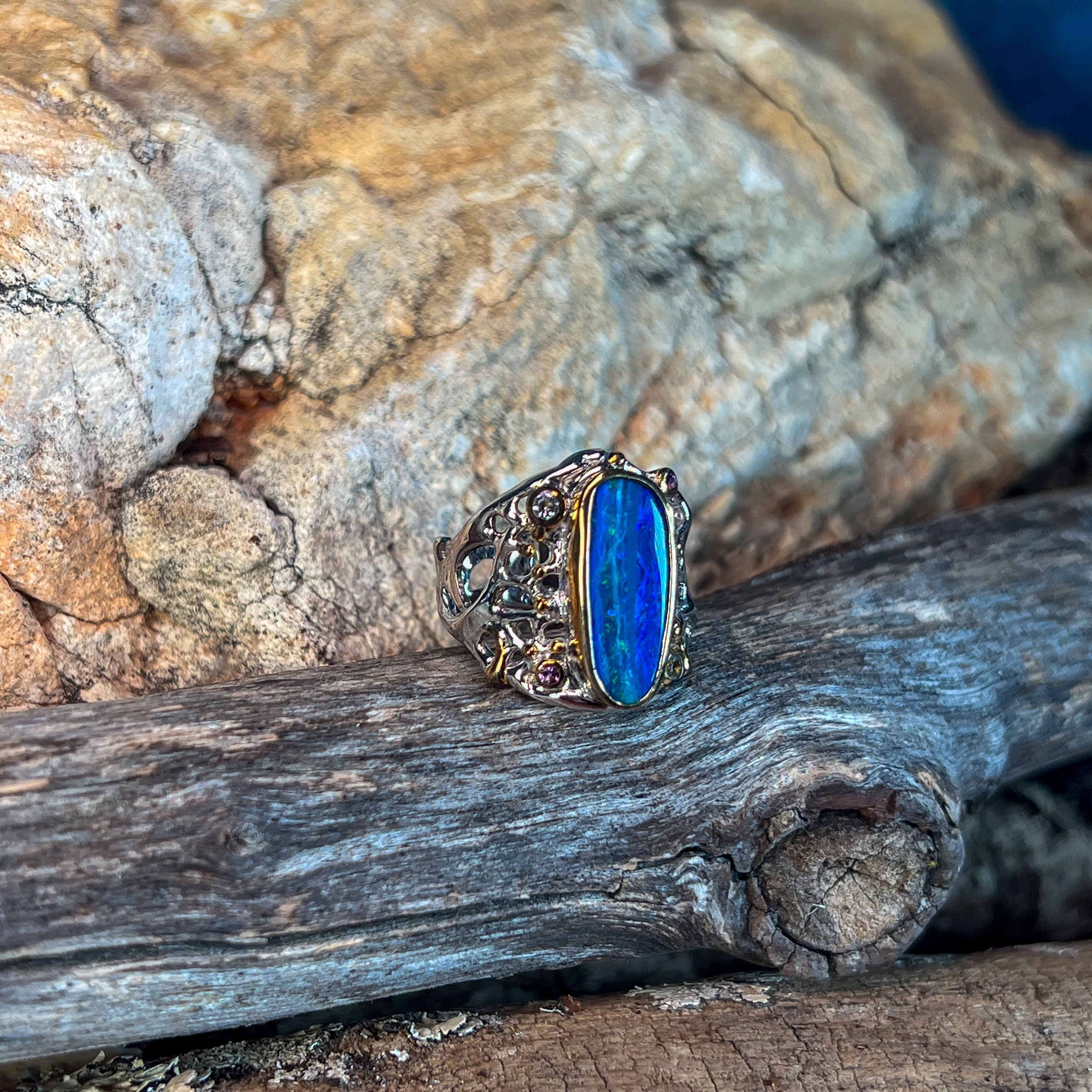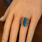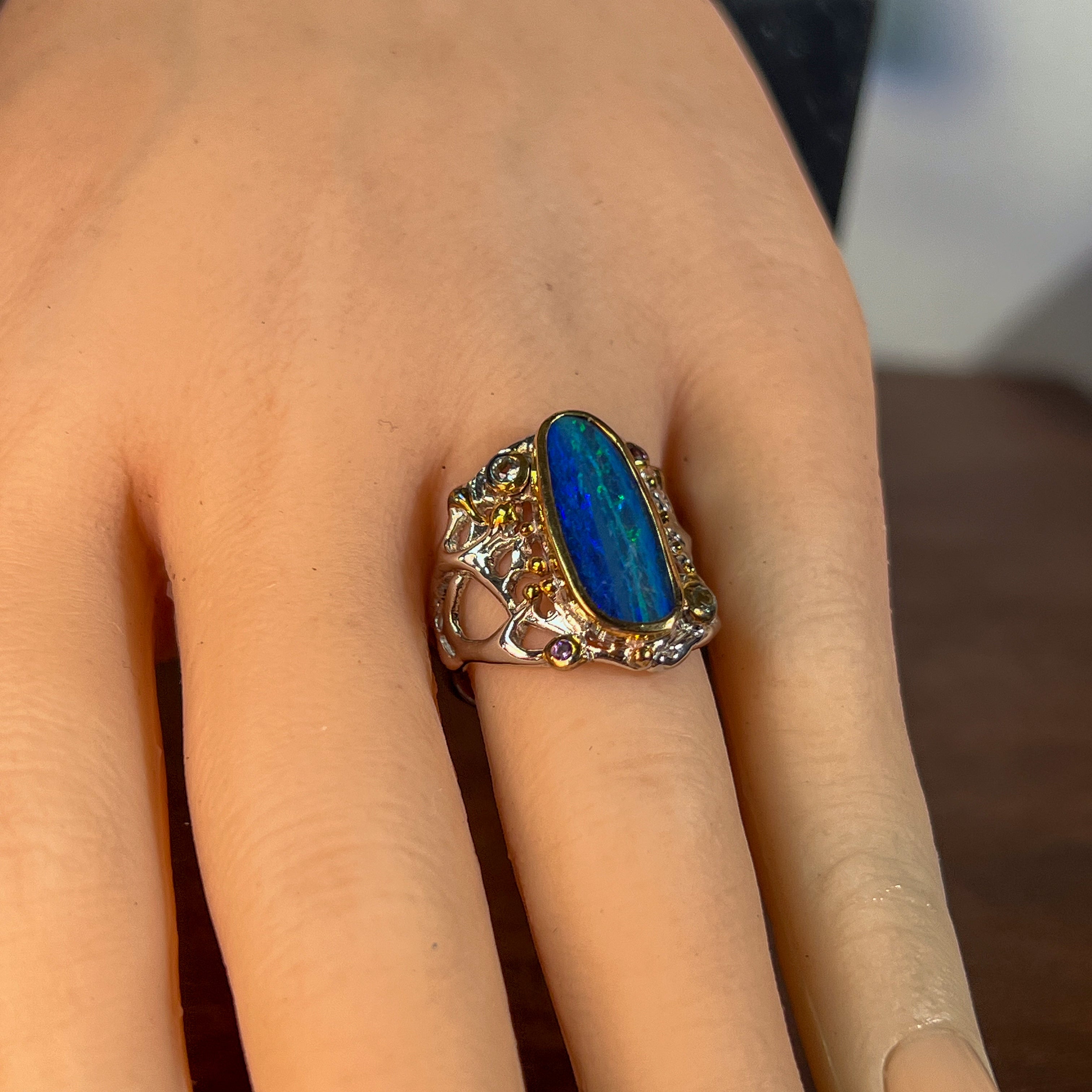 Sterling Silver broad Opal doublet Blue Green reef design ring