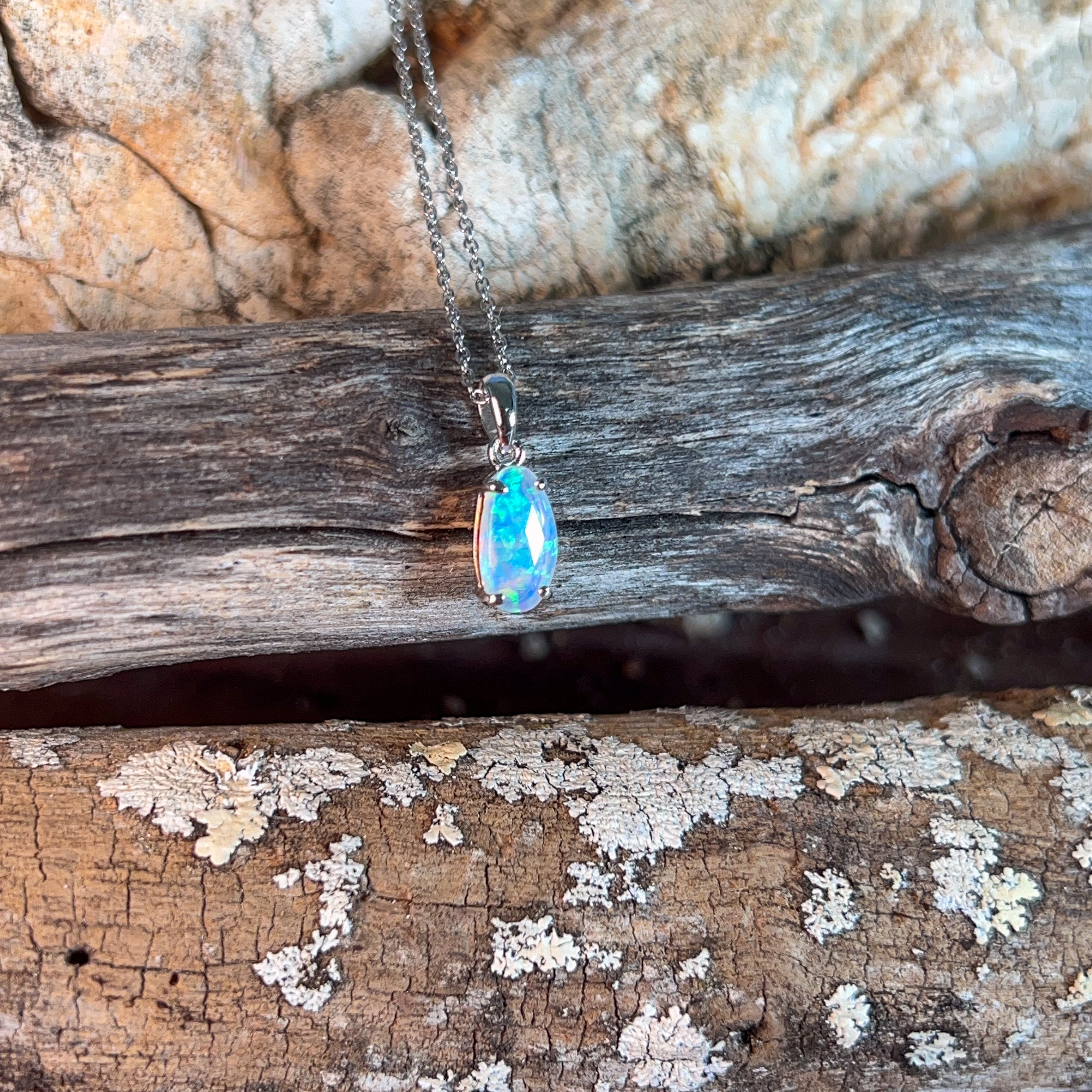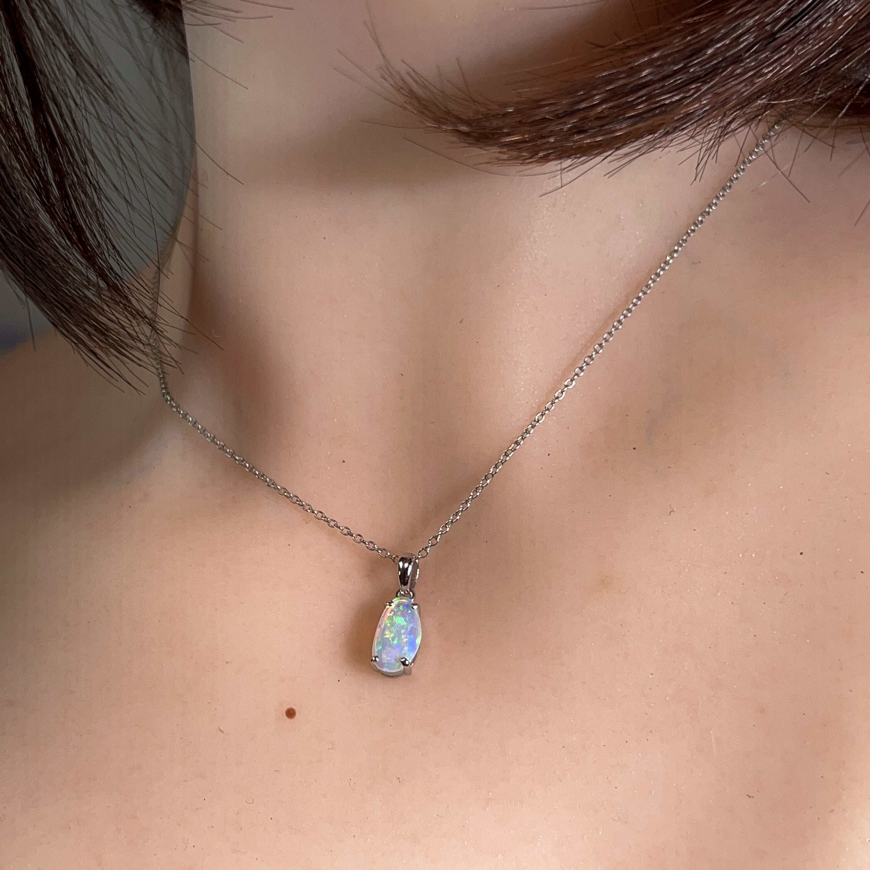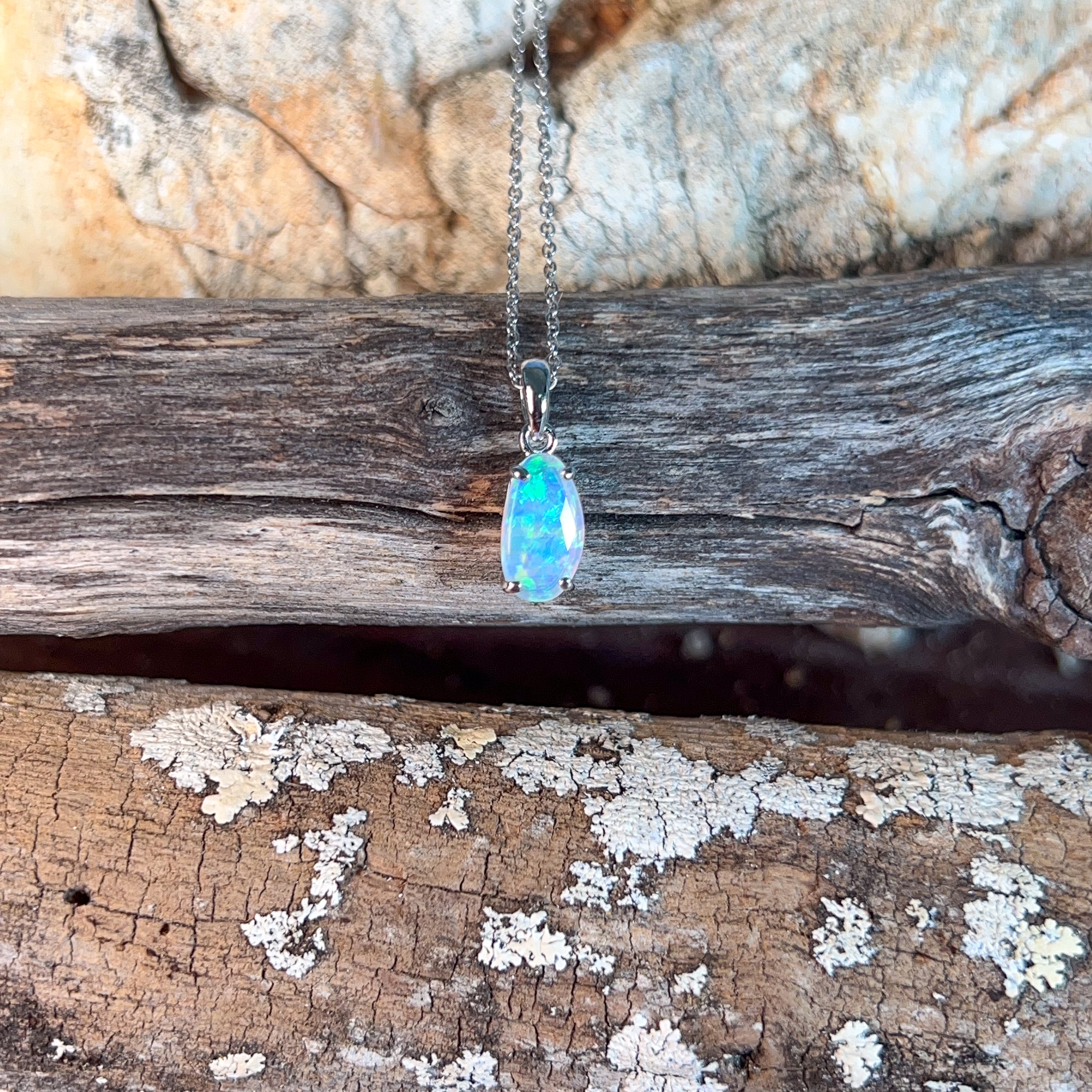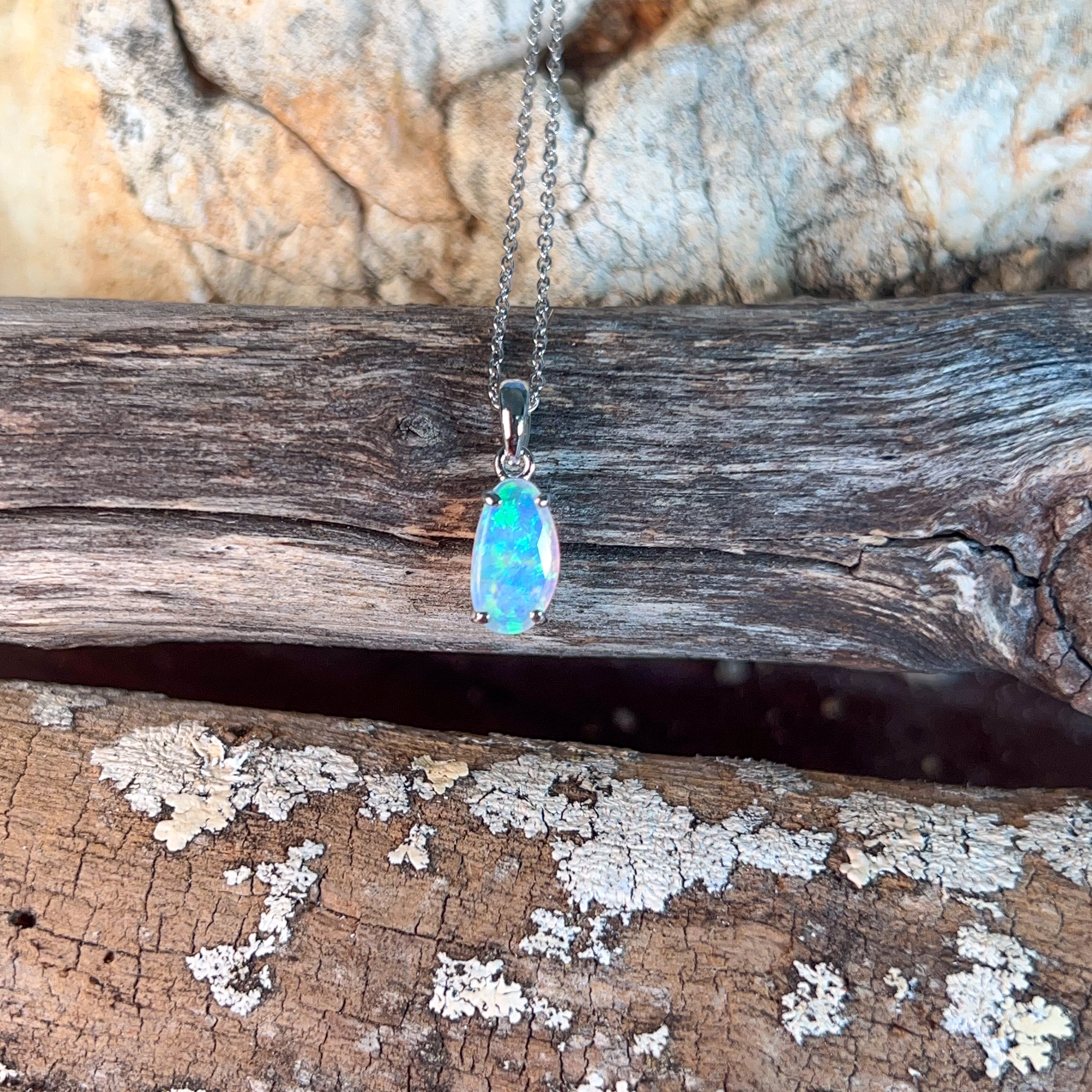 Discover understated elegance with this sterling silver crystal opal pendant, featuring a luminous 0.8ct stone that captures light with mesmerising play-of-colour. The delicate design makes it perfect for everyday wear or layering, while the genuine crystal opal ensures each piece is uniquely beautiful. Crafted in quality sterling silver, this dainty pendant offers timeless sophistication that complements any style. A versatile treasure that brings natural beauty and refined charm to your jewellery collection.