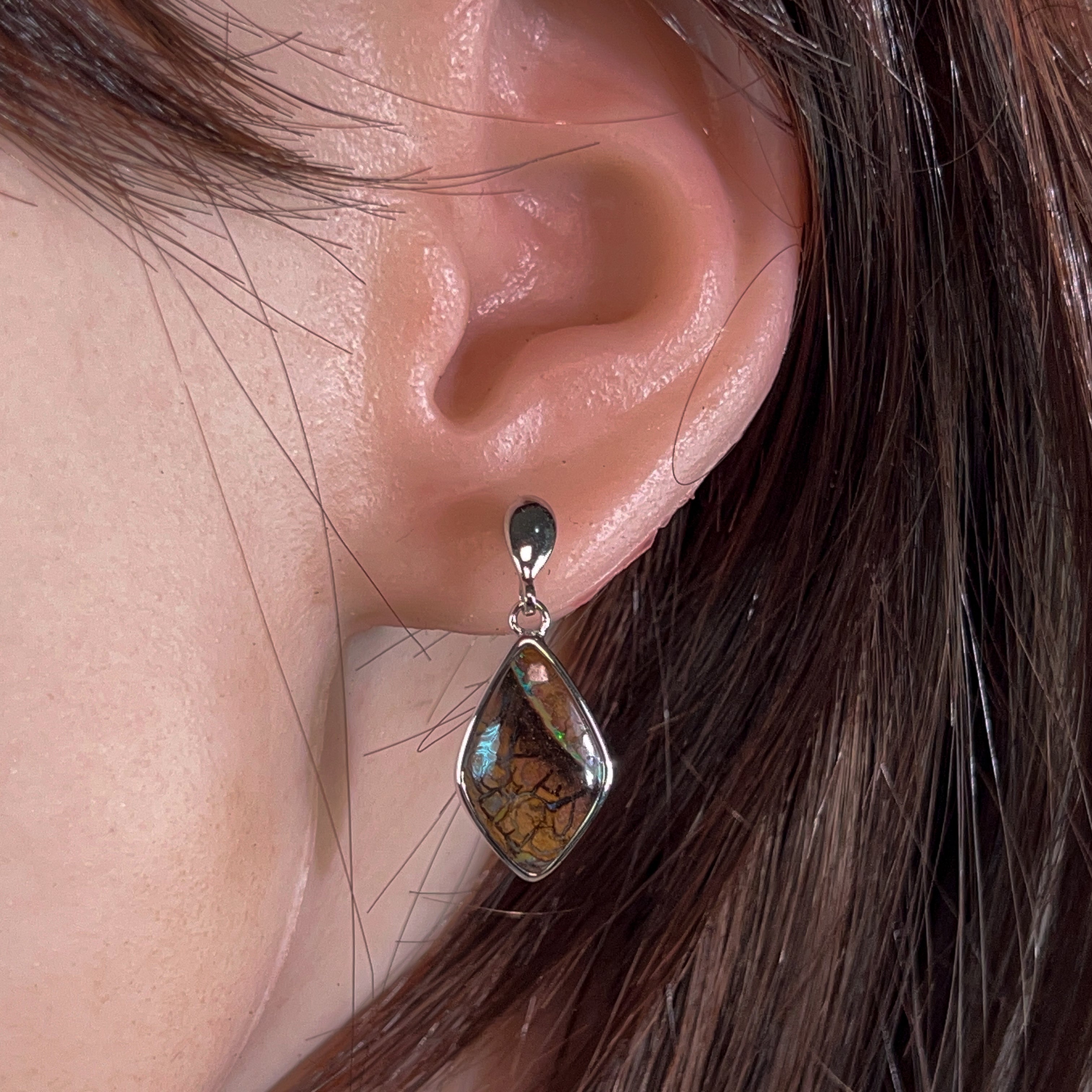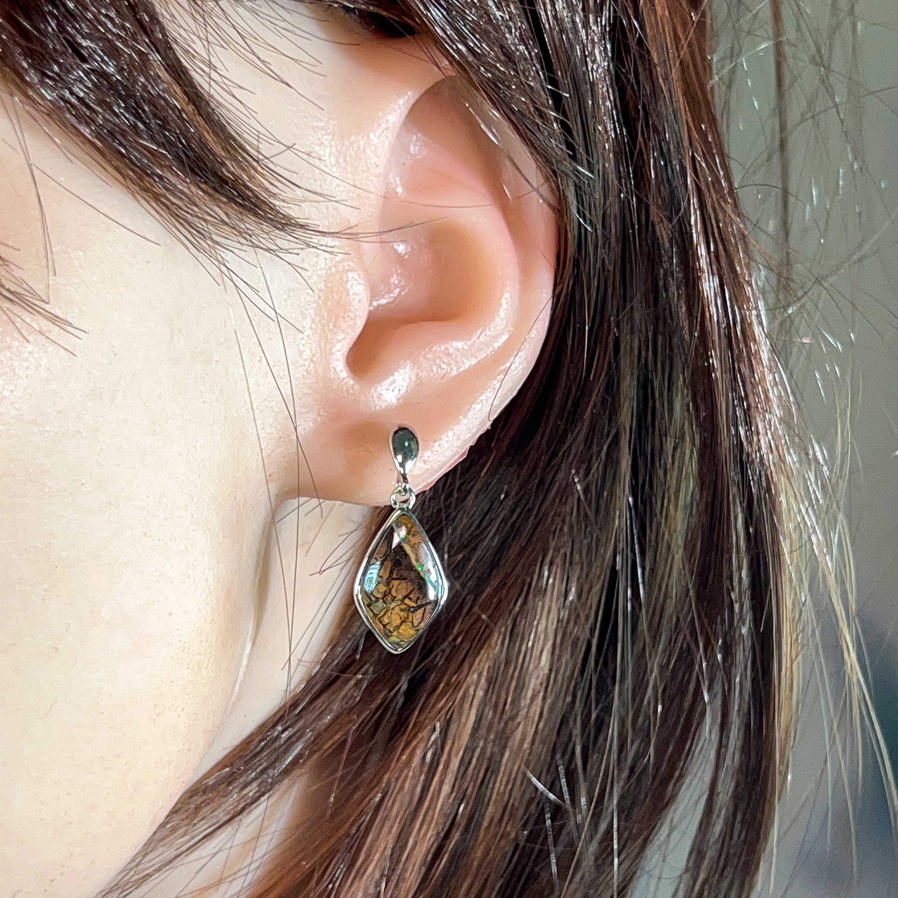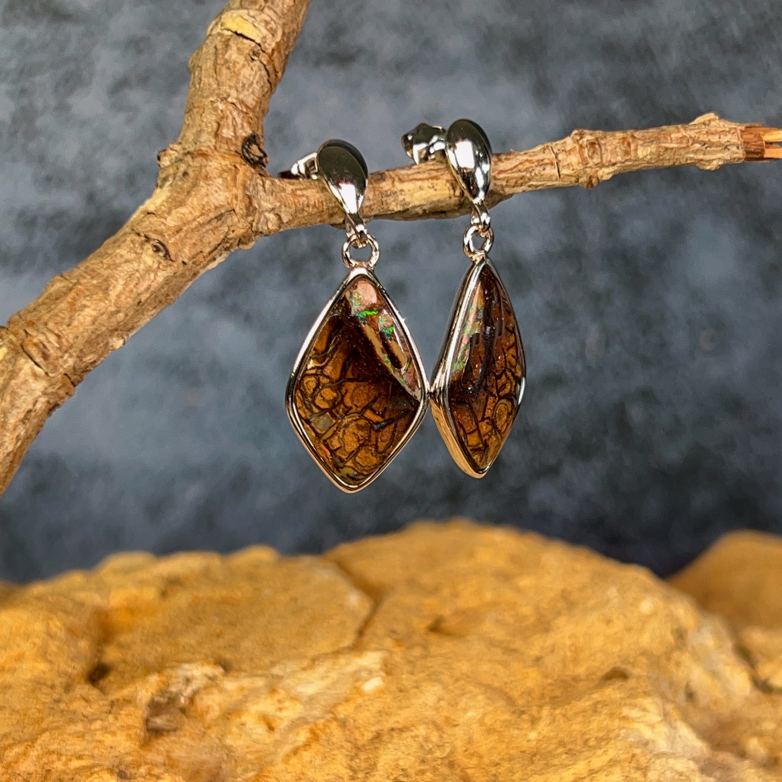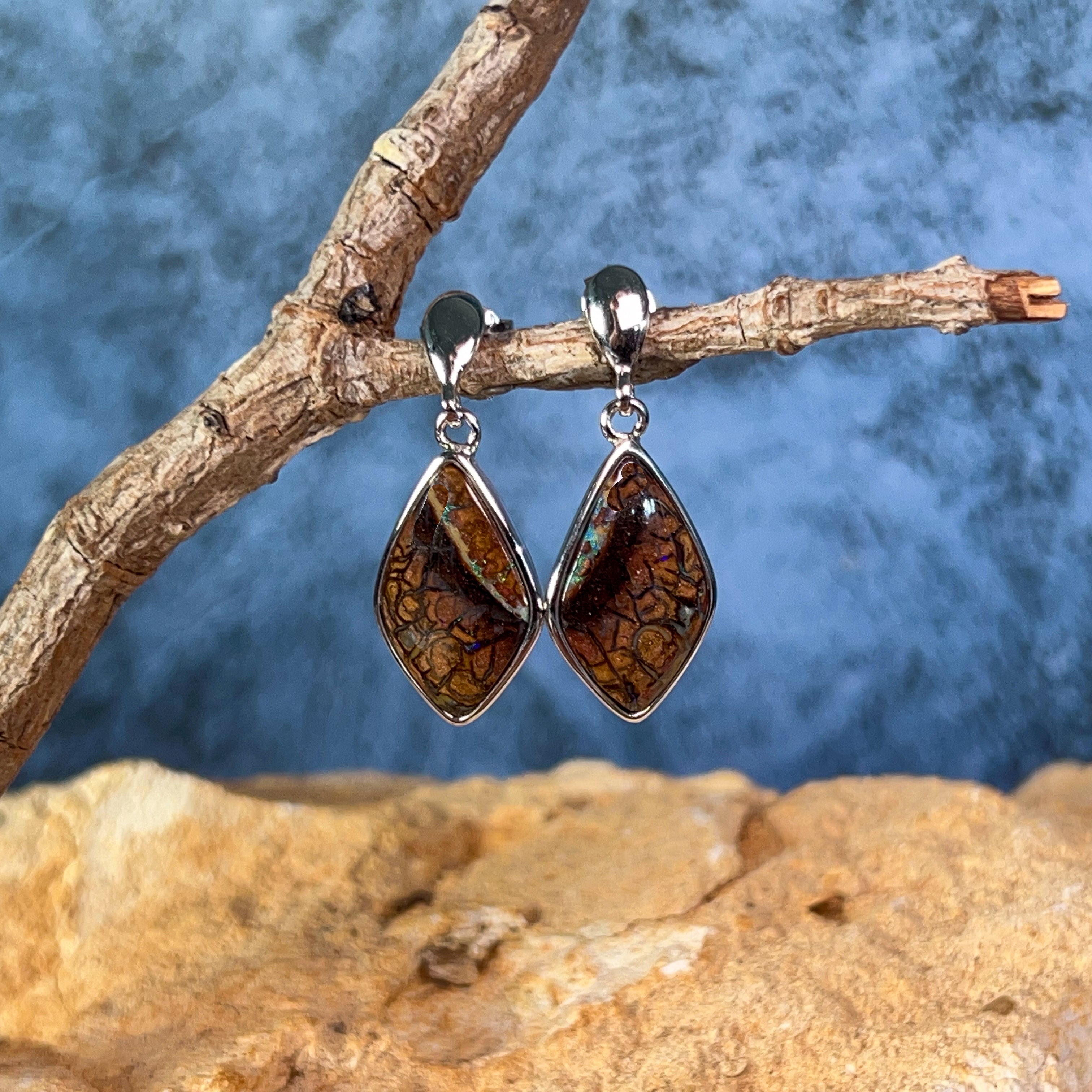 Discover the natural beauty of Australian Boulder Matrix Opal in these captivating sterling silver earrings. Each piece showcases the distinctive patterns and rich earth tones unique to matrix opals, creating an effortlessly elegant look that complements any style. The gentle dangle design adds movement and grace, while premium sterling silver ensures lasting durability and a brilliant shine. Perfect for those who appreciate genuine gemstones and timeless sophistication, these earrings bring organic charm and understated luxury to your everyday collection.