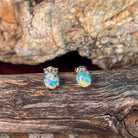 One pair of Sterling Silver Crystal Opal claw stud earrings