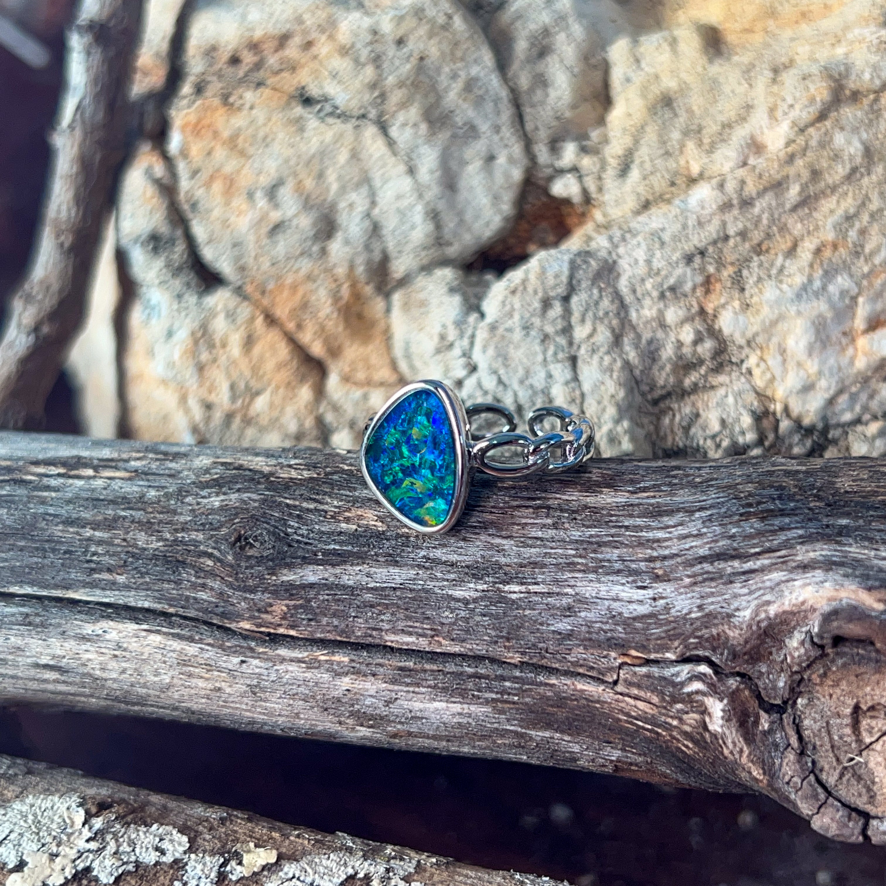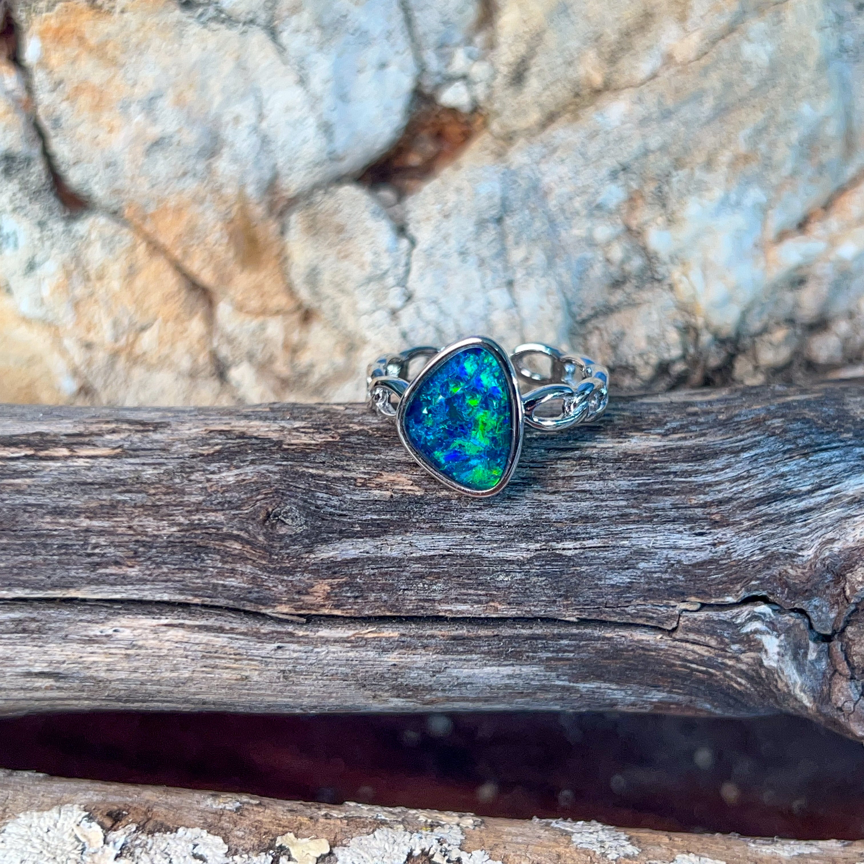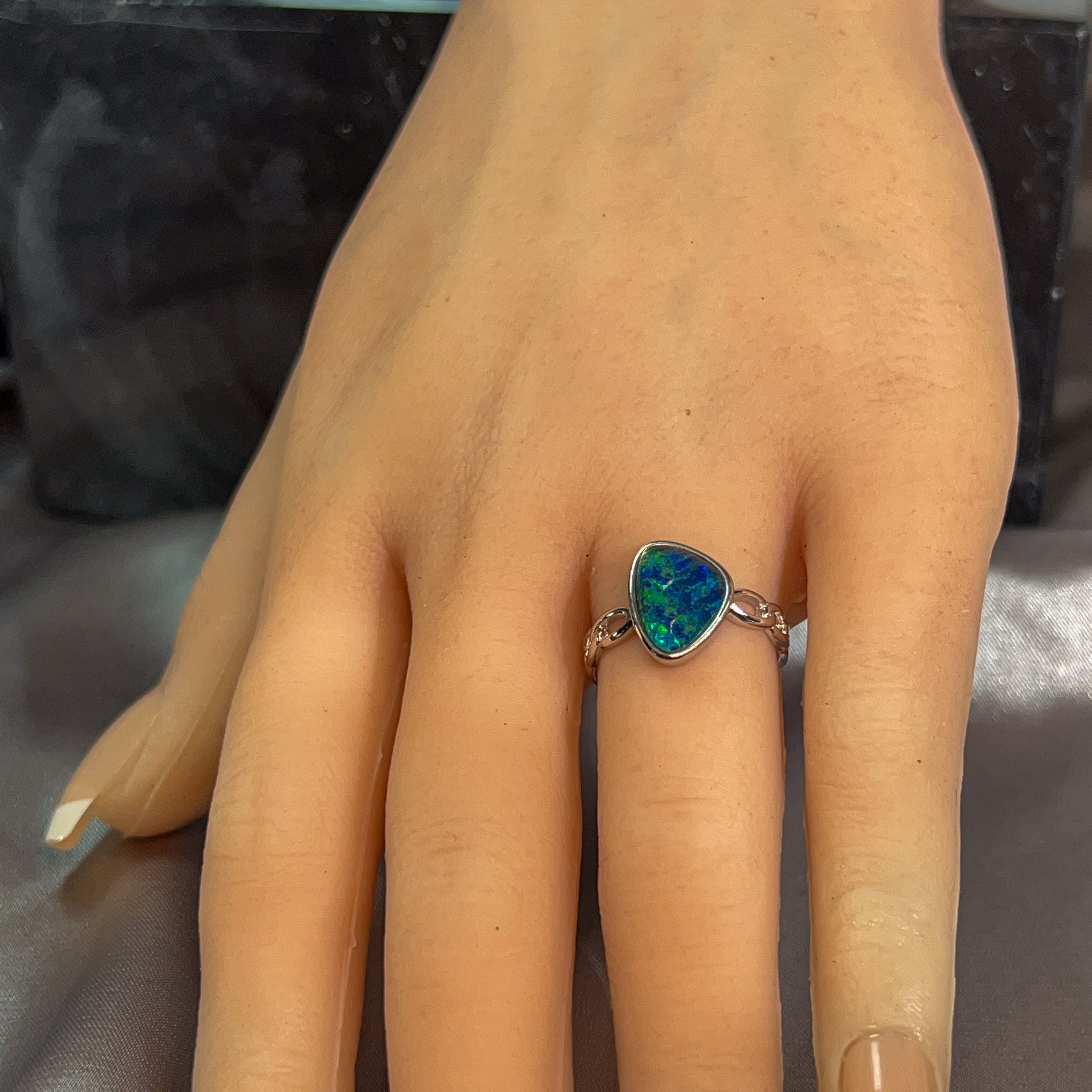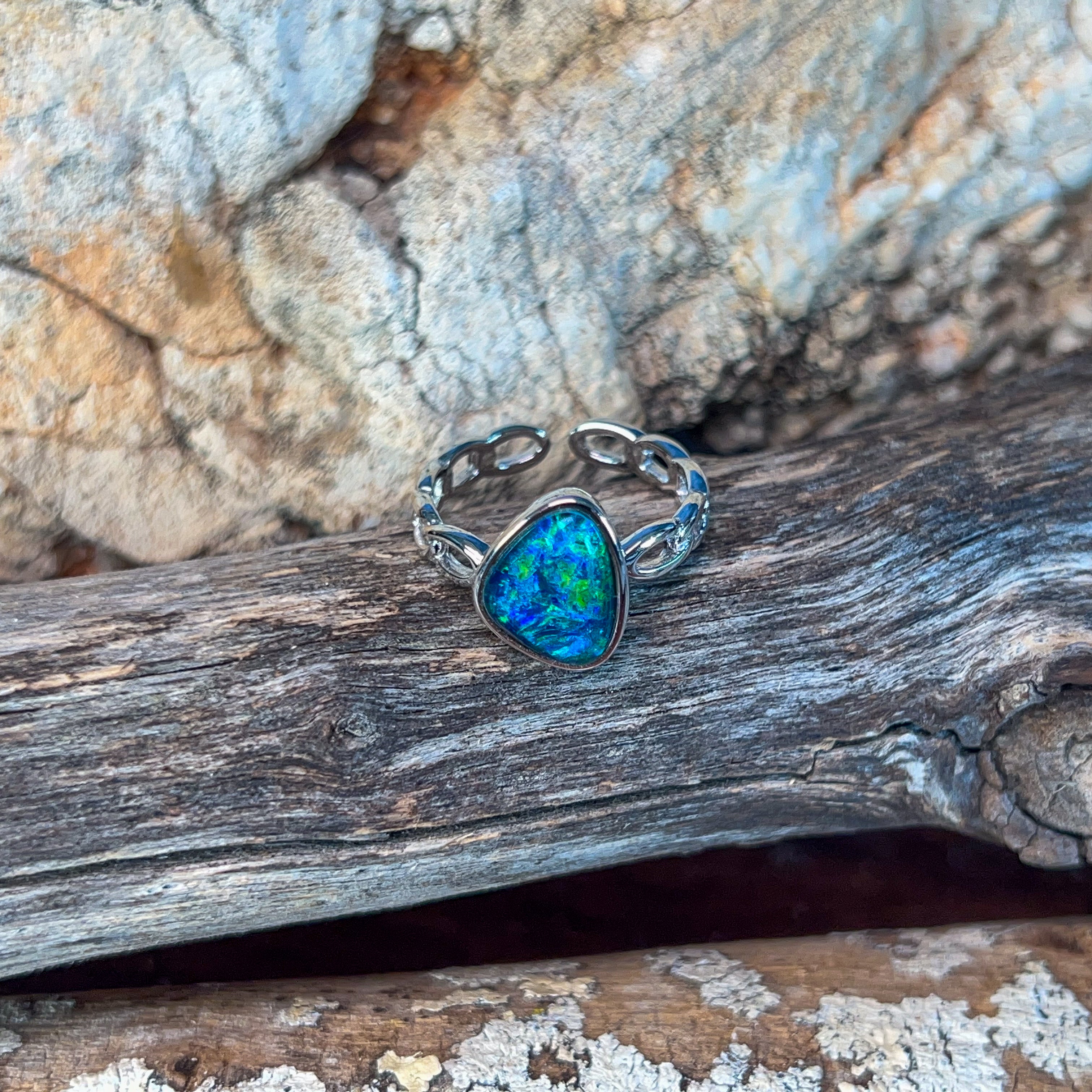Dive into the mesmerizing depths of our Sterling Silver Triplet 13x9mm Opal Ring, where ocean reef blues dance across genuine opal. This stunning piece captures the serene beauty of tropical waters, with each stone displaying nature's own palette of aquamarine and teal hues. Crafted in lustrous sterling silver, the triplet construction ensures durability while maximizing the opal's radiant colour play. Perfect for those who crave a touch of oceanic elegance, this ring transforms any moment into something extraordinary. Let the calming energy of the reef inspire your everyday style.