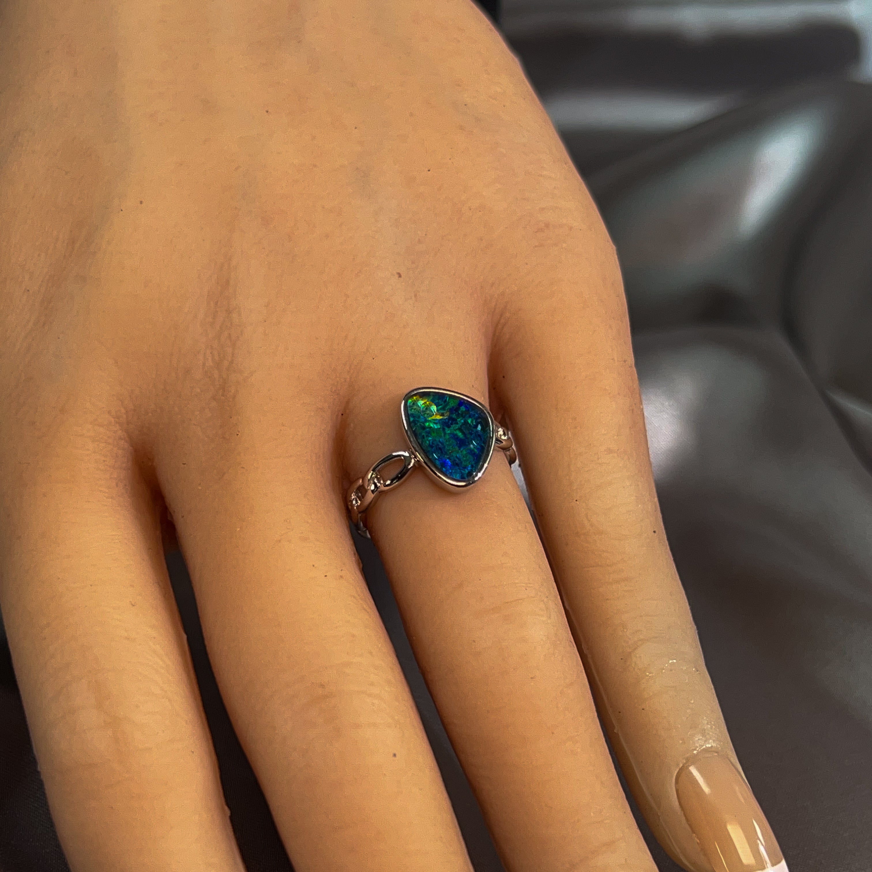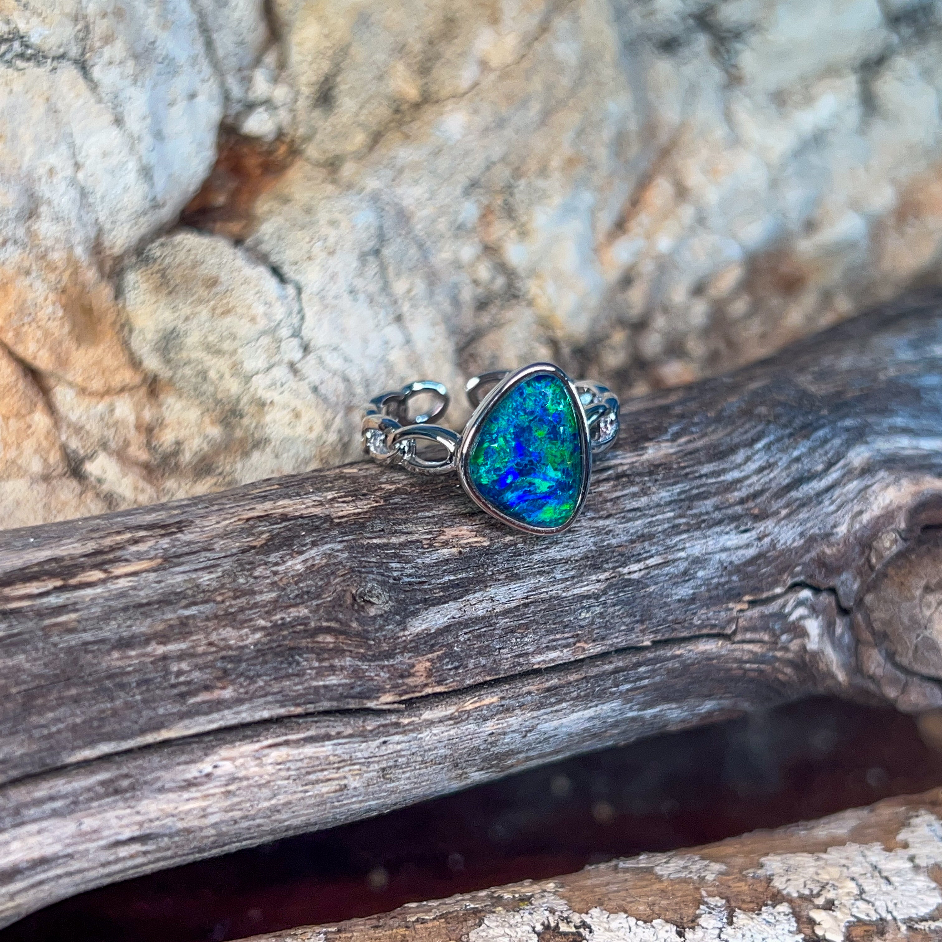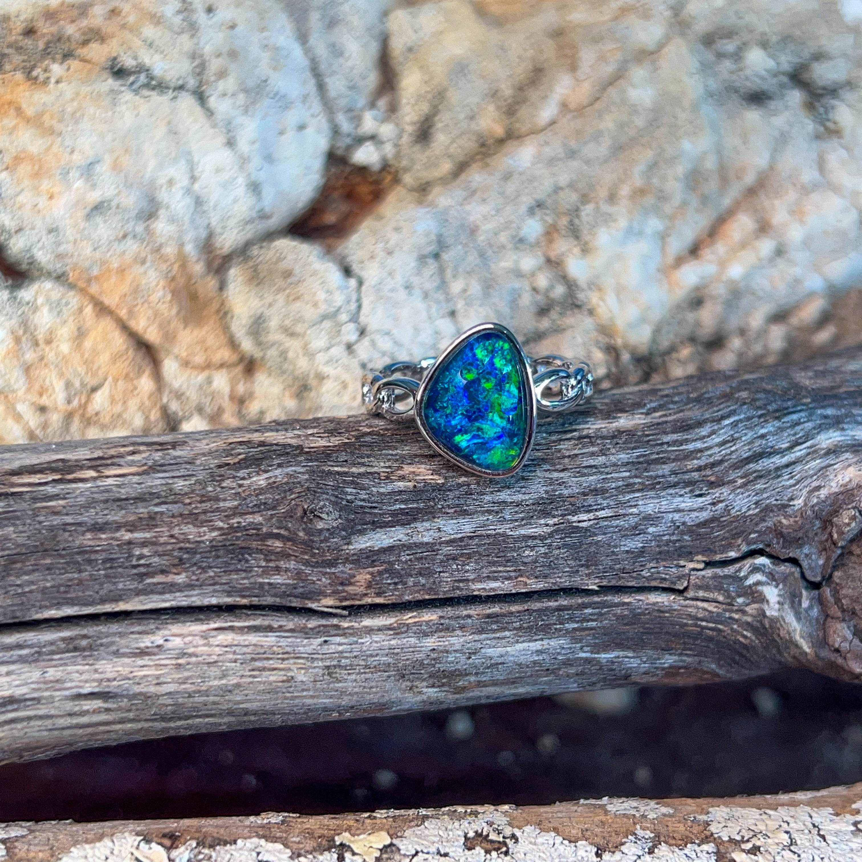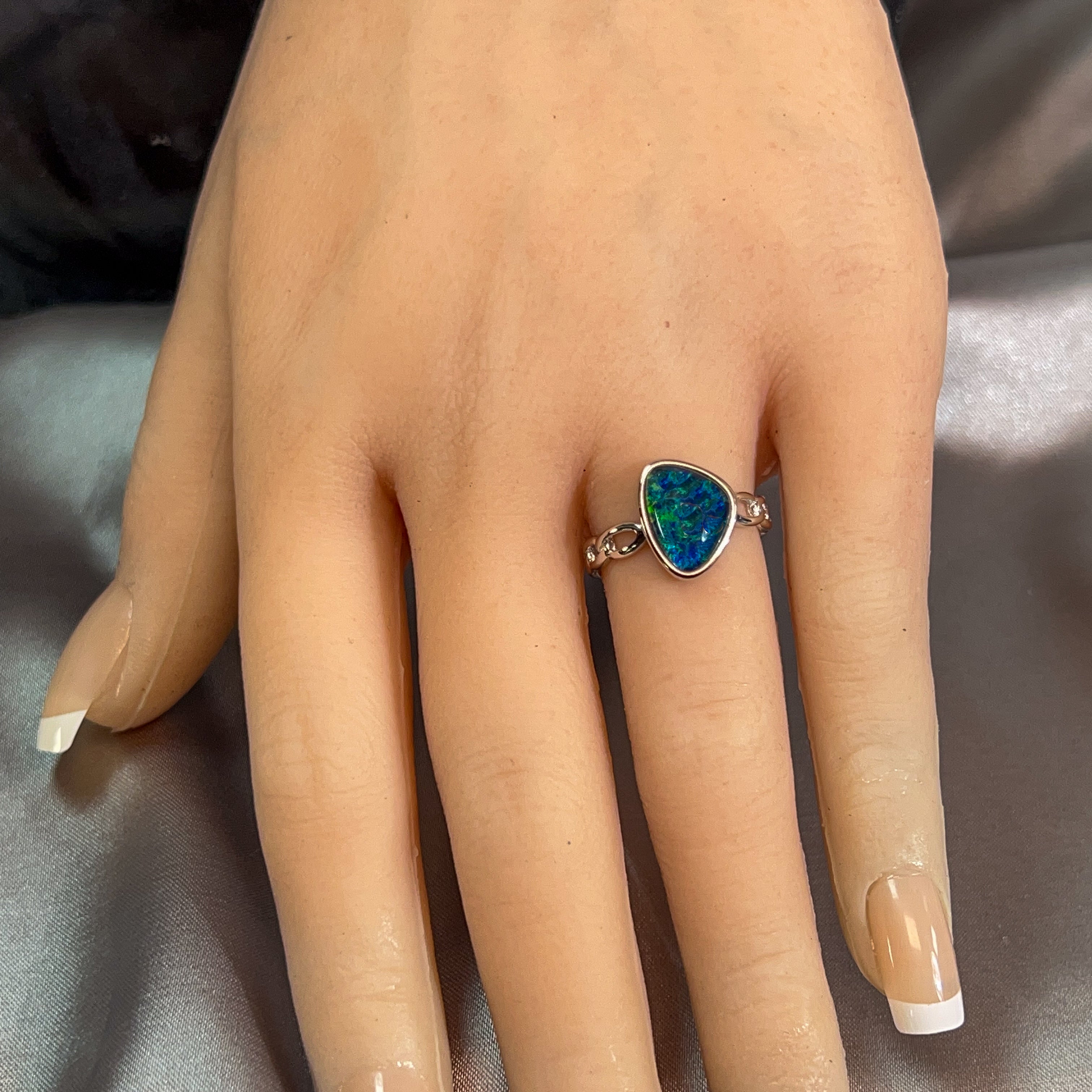 Dive into the mesmerizing depths of our Sterling Silver Triplet 13x9mm Opal Ring, where ocean reef blues dance across genuine opal. This stunning piece captures the serene beauty of tropical waters, with each stone displaying nature's own palette of aquamarine and teal hues. Crafted in lustrous sterling silver, the triplet construction ensures durability while maximizing the opal's radiant colour play. Perfect for those who crave a touch of oceanic elegance, this ring transforms any moment into something extraordinary. Let the calming energy of the reef inspire your everyday style.
