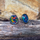 ONE PAIR OS STERLING SILVER EARRING STUDS 12X10MM AUSTRALIAN OPAL TRIPLET BEZEL SET